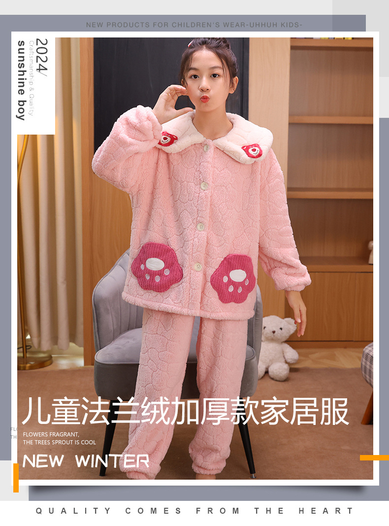 어린이 가을과 겨울 플란넬 파자마 소녀 중 큰 어린이 초등학교 중학교 학생 산호 양털 두꺼운 홈 옷