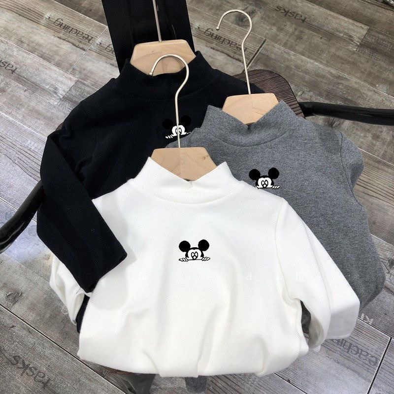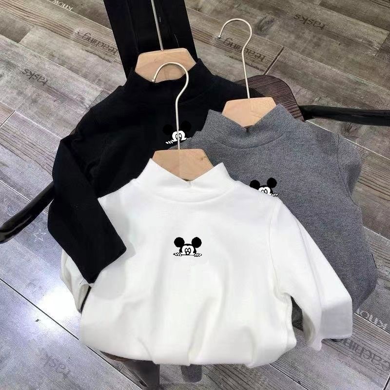 어린이 벨벳베이스 셔츠 가을과 겨울 어린이 반 높이 칼라 따뜻한 내면의 아기의 최고 소년 소녀상 긴 소매 티셔츠스토어 가기
