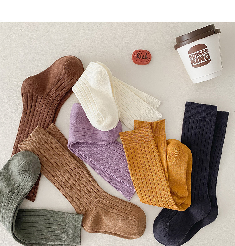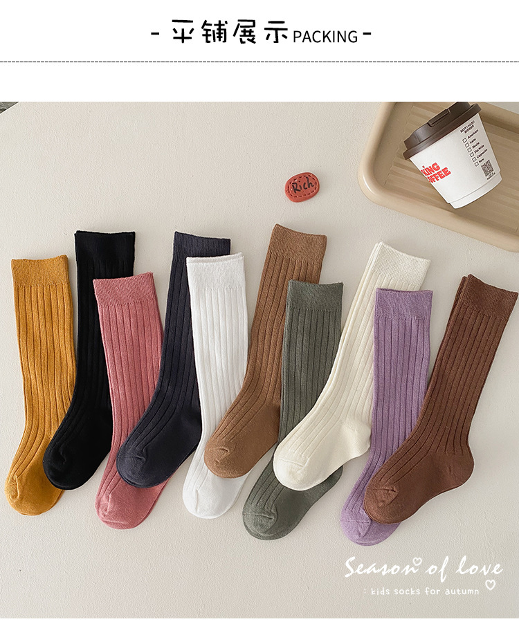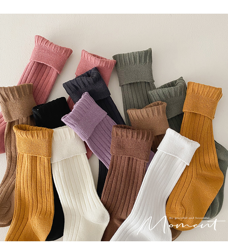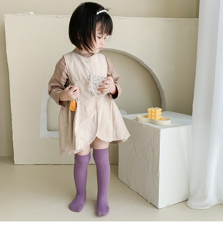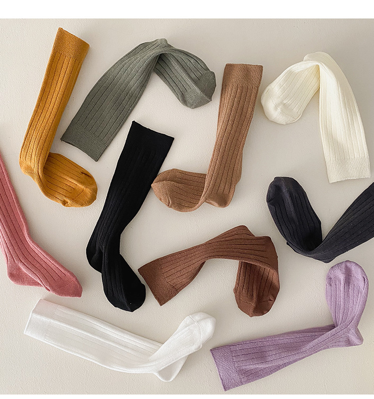 Zhuji Datang 소녀 더블 바늘 튜브 양말 봄과 가을 어린이 더미 양말 단색 아기 스타킹 공장 도매스토어 가기