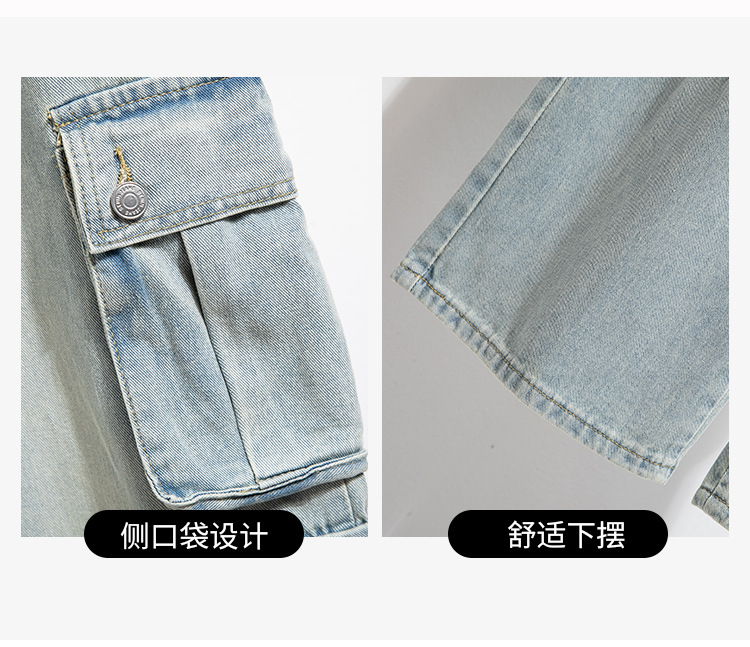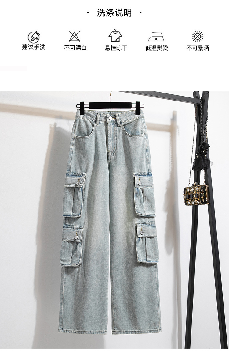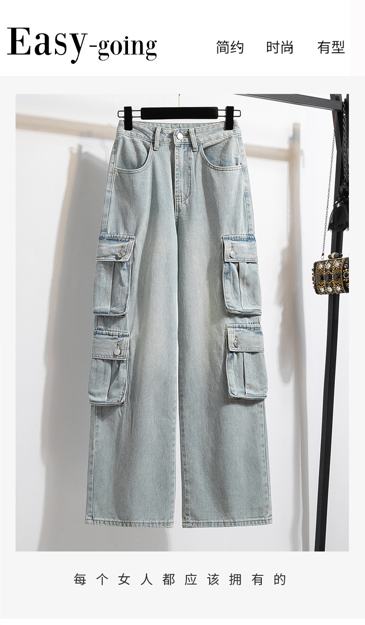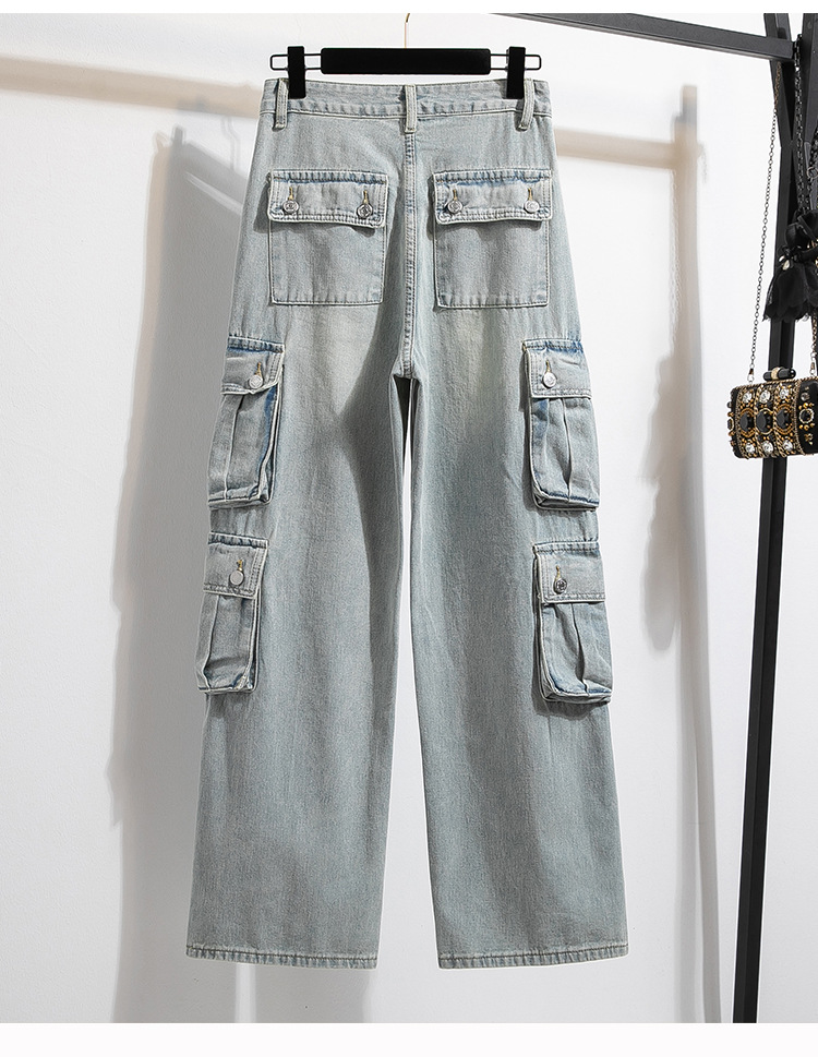 리얼 샷 퓨어 코튼 세탁 청바지 여성용 아메리칸 스타일 레트로 로우 허리 스트레이트 루즈 멀티 포켓 작업 바지 가을 플러스 사이즈스토어 가기