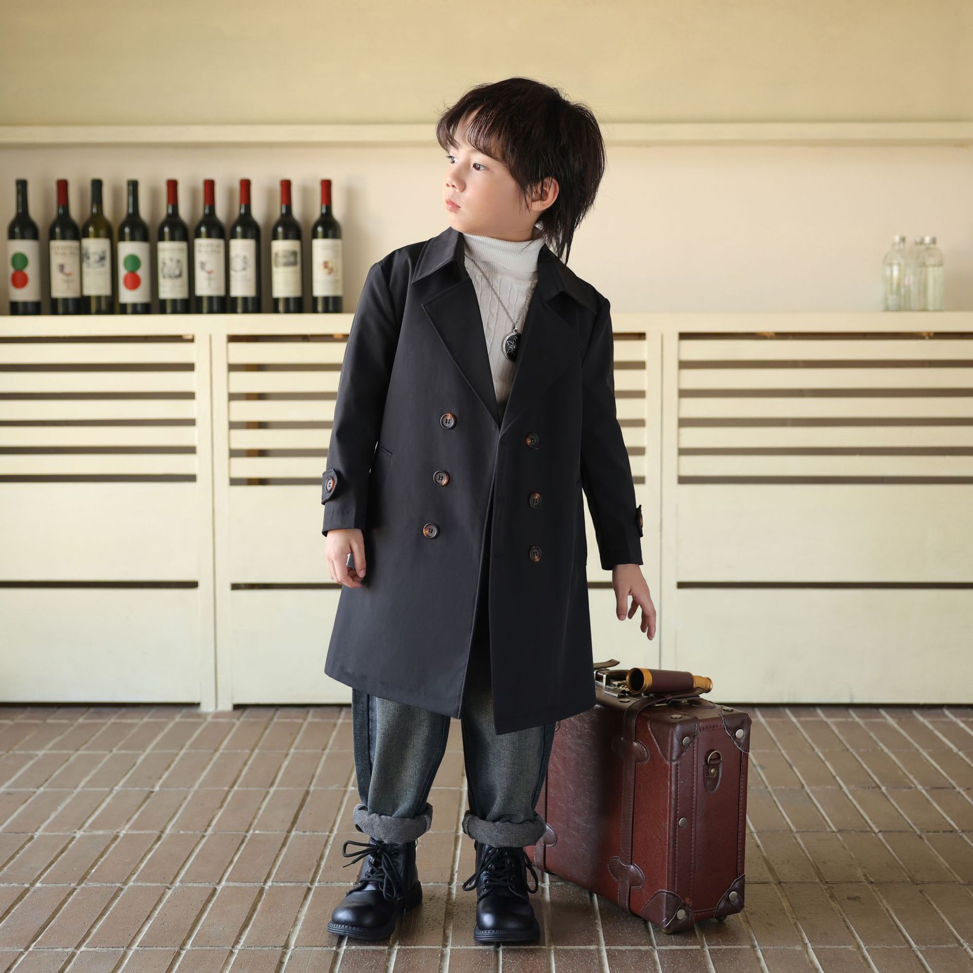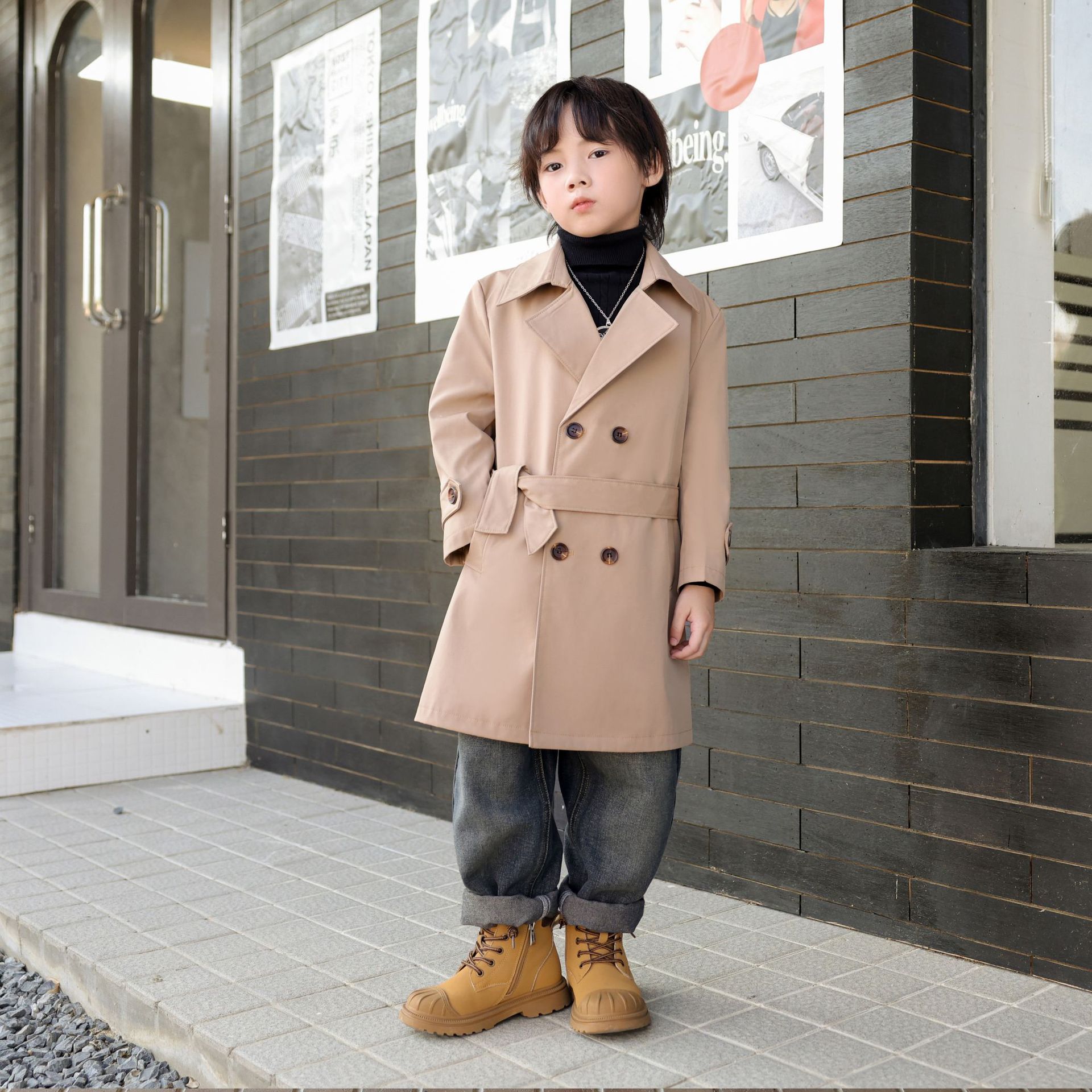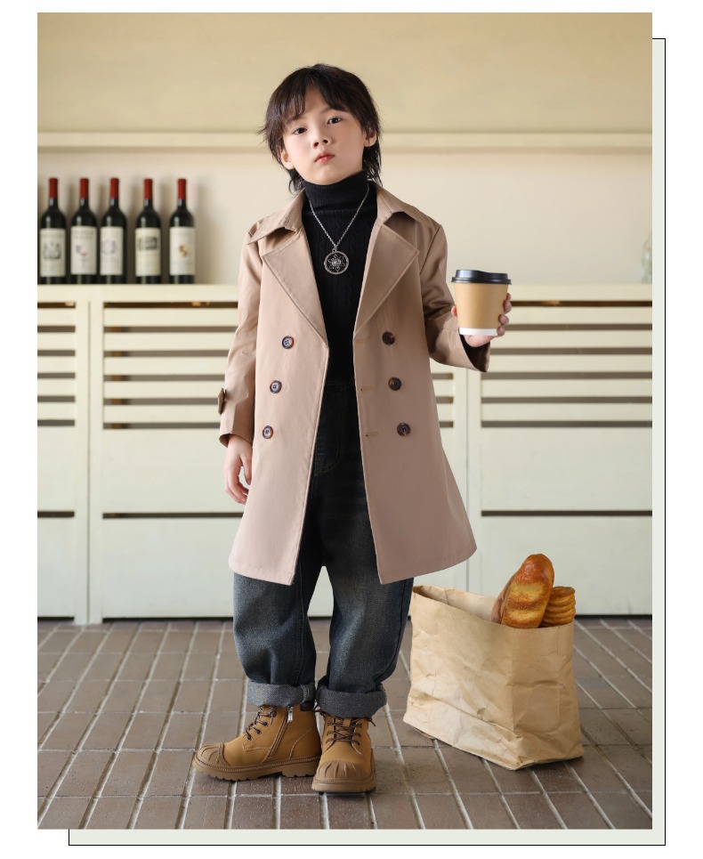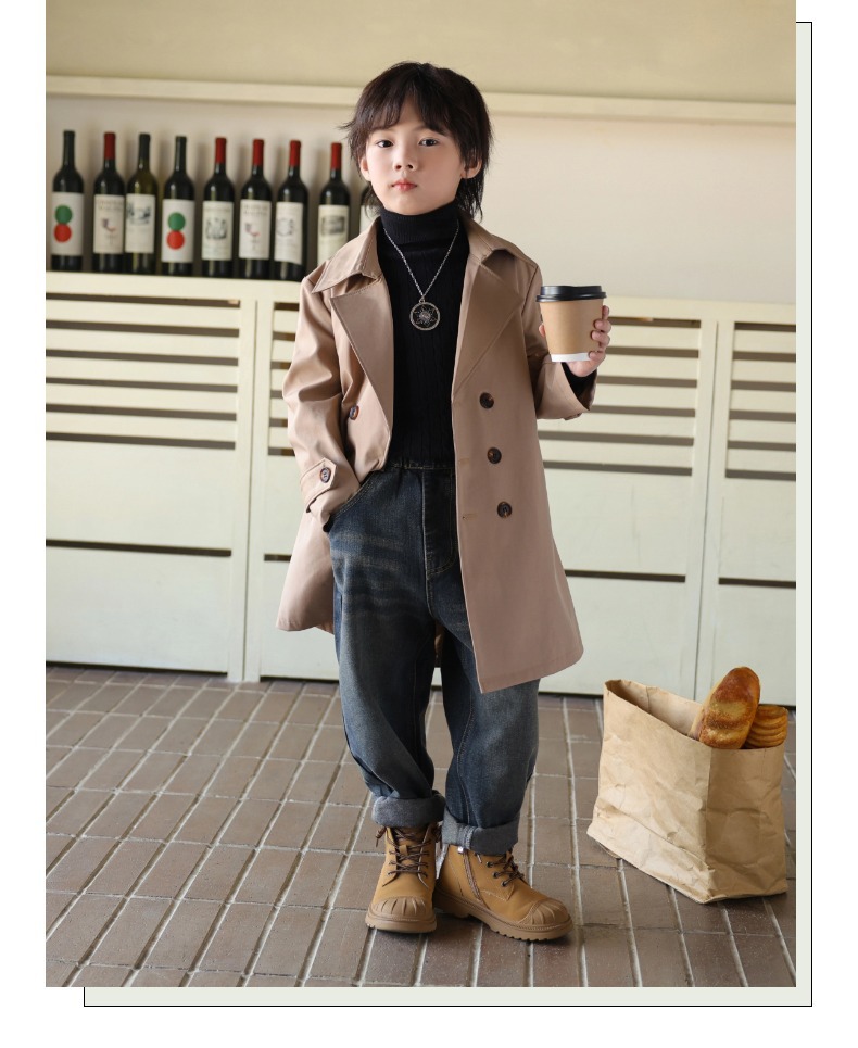 2024 가을과 겨울 아동복 소년 트렌치 코트 어린이 롱 코트 영국 큰 어린이 서양식 베이비 코트 트렌디 쿨스토어 가기