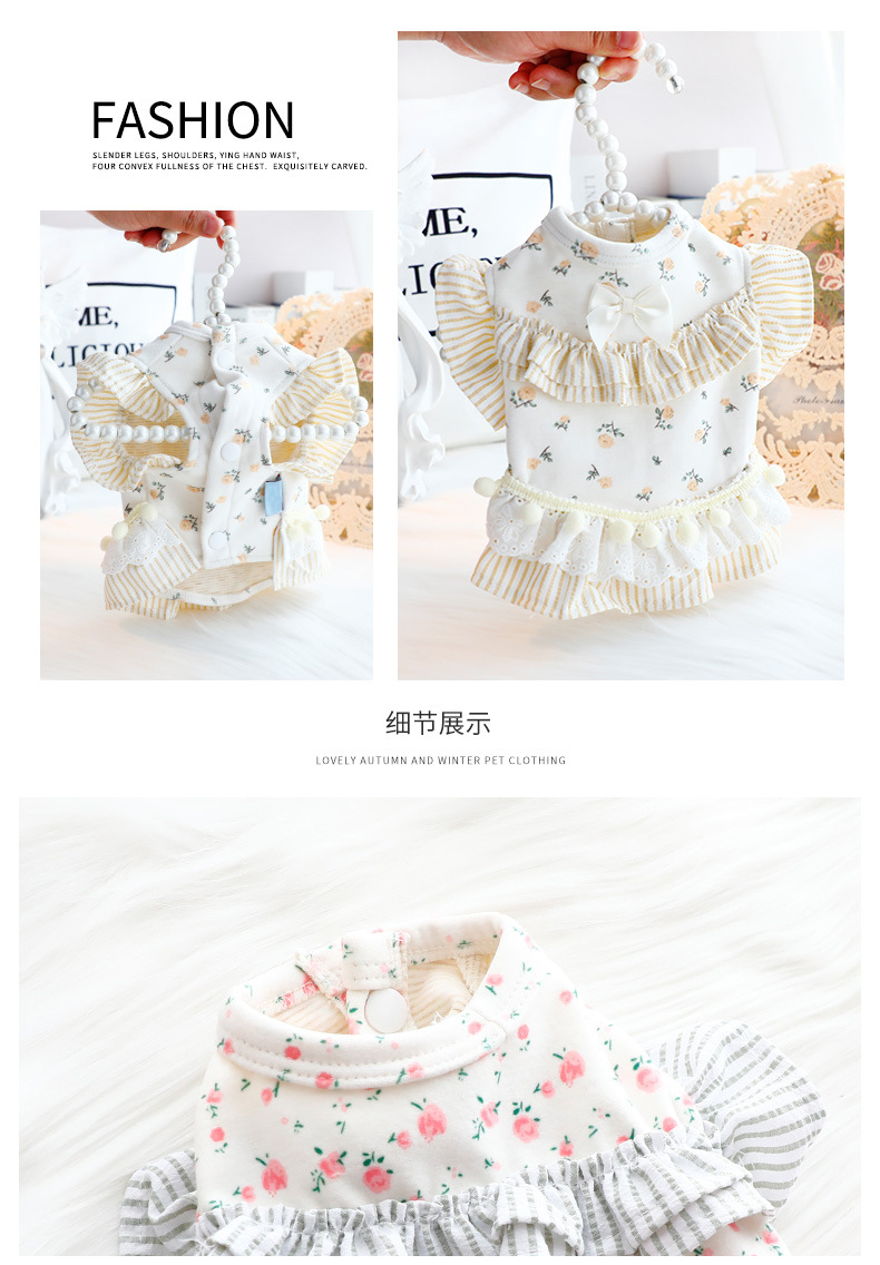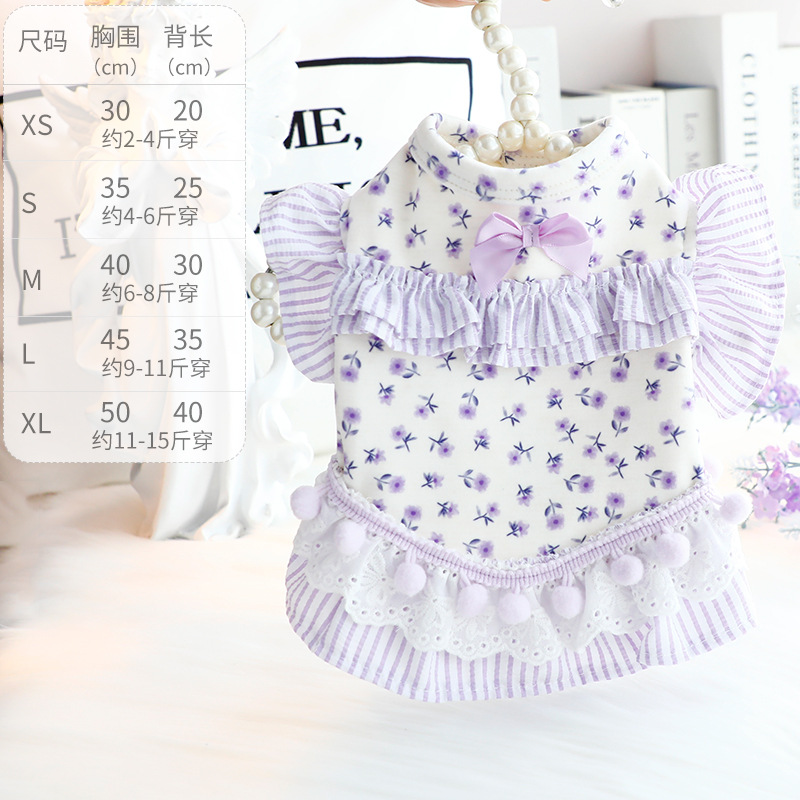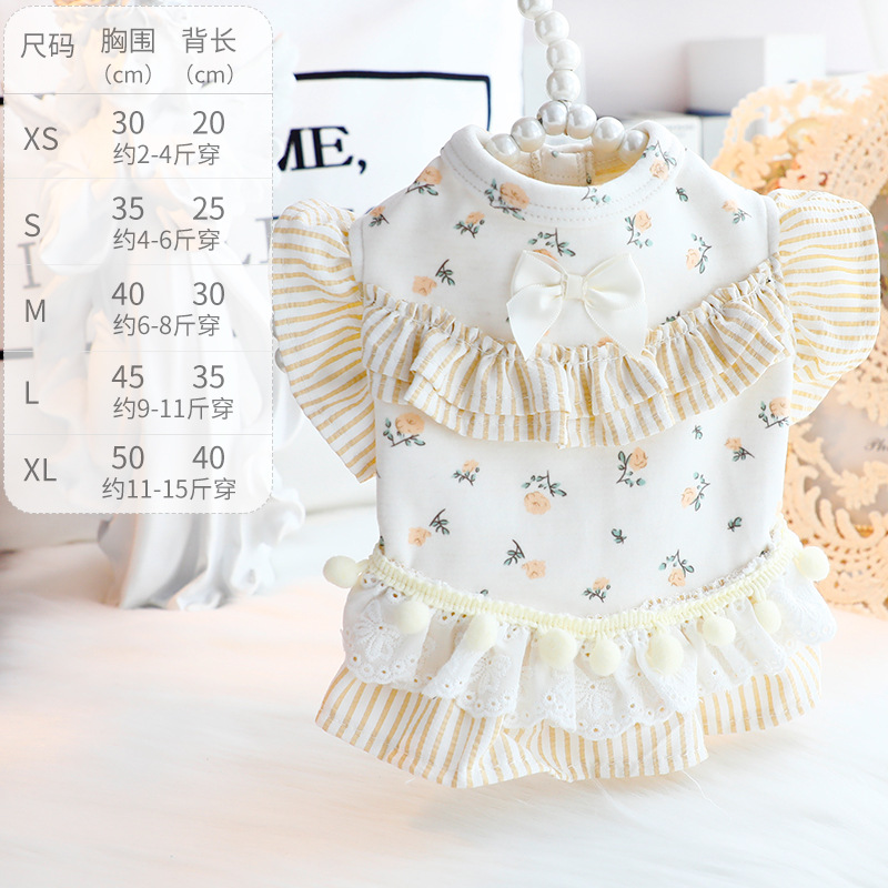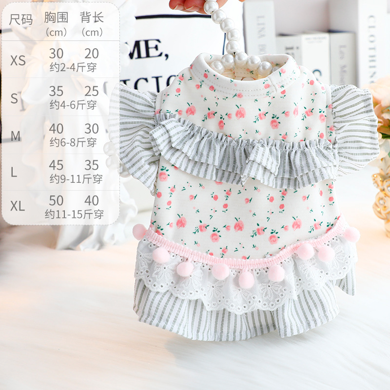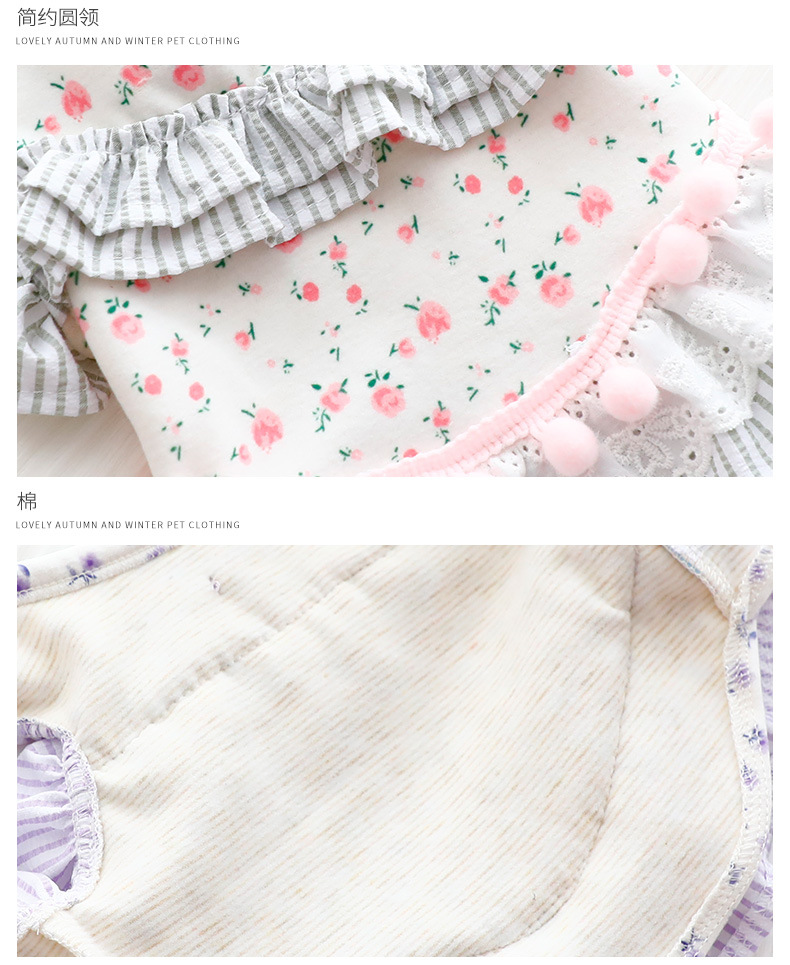 개 옷 봄과 가을 옷 고양이 공주 원피스 꽃 배 보호 홈 옷 파자마 작은 개 테디 애완 동물 6346
