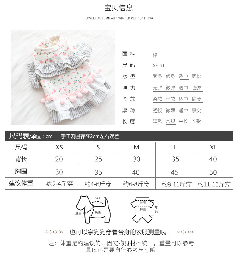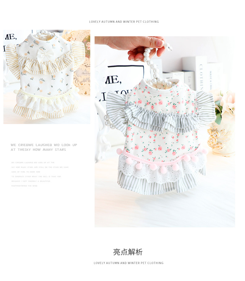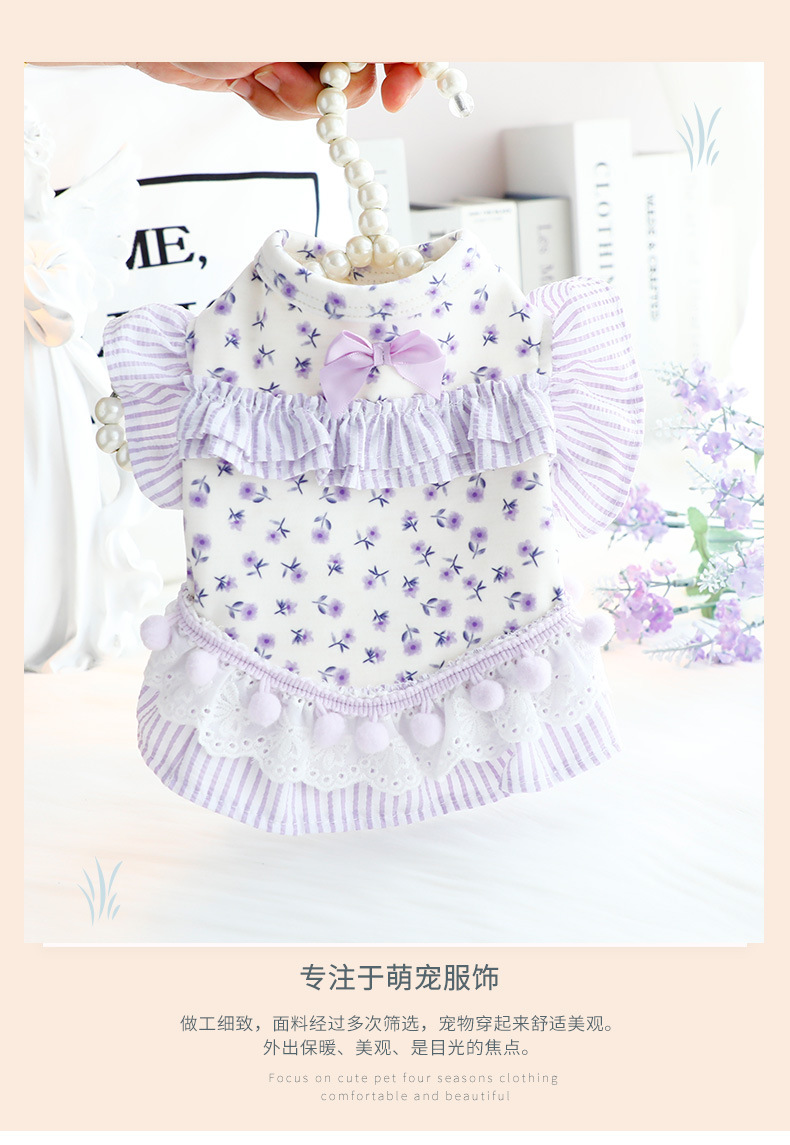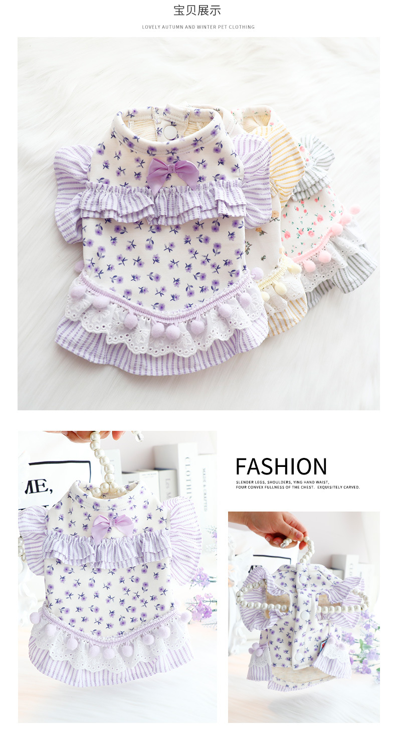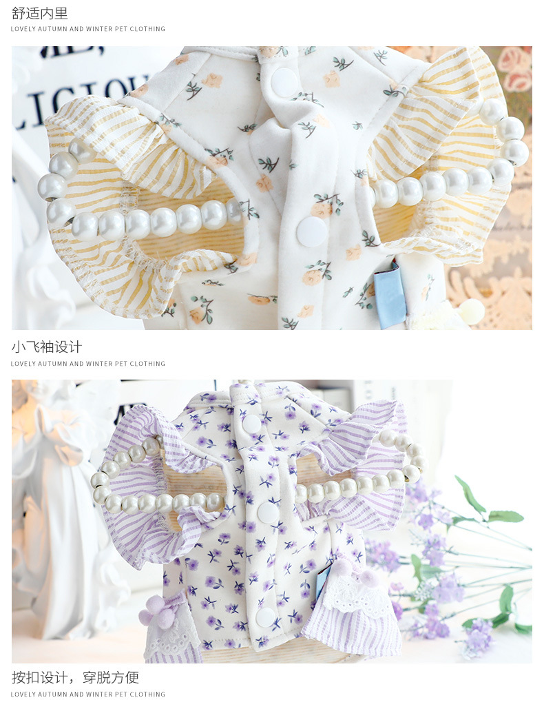 개 옷 봄과 가을 옷 고양이 공주 원피스 꽃 배 보호 홈 옷 파자마 작은 개 테디 애완 동물 6346