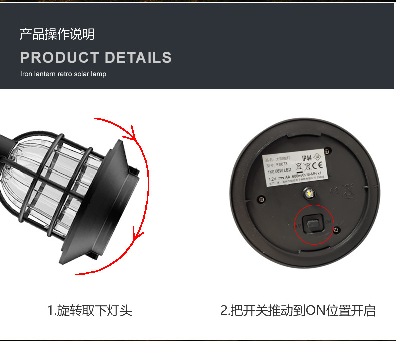 • 2개의 조명 - 따뜻한 조명 - 복고풍 태양광 잔디 조명