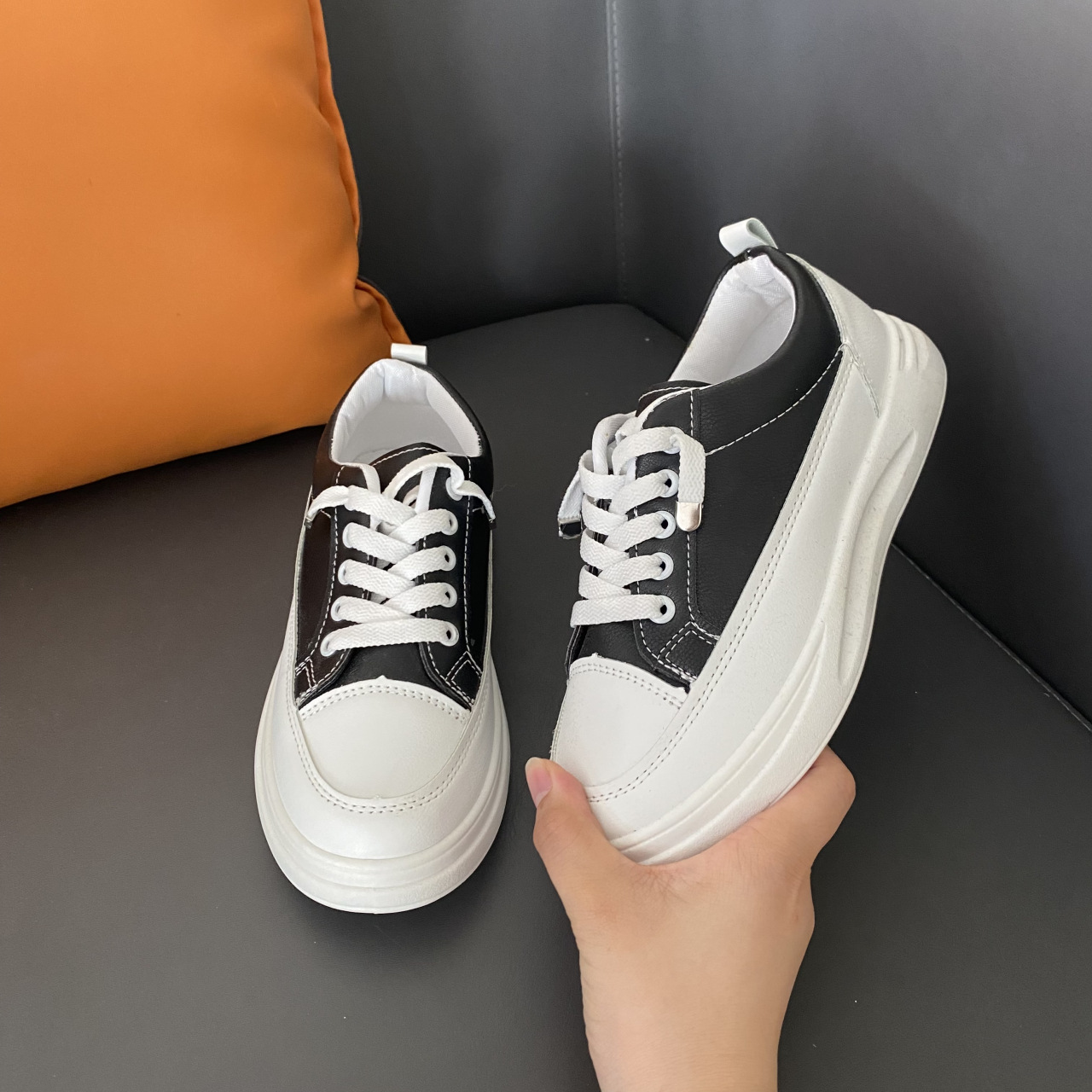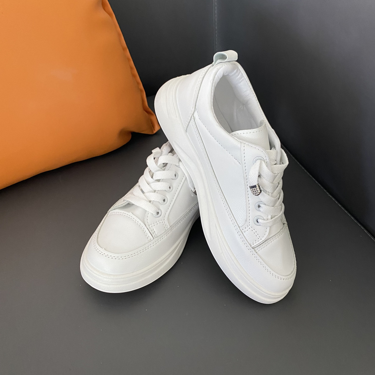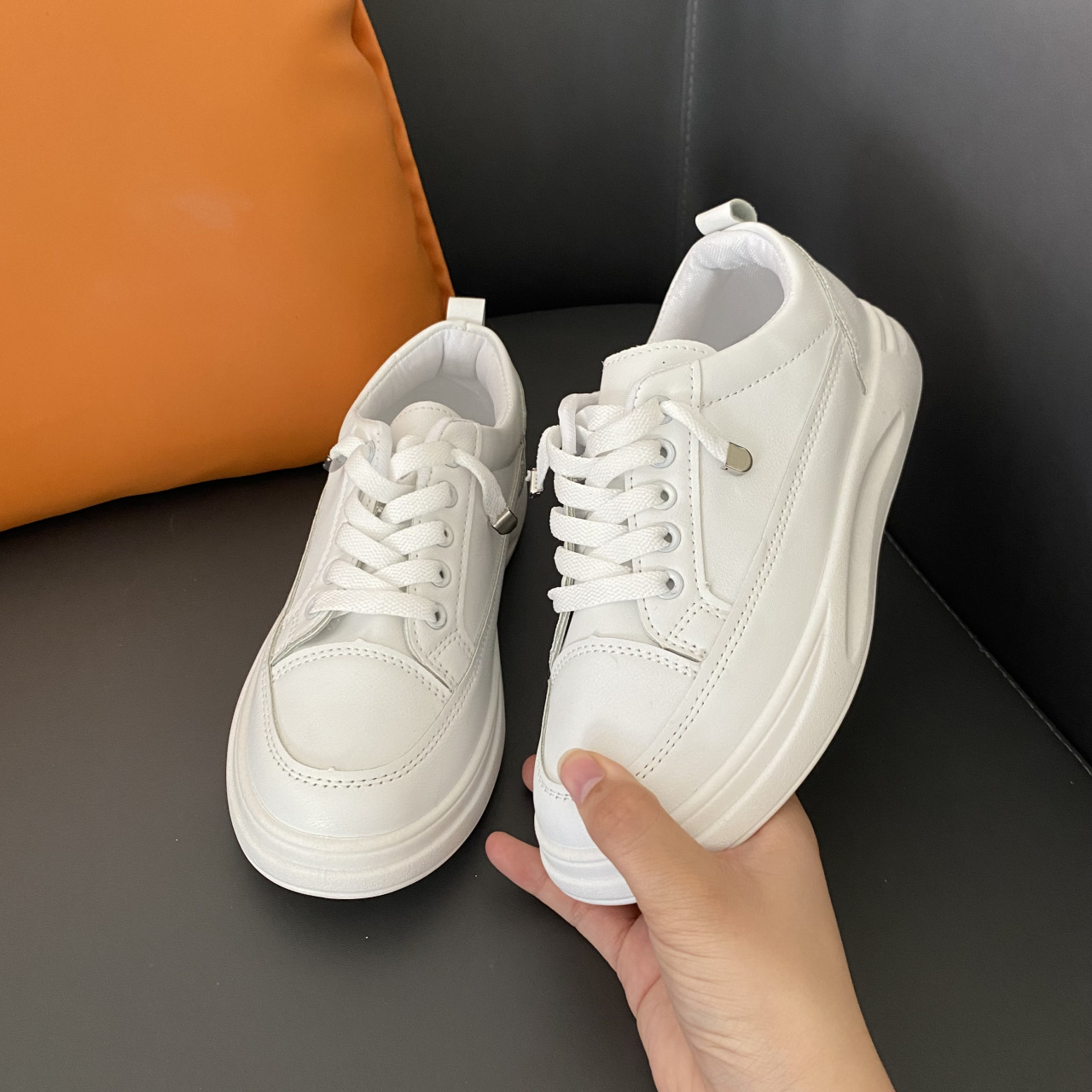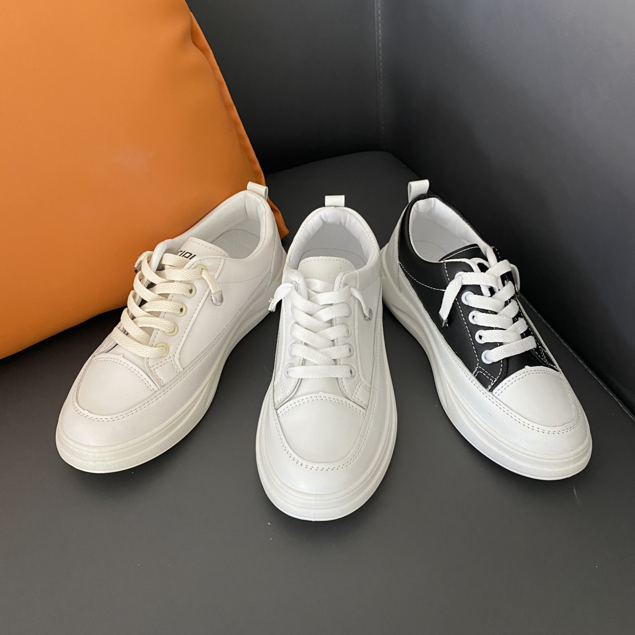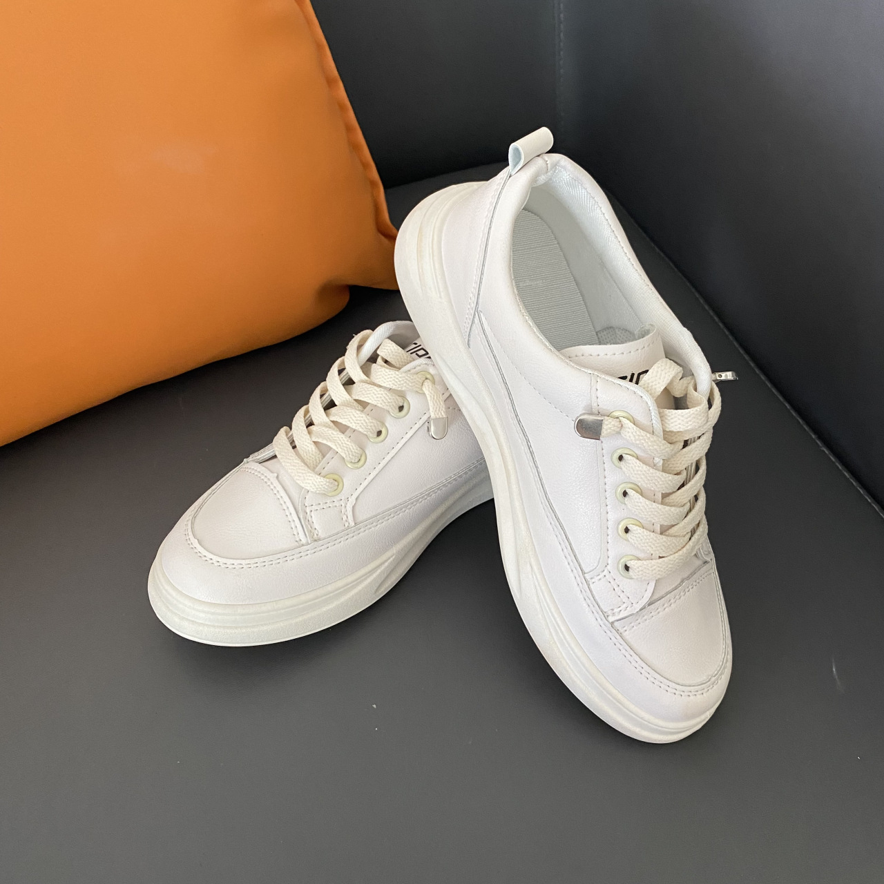 공장 도매 가죽 흰색 신발 여성의 봄과 가을 새로운 여성 캐주얼 여성 신발 가벼운 높이 트렌드 여성 신발