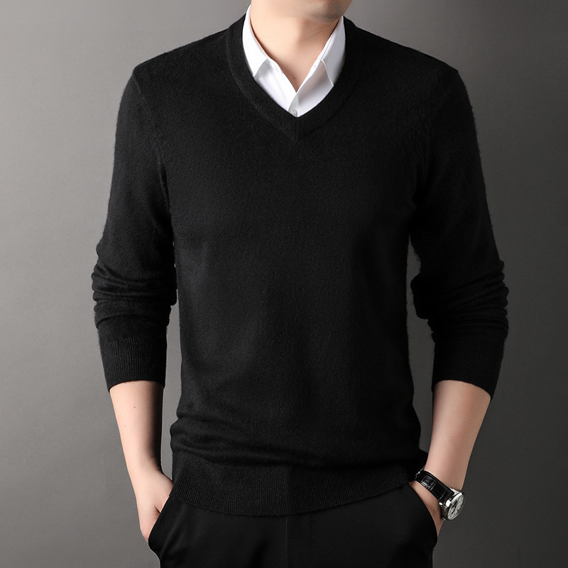 Yuyuan 제조업체 스트레이트 헤어 남성 겨울 새로운 두꺼운 치킨 하트 V 넥 스웨터 풀오버 남성 긴팔 스웨터베이스