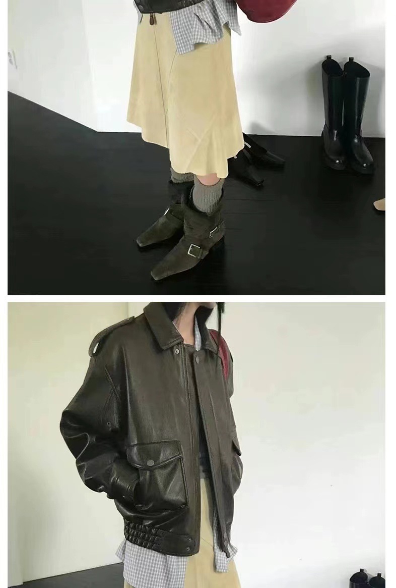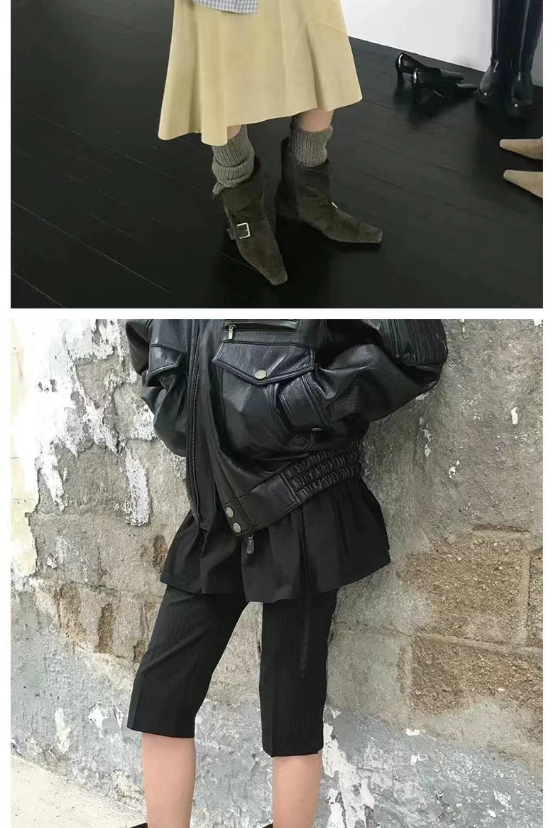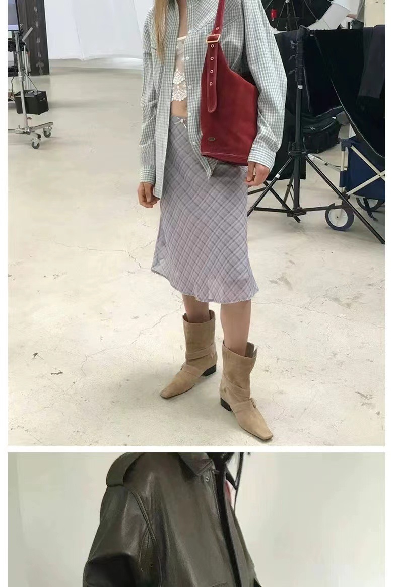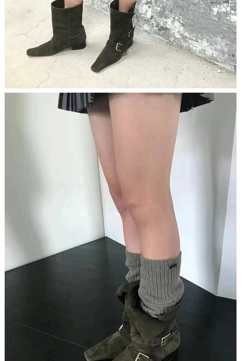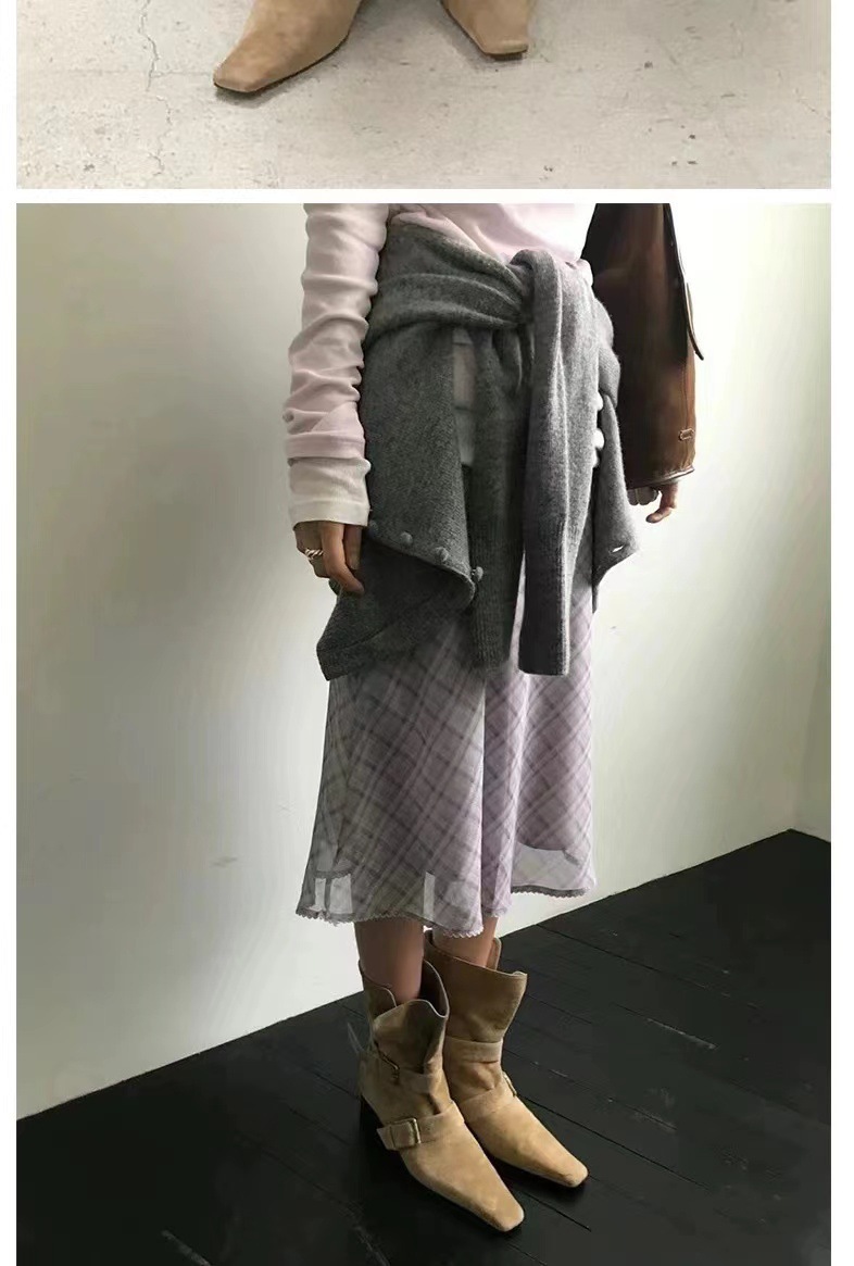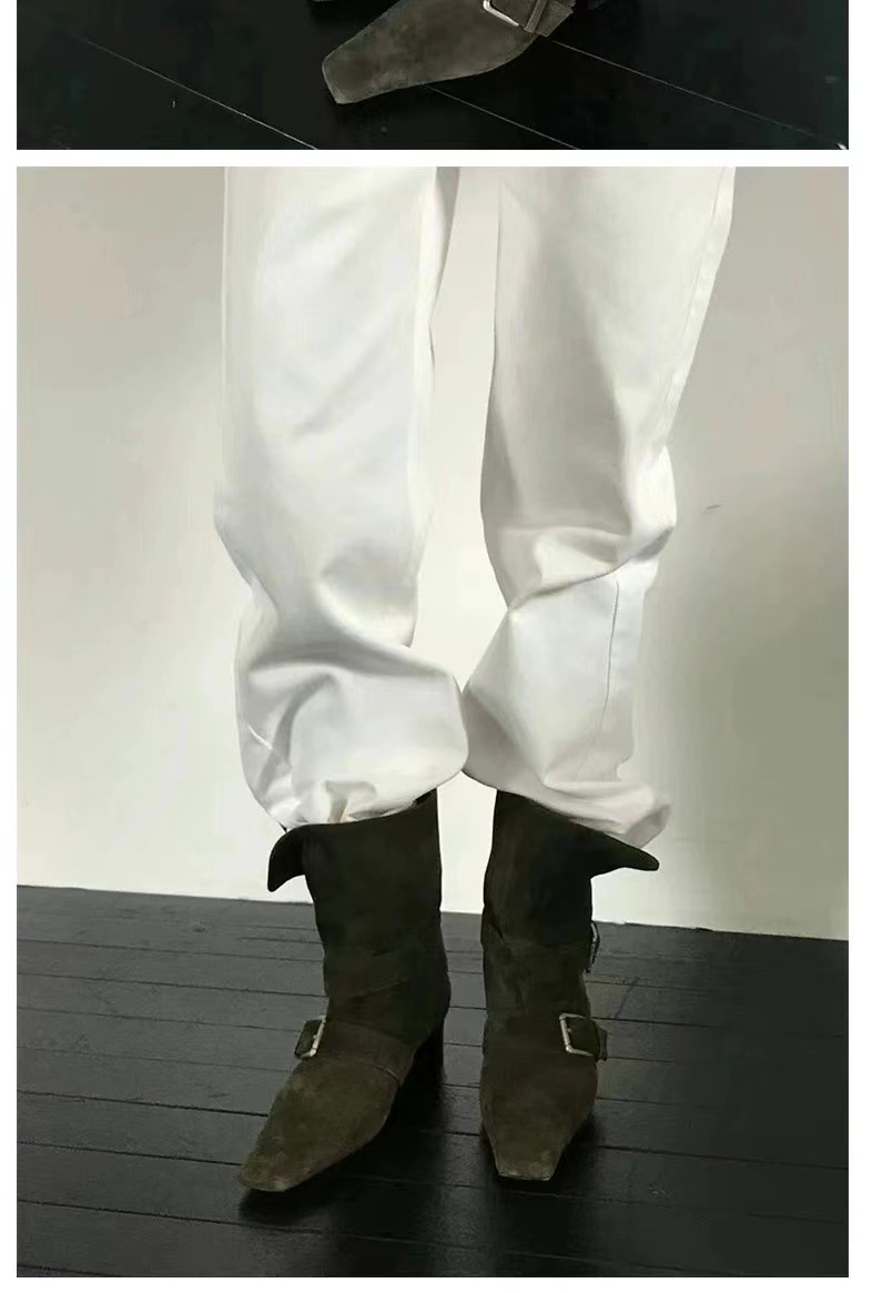 2024 가을과 겨울 새로운 스웨이드 레트로 작은 사각형 투웨어 접이식 두꺼운 힐 벨트 버클 부츠 여성용 마틴 짧은 부츠스토어 가기