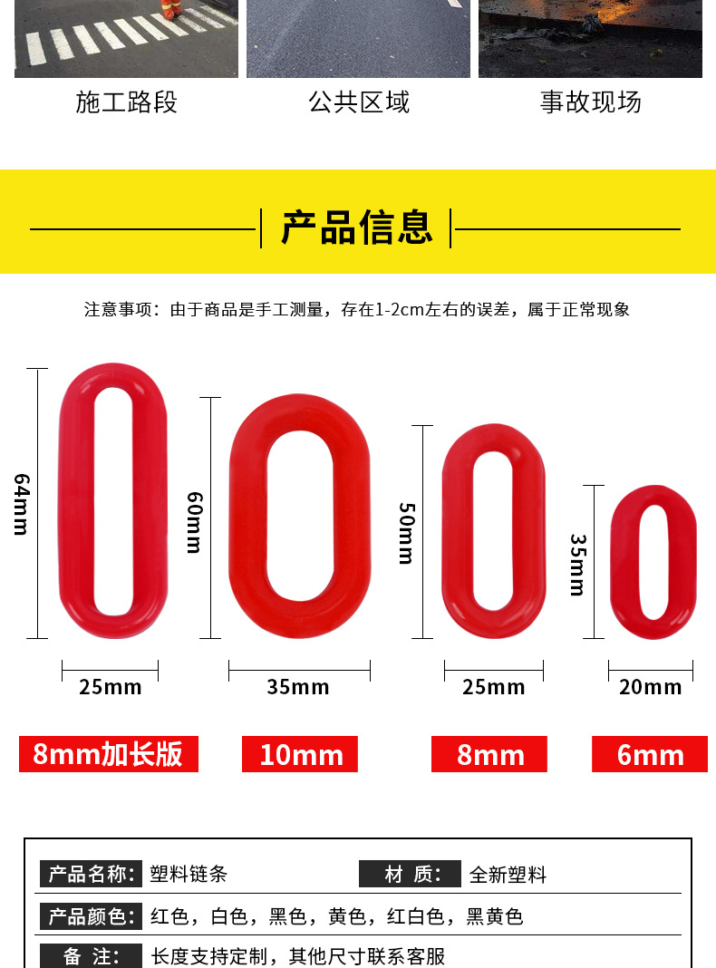 경고 도로 콘 체인 교통 플라스틱 경고 체인 건설 안전 격리 연결 체인 건설 현장용 보호 체인스토어 가기