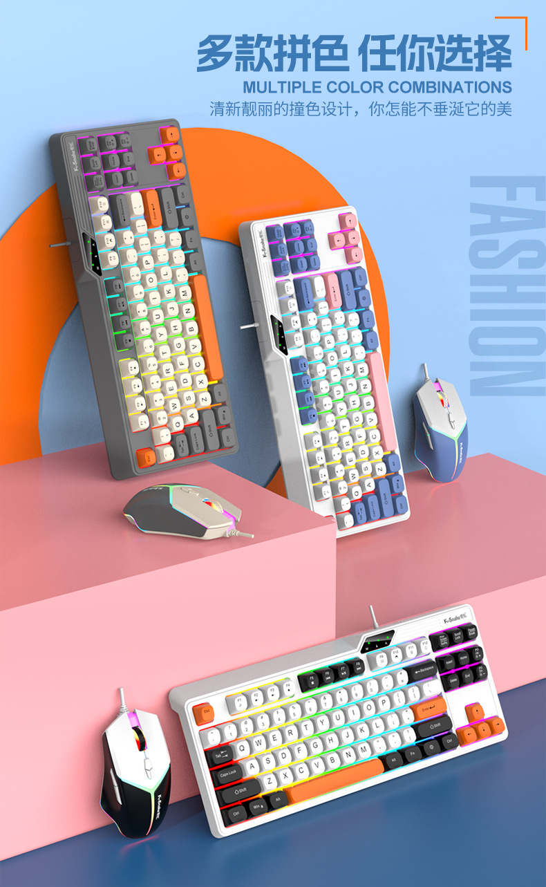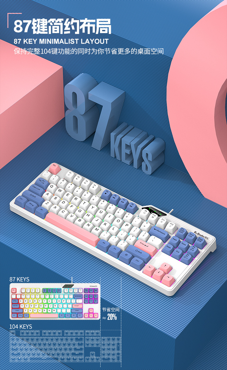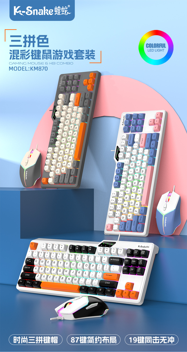 Viper KM870 유선 기계식 키보드 및 마우스 세트 87키 e-스포츠 게임 컴퓨터 USB 키보드 및 마우스 프로모션