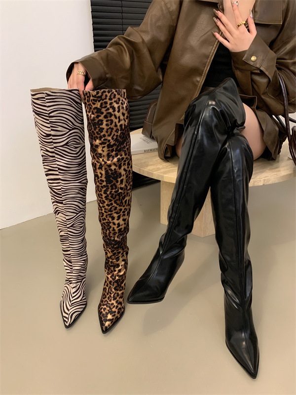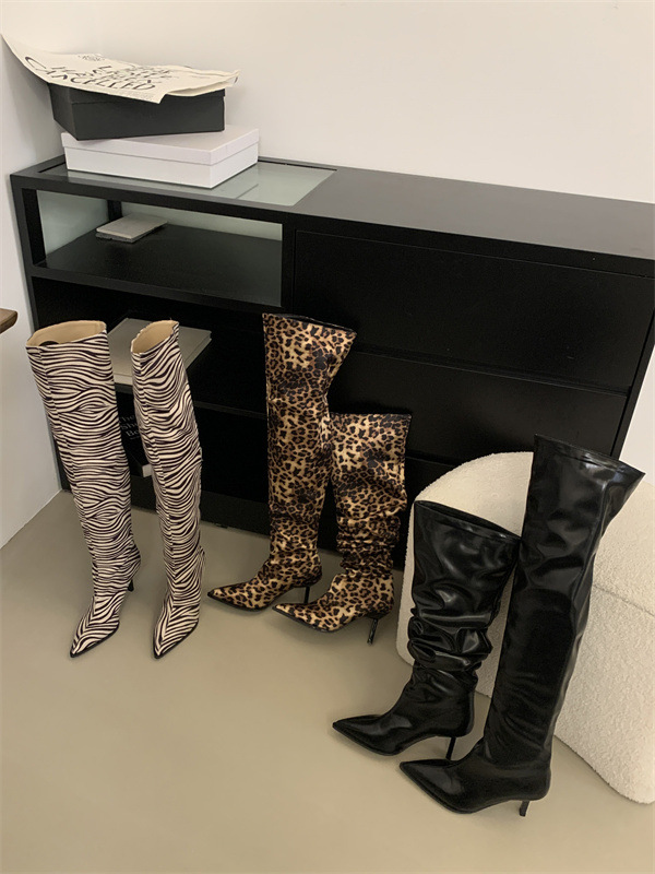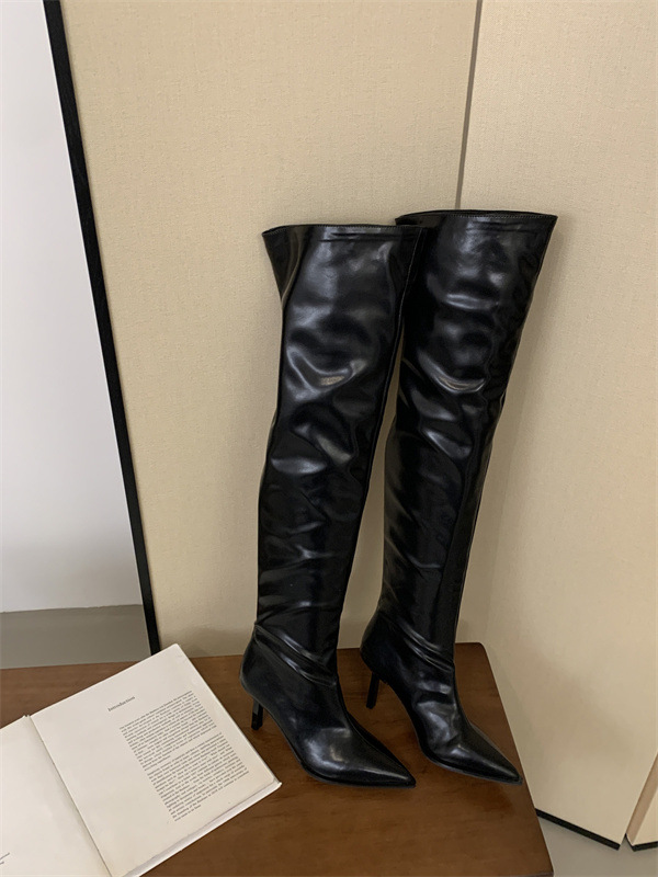 가을과 겨울 2024 새로운 패션 뾰족한 얇은 뒤꿈치 주름 소매 패션 부츠 하이힐 마틴 부츠 높은 부츠스토어 가기