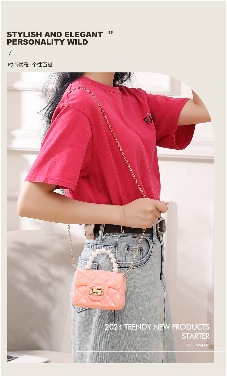 젤리 가방 새로운 귀여운 소녀 어깨 크로스 바디 가방 인터넷 인기있는 올 매치 프린세스 스타일 진주 작은 사첼 동전 지갑