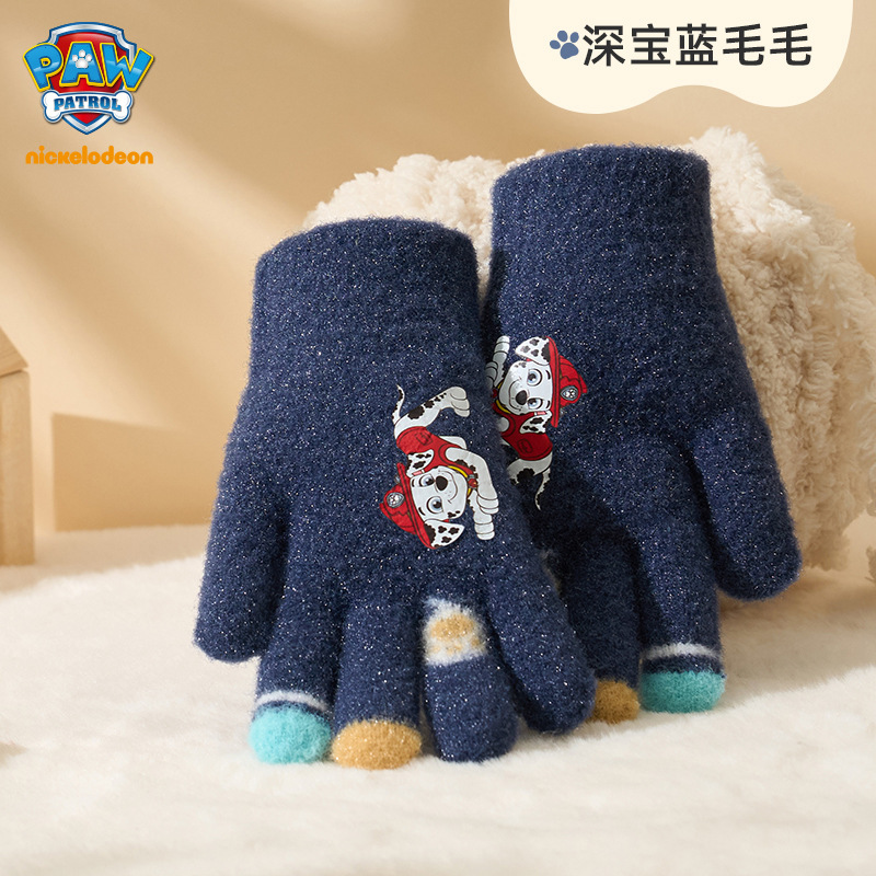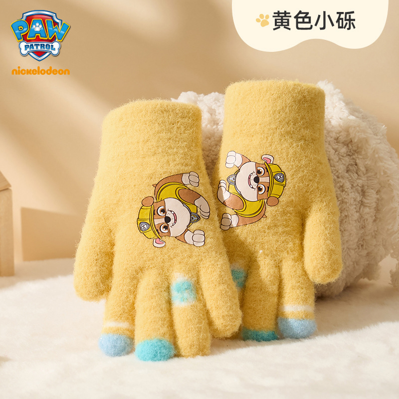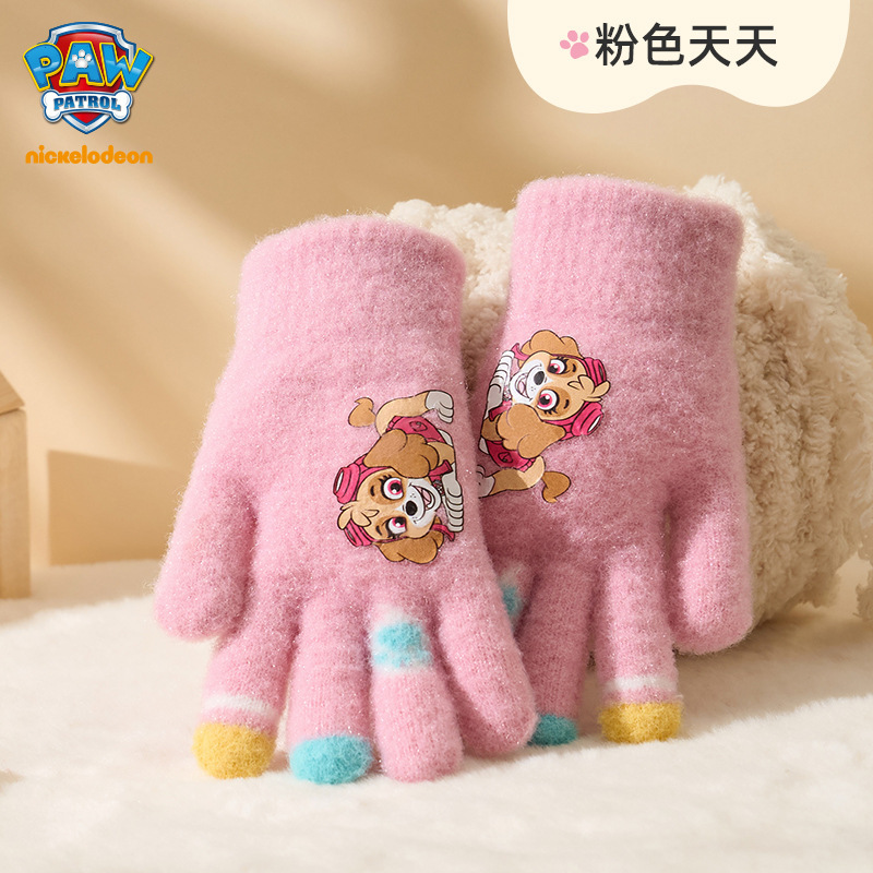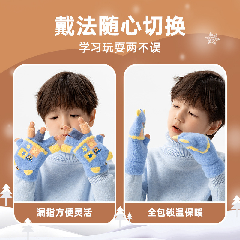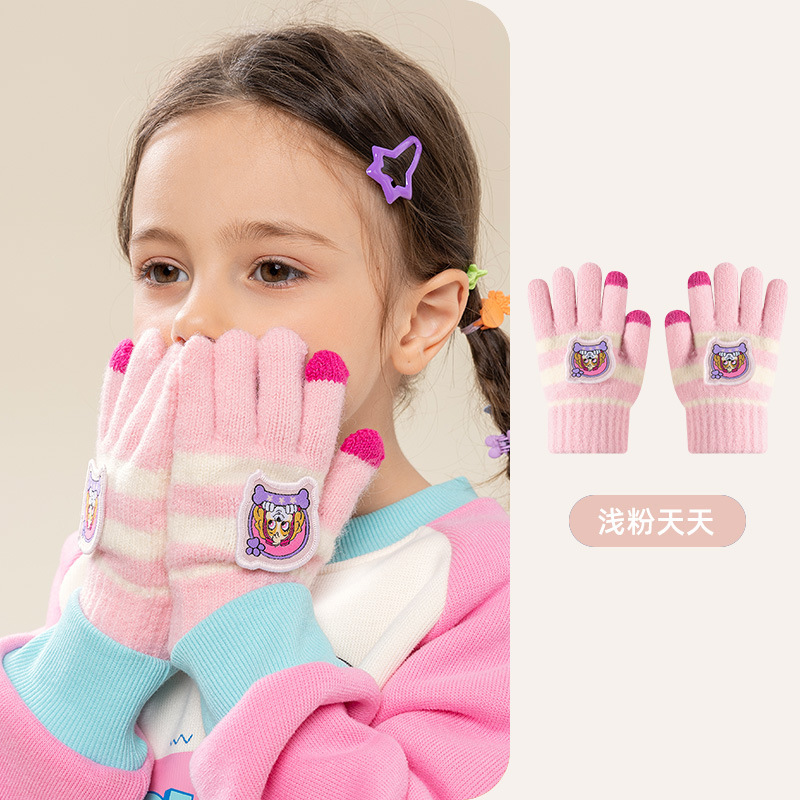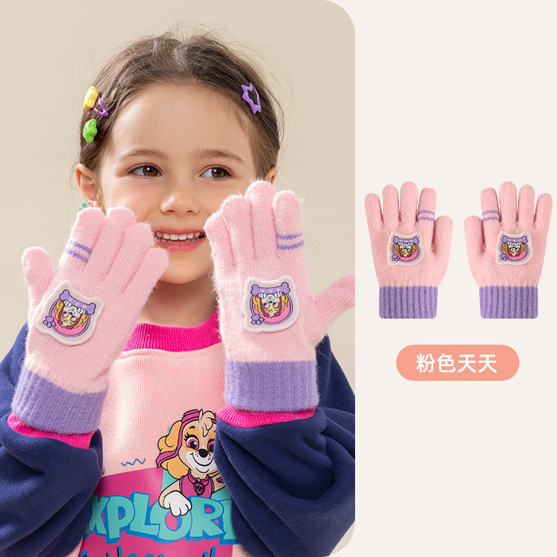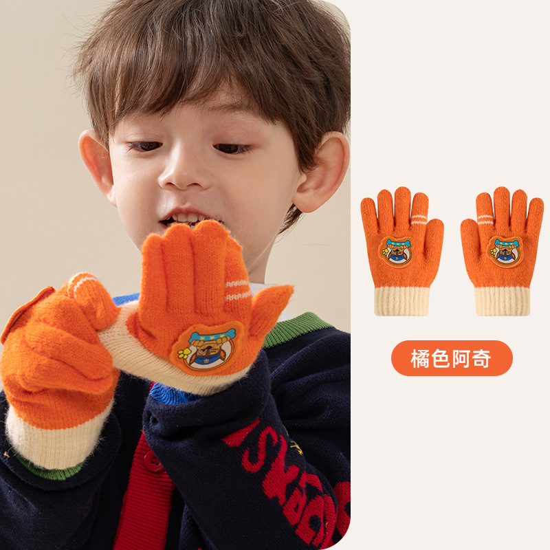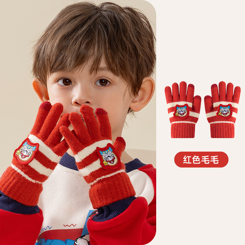 왕왕 팀 귀여운 만화 장갑 어린이 다섯 손가락 니트 장갑 겨울 남녀 아기 어린이 인쇄 따뜻한 장갑