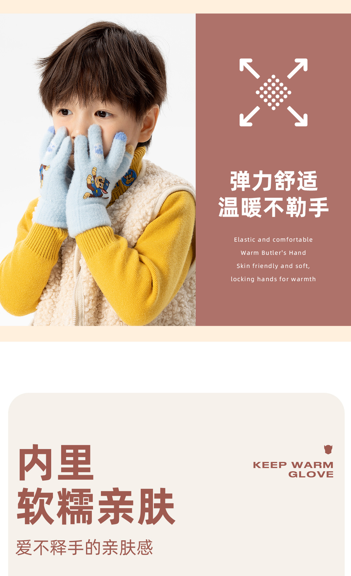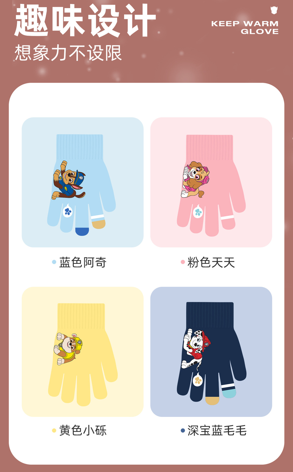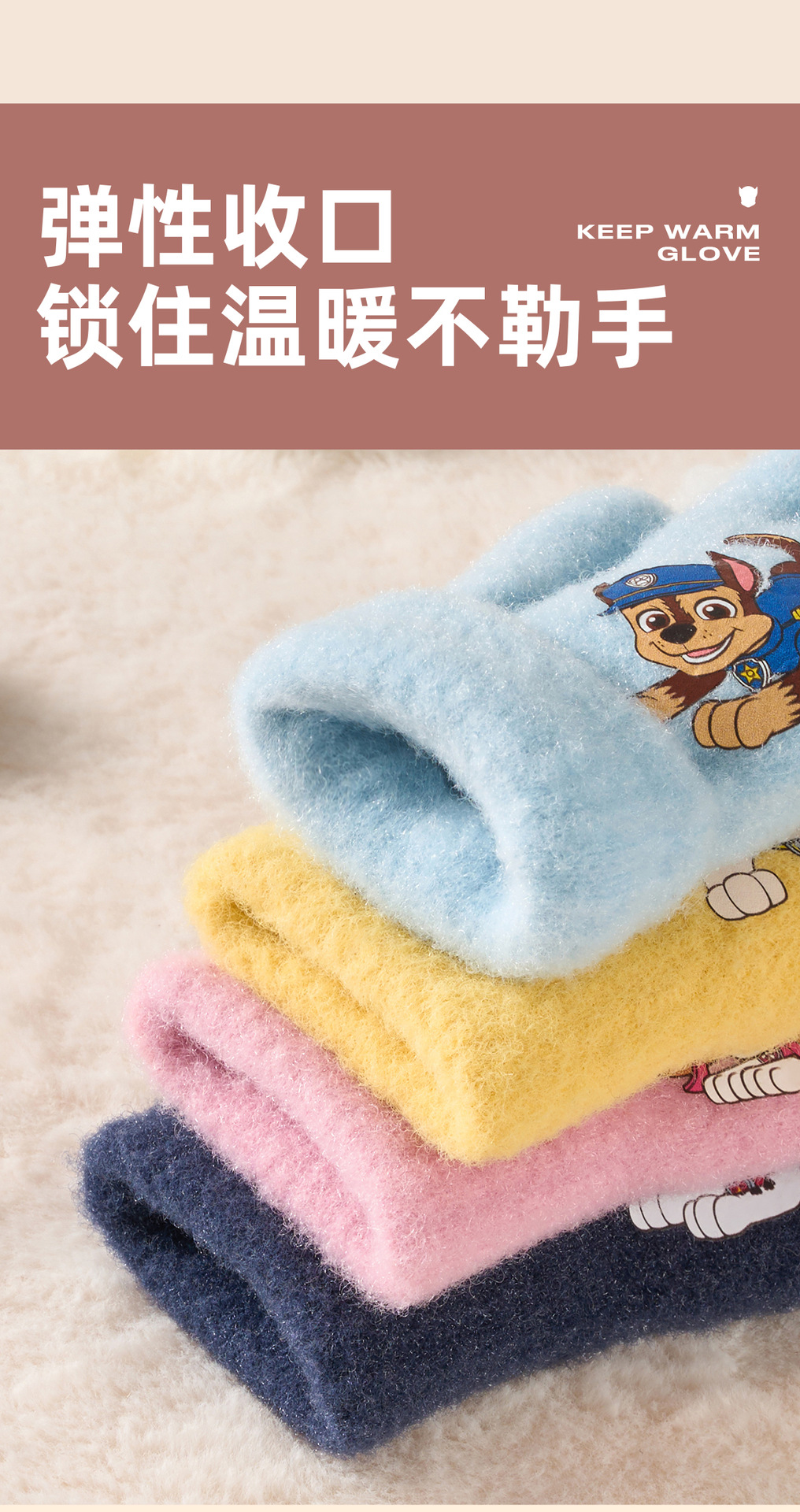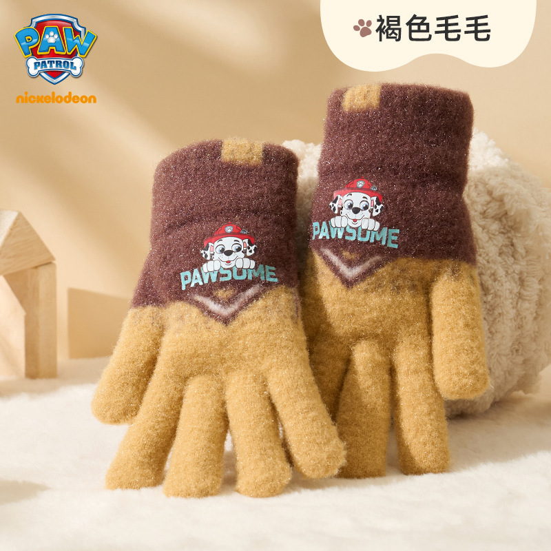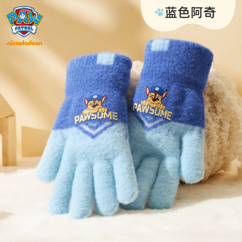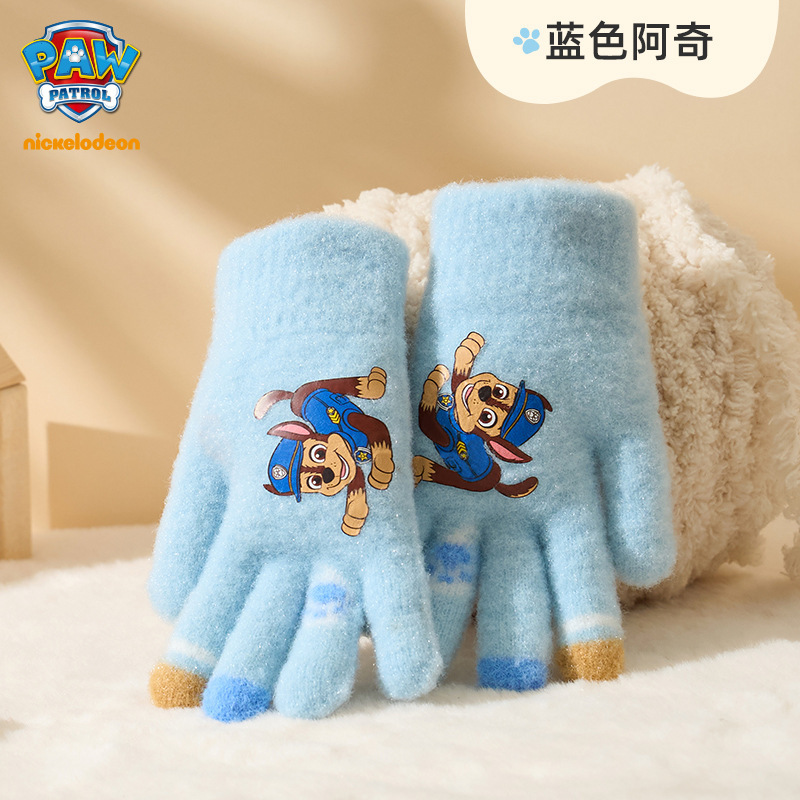 왕왕 팀 귀여운 만화 장갑 어린이 다섯 손가락 니트 장갑 겨울 남녀 아기 어린이 인쇄 따뜻한 장갑