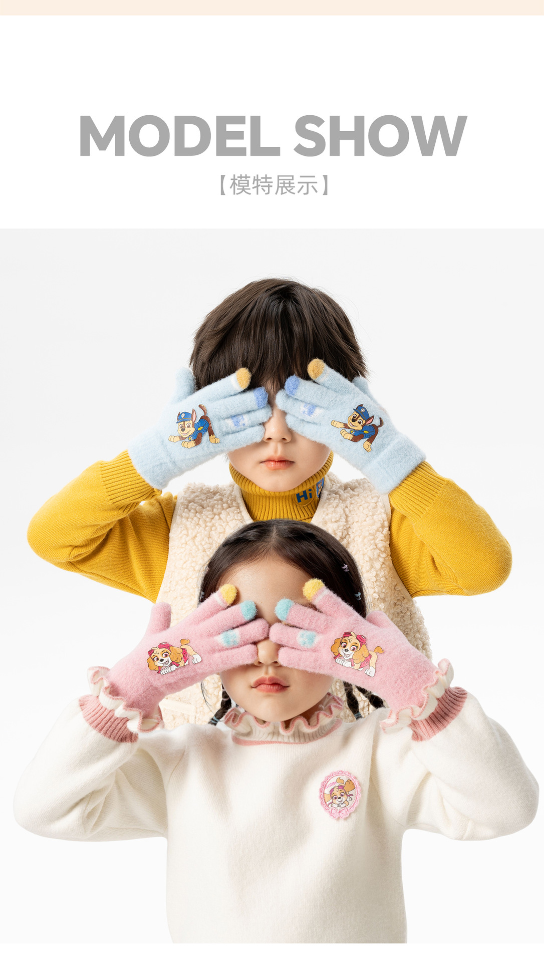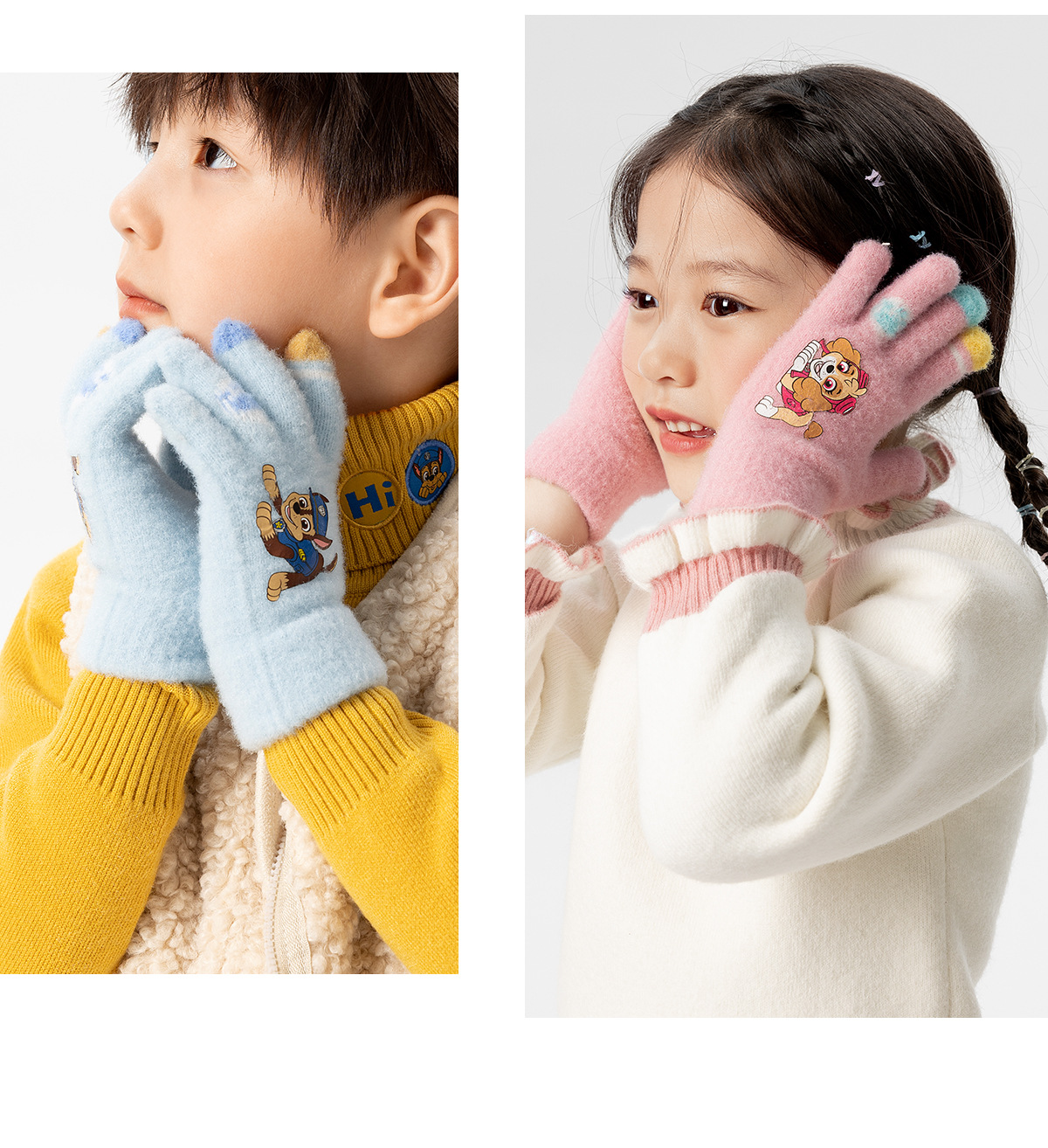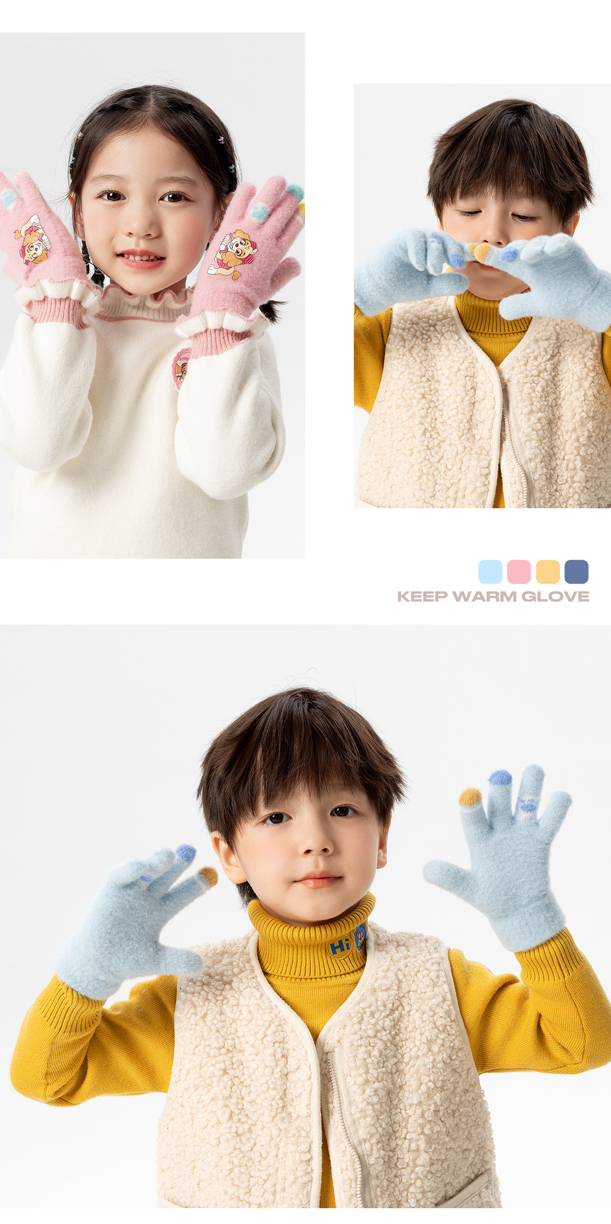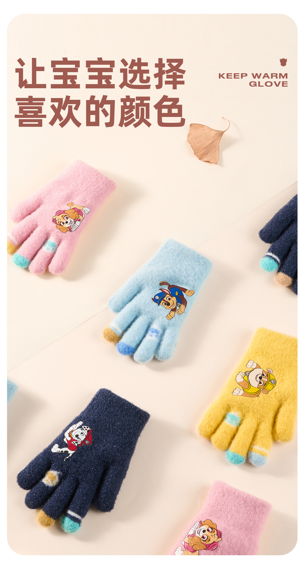 왕왕 팀 귀여운 만화 장갑 어린이 다섯 손가락 니트 장갑 겨울 남녀 아기 어린이 인쇄 따뜻한 장갑