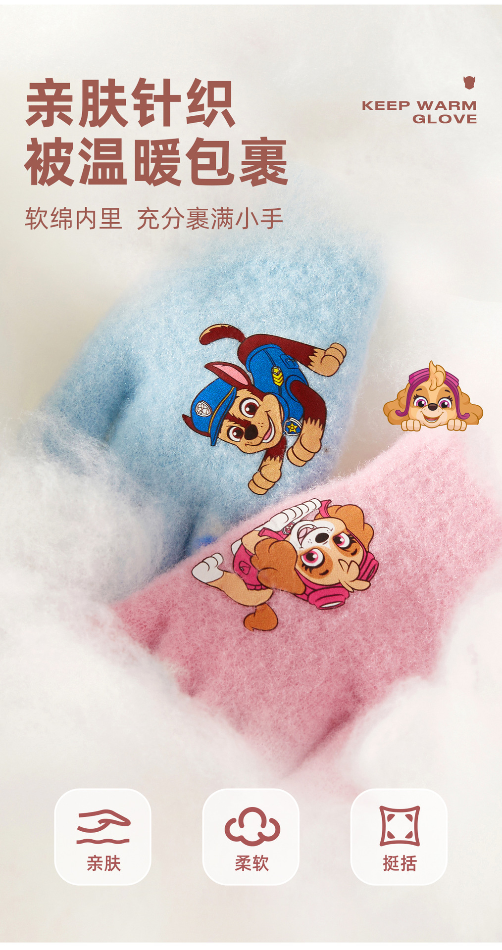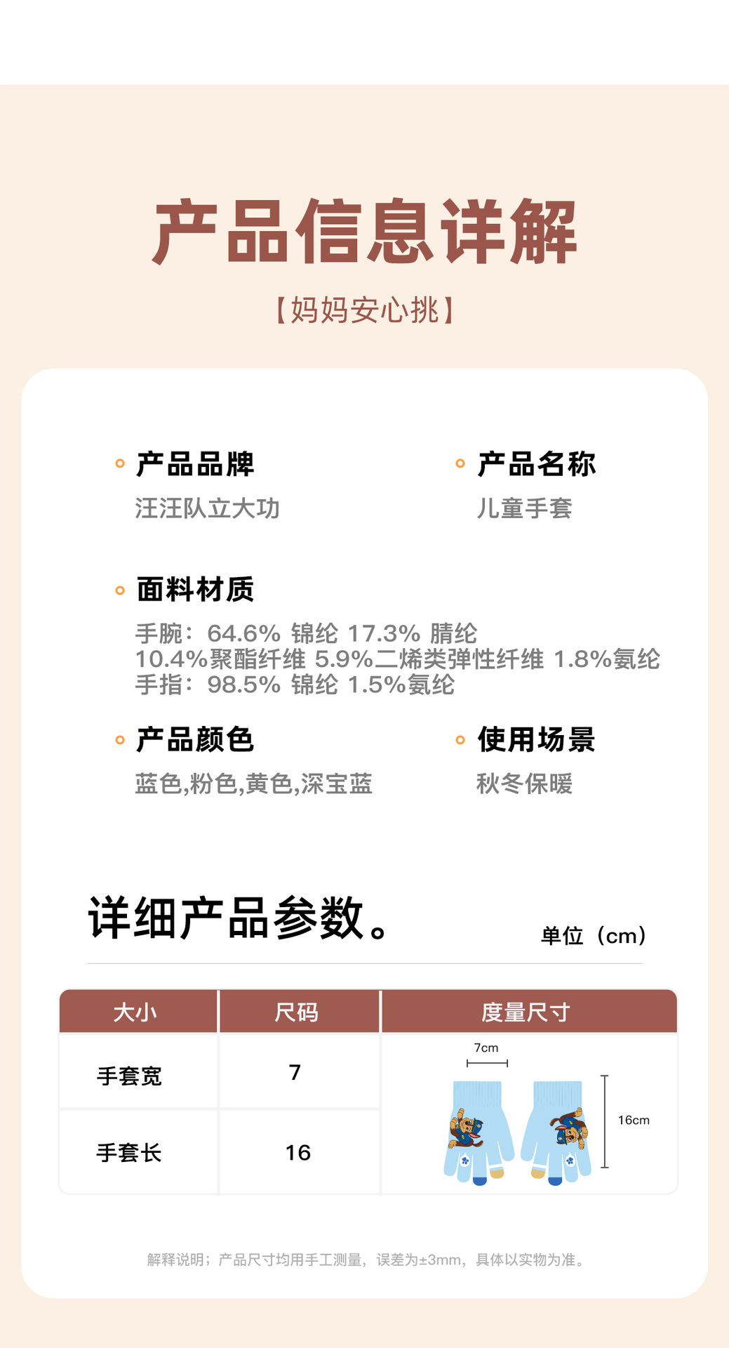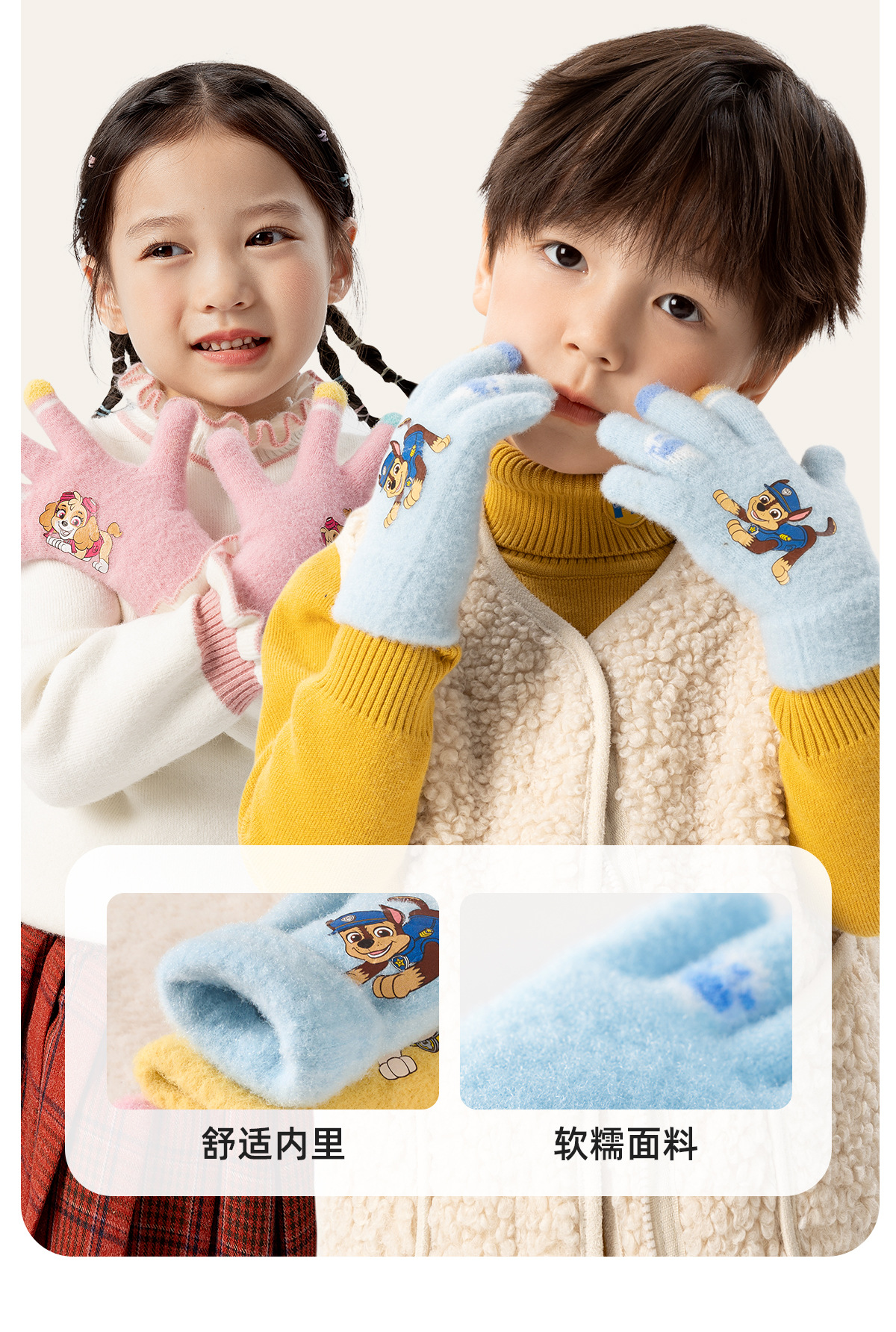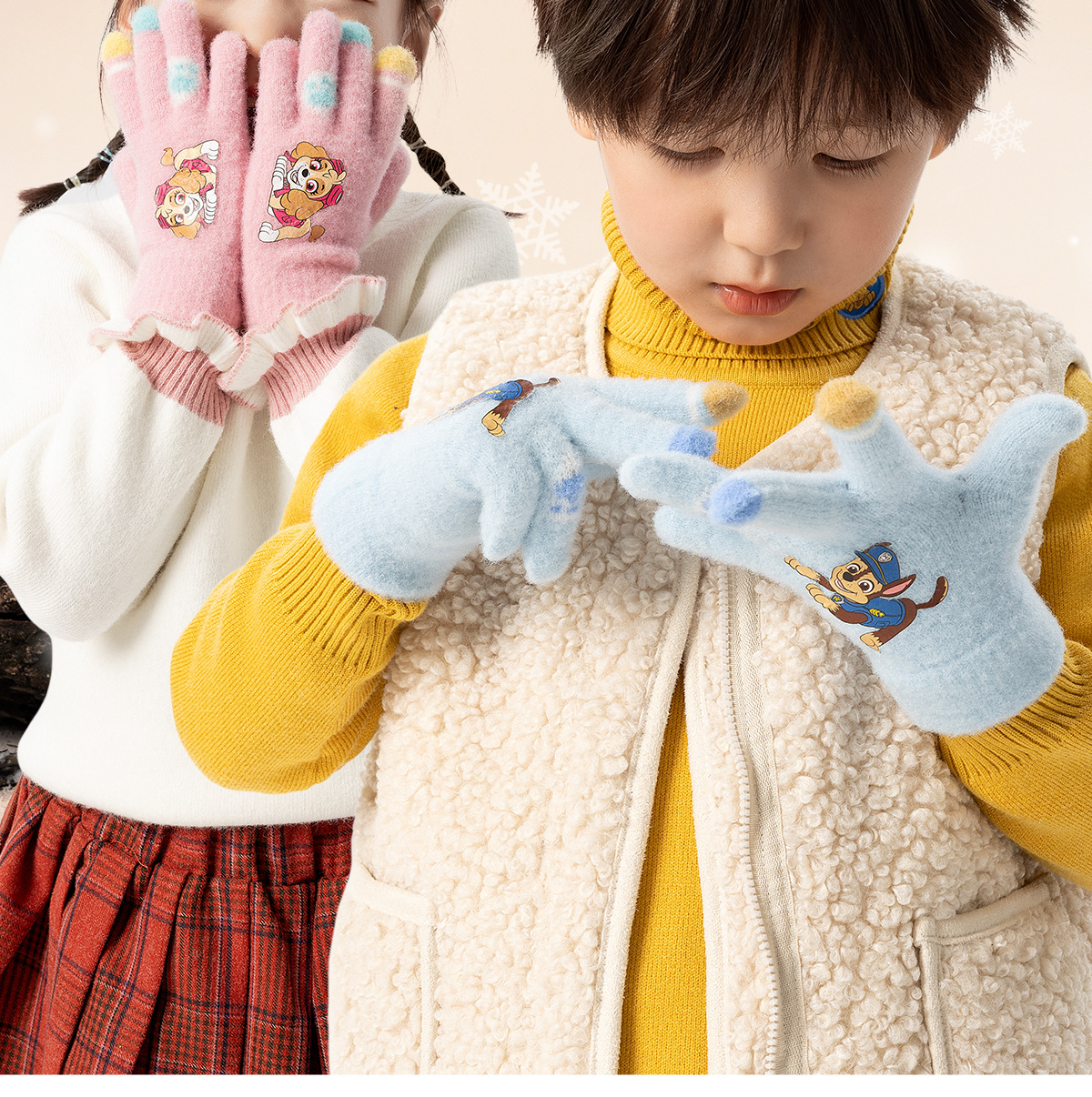 왕왕 팀 귀여운 만화 장갑 어린이 다섯 손가락 니트 장갑 겨울 남녀 아기 어린이 인쇄 따뜻한 장갑