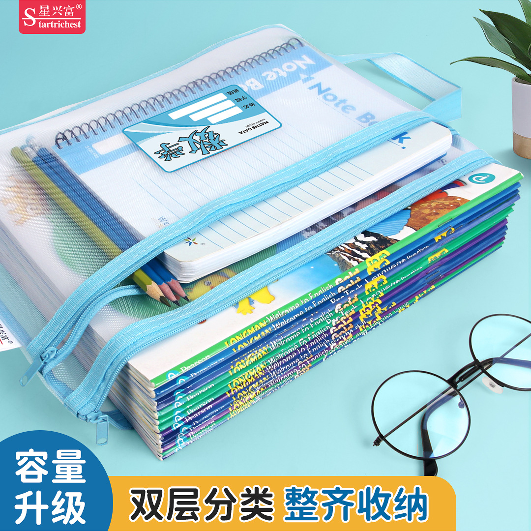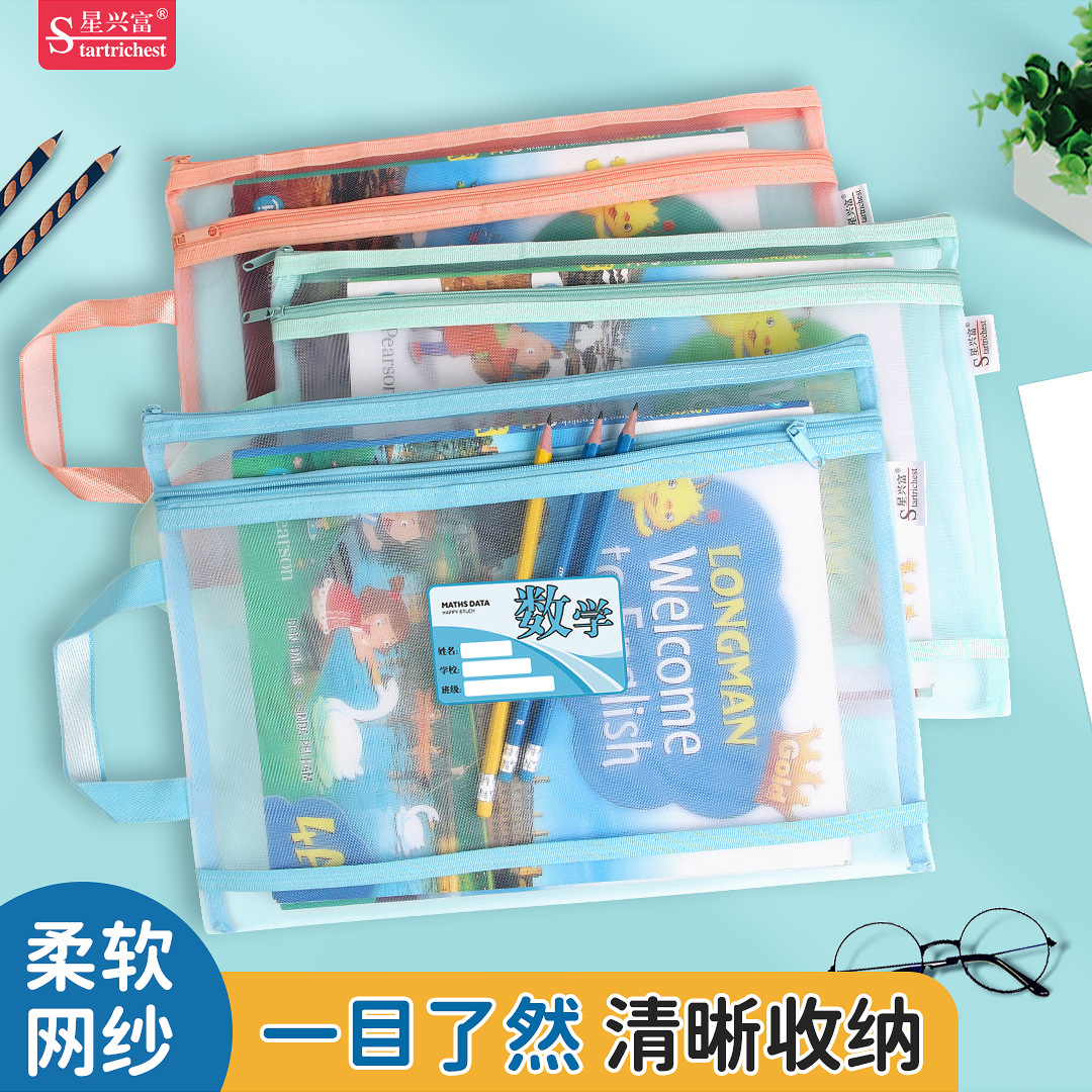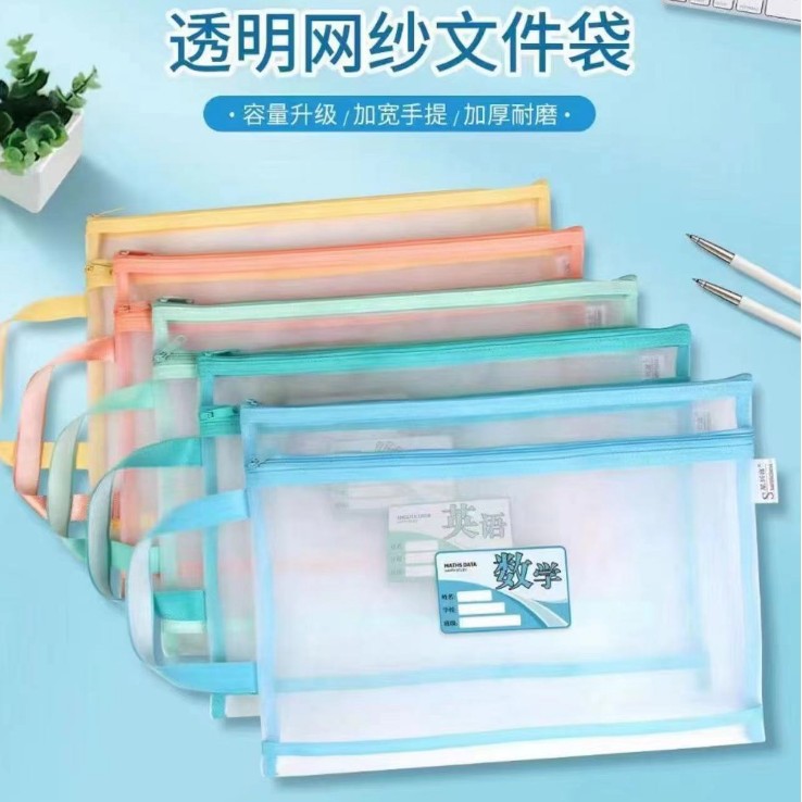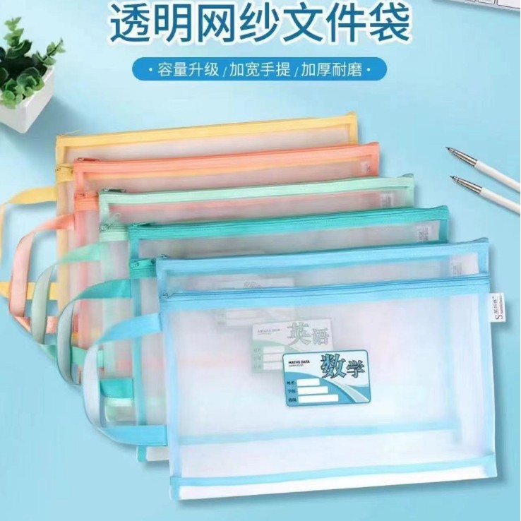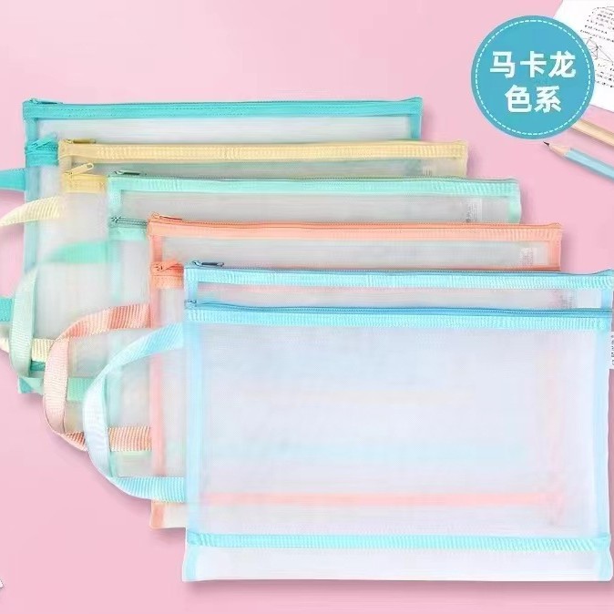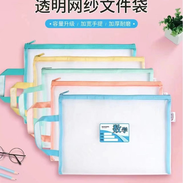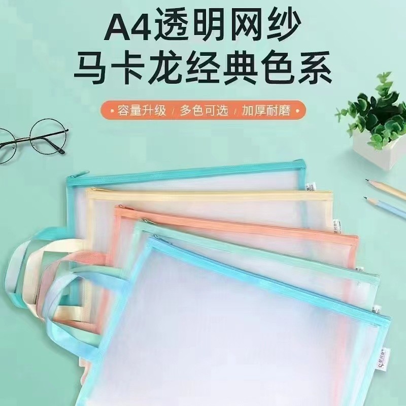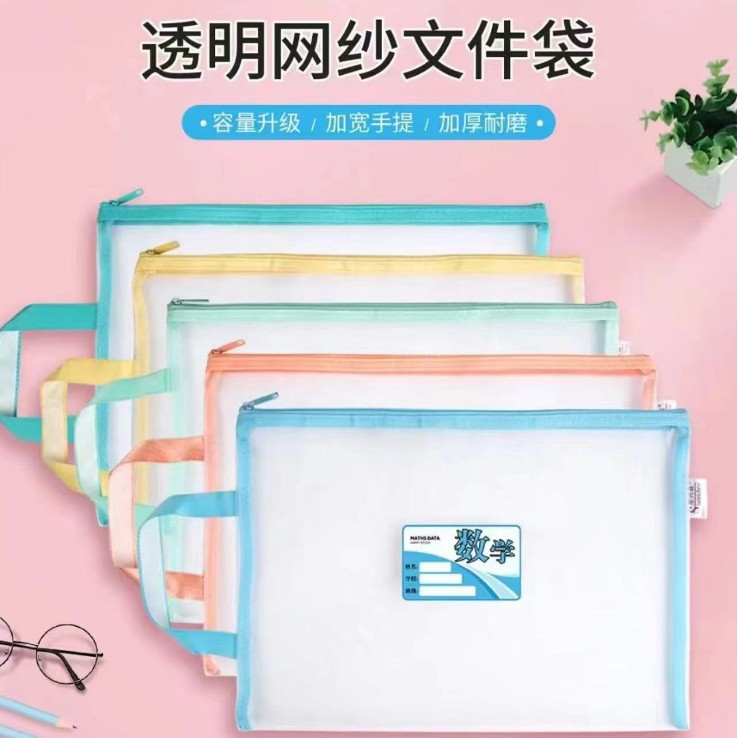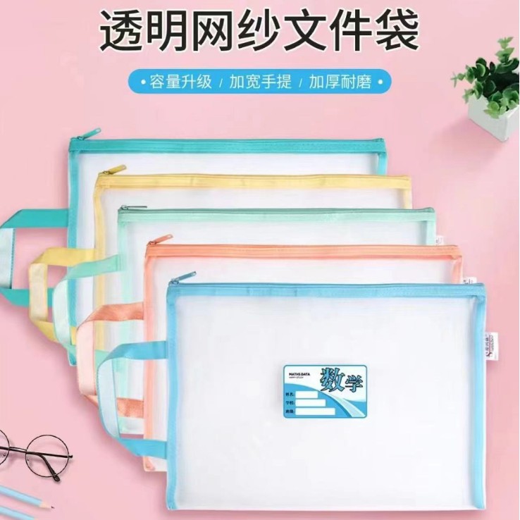 샘플 사용자 정의 주제 분류 파일 가방 a4 세분화 숙제 테스트 종이 책 저장 가방 투명 메쉬 핸드백스토어 가기