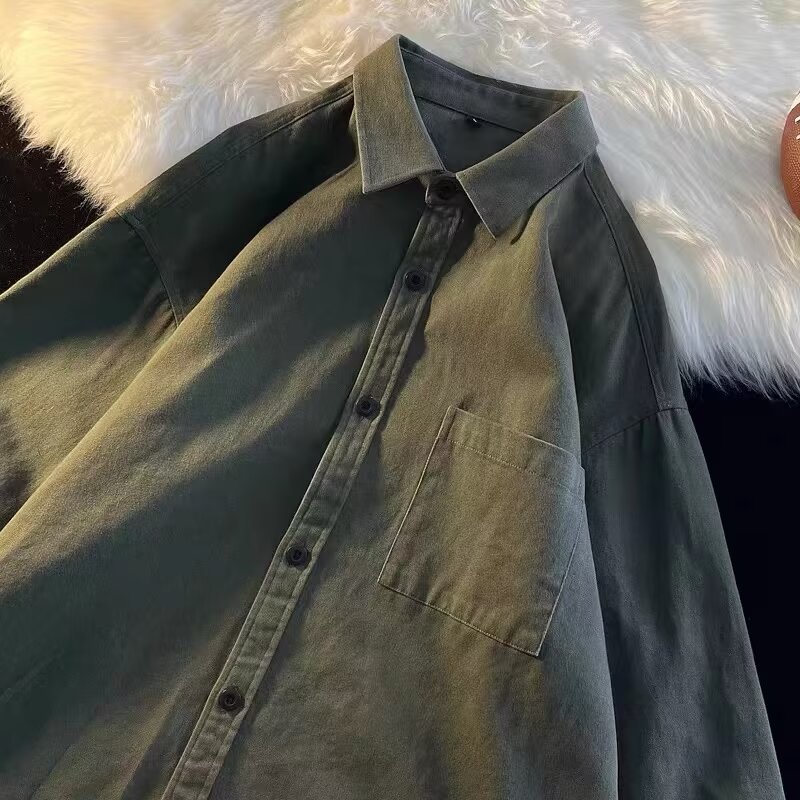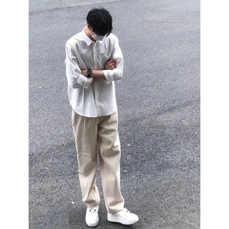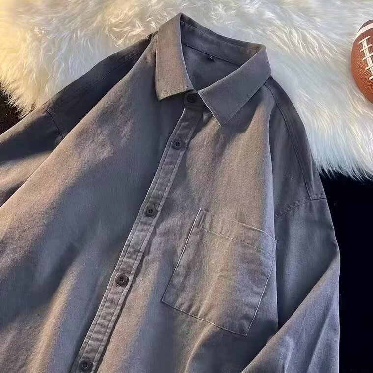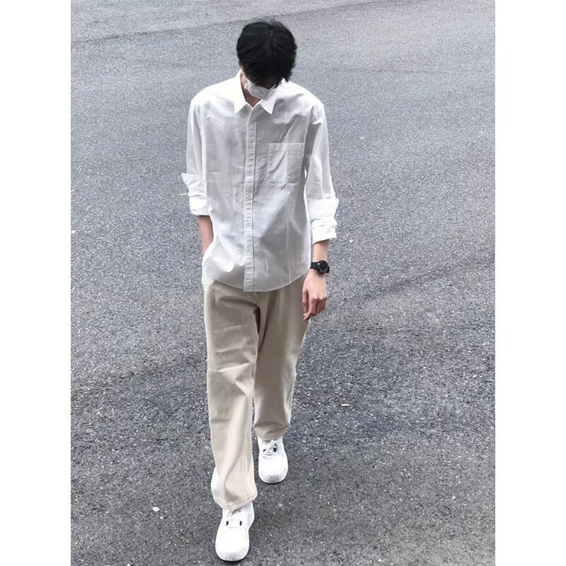 미국식 무거운 작업 형식베이스 느슨한 면 긴팔 흰 셔츠 남자 캐주얼 일본식 유피 잘생긴 셔츠스토어 가기