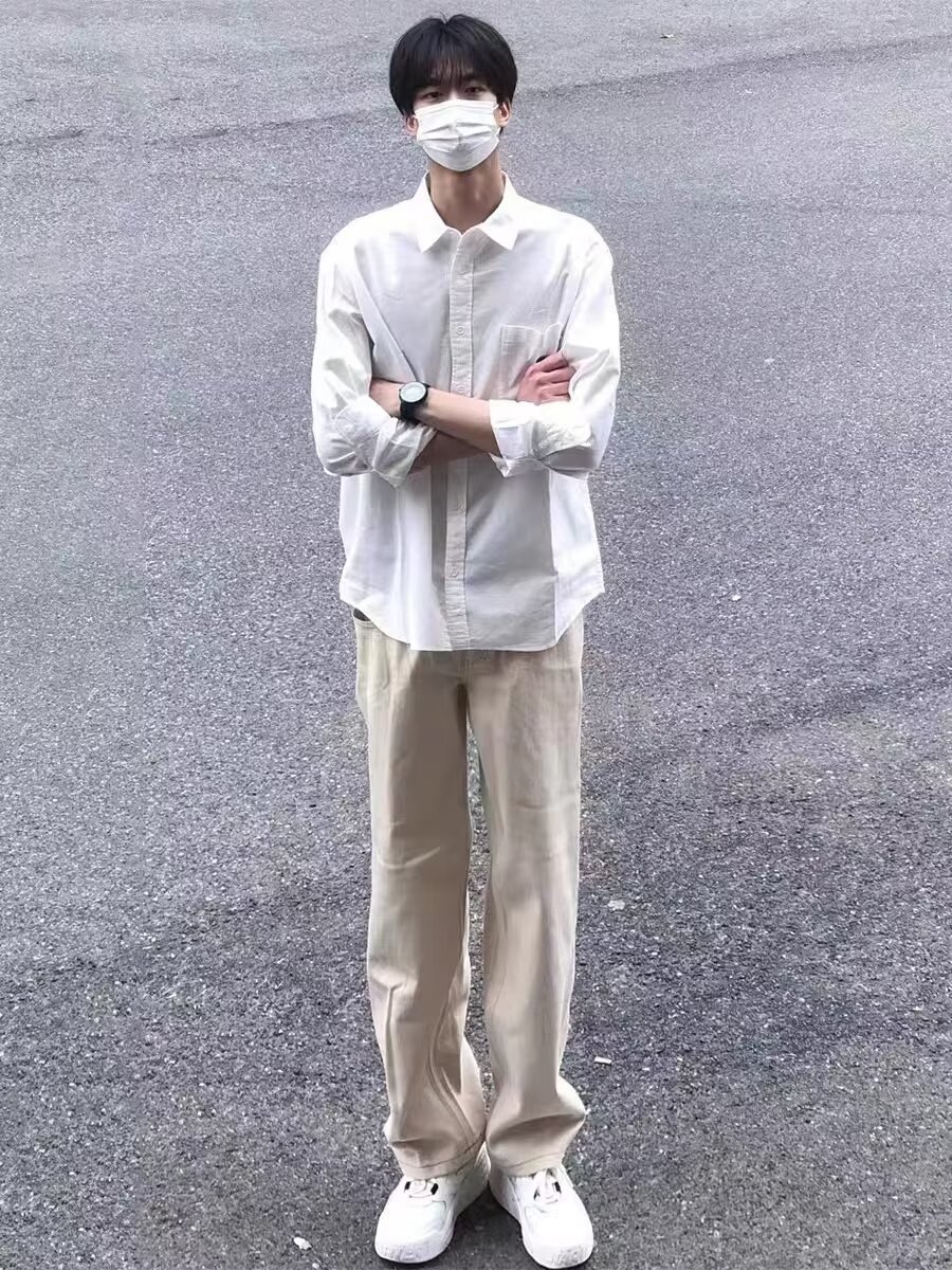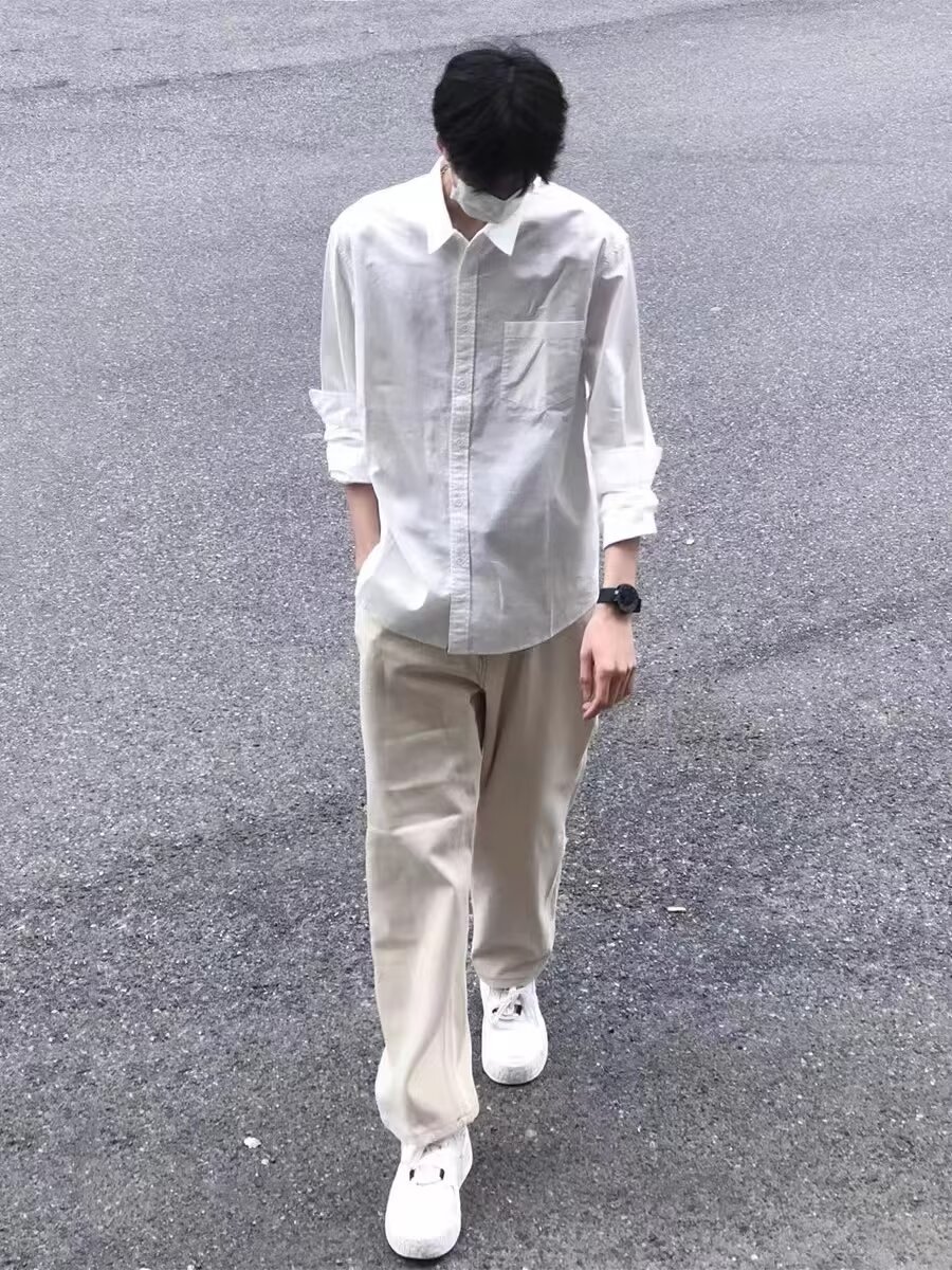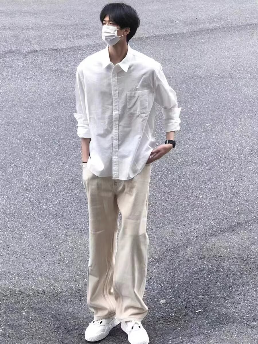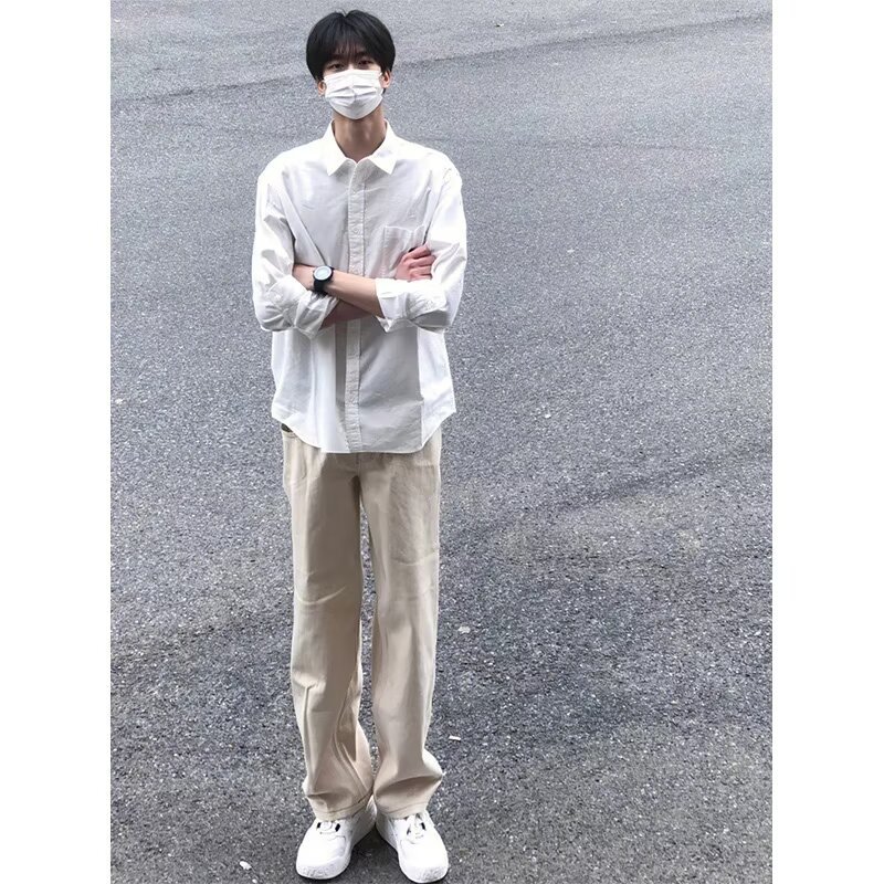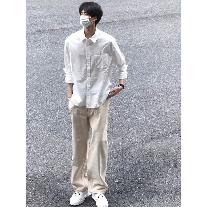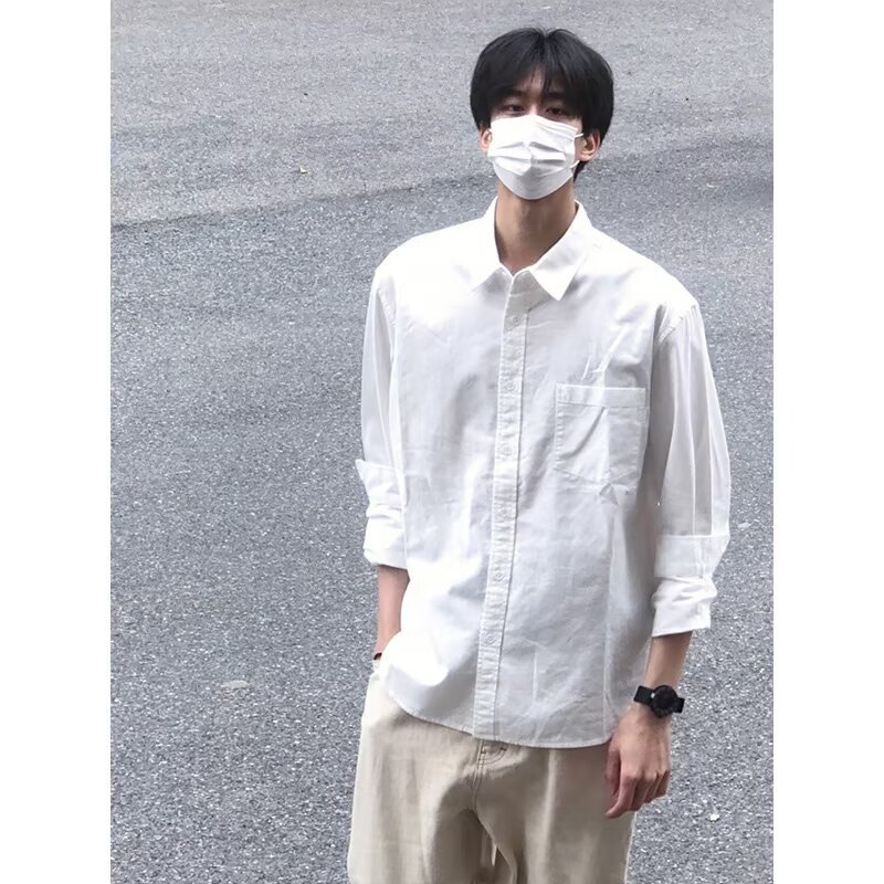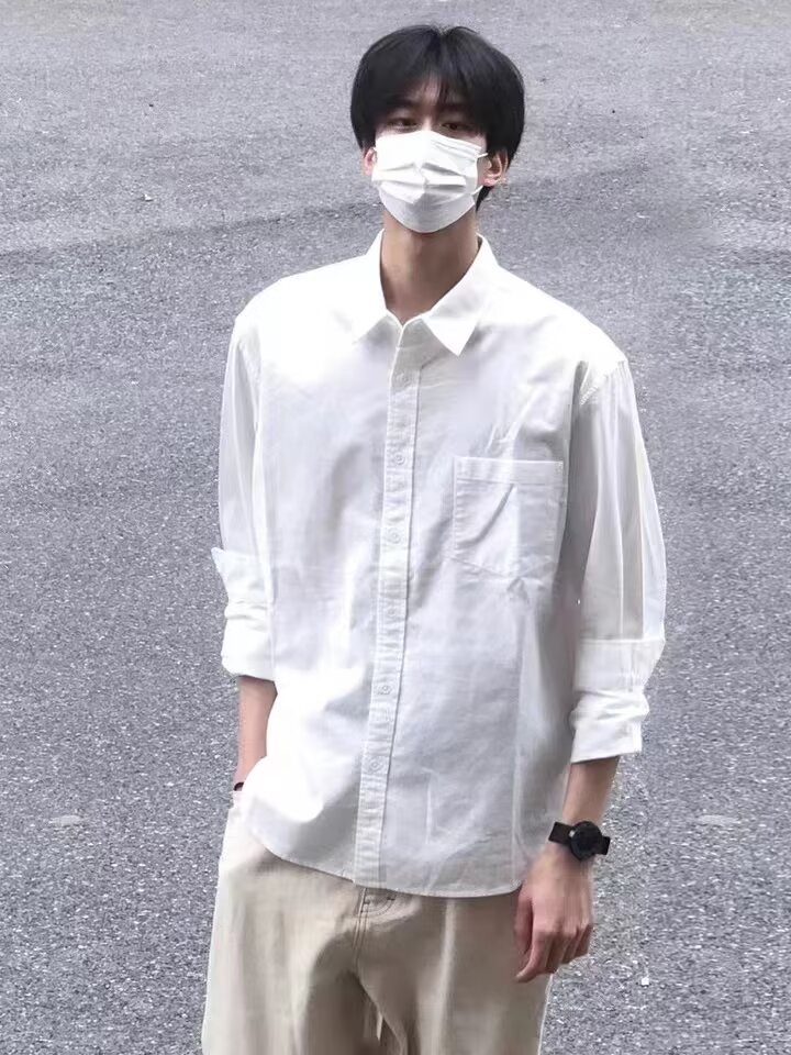 미국식 무거운 작업 형식베이스 느슨한 면 긴팔 흰 셔츠 남자 캐주얼 일본식 유피 잘생긴 셔츠