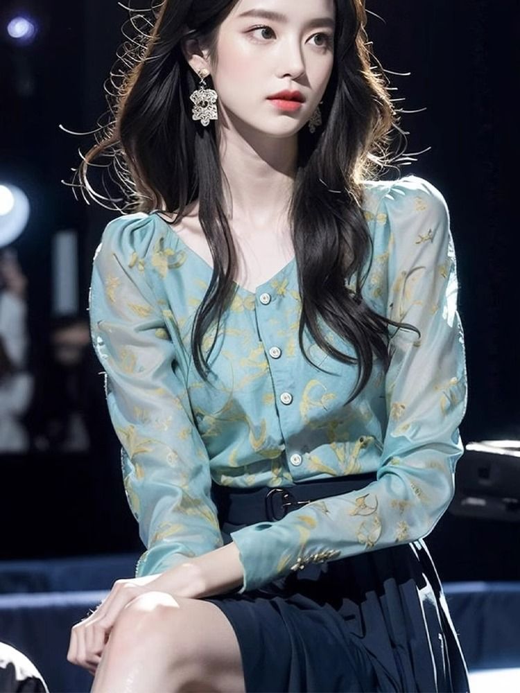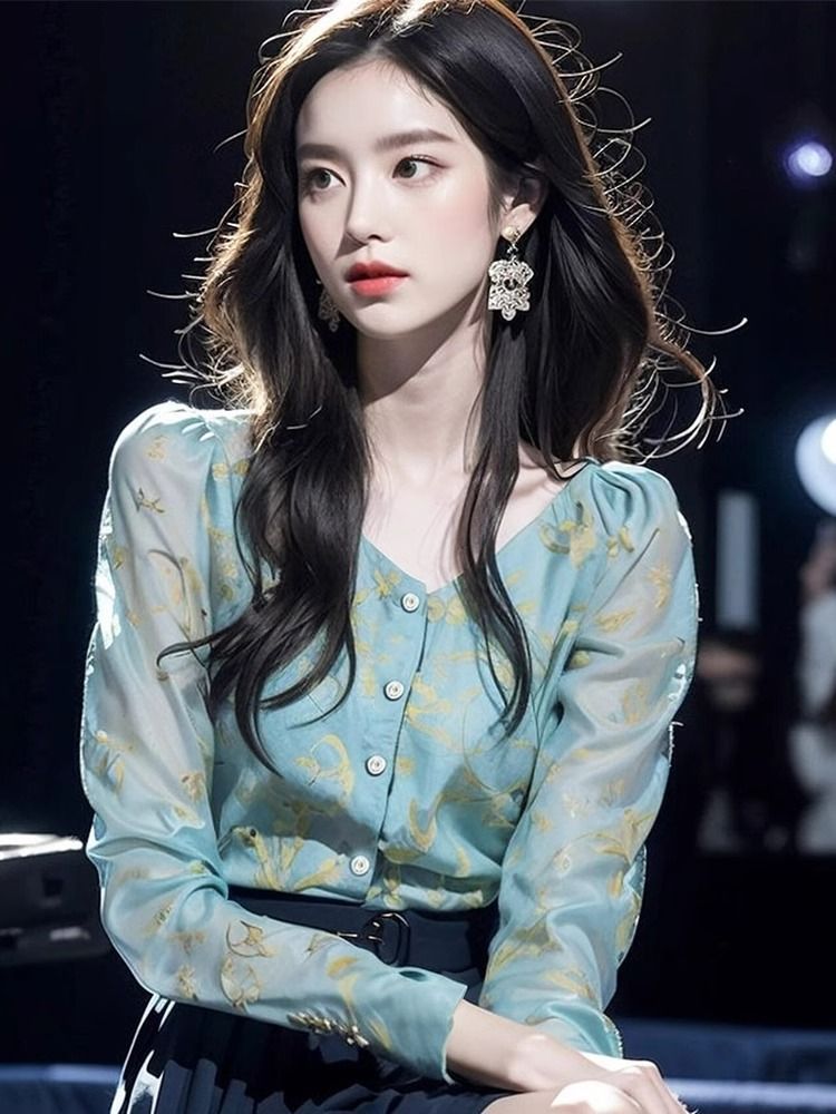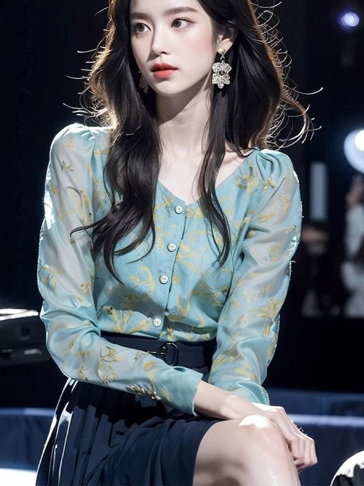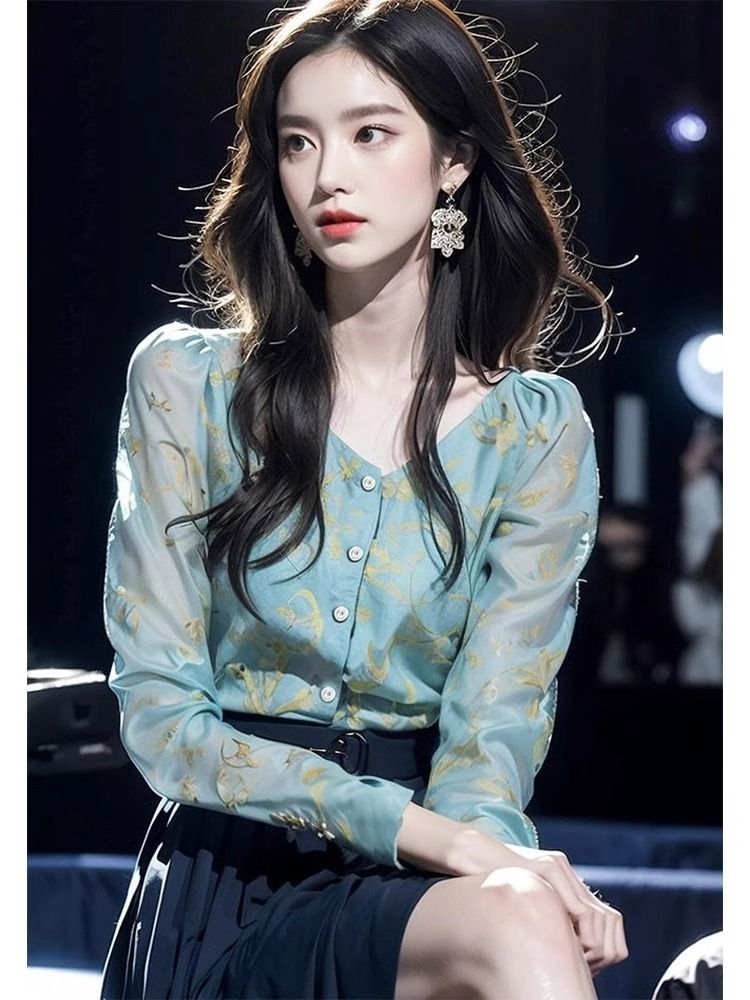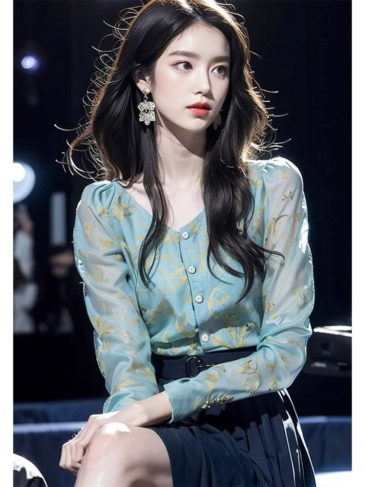 프랑스 통근 긴팔 블루 프린트 셔츠 콜드 스타일 라이트 럭셔리 하이 엔드 틈새 최고 여성 초가을