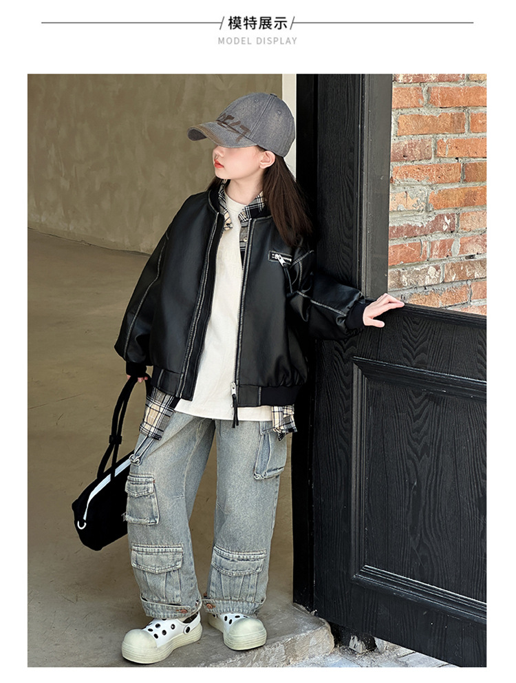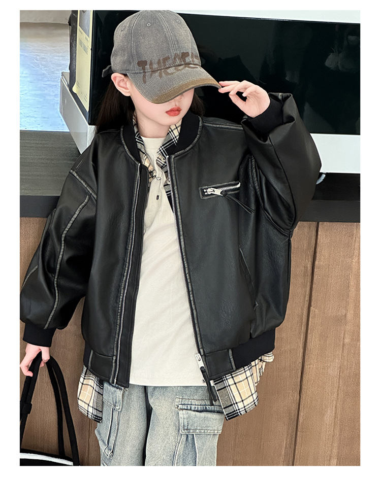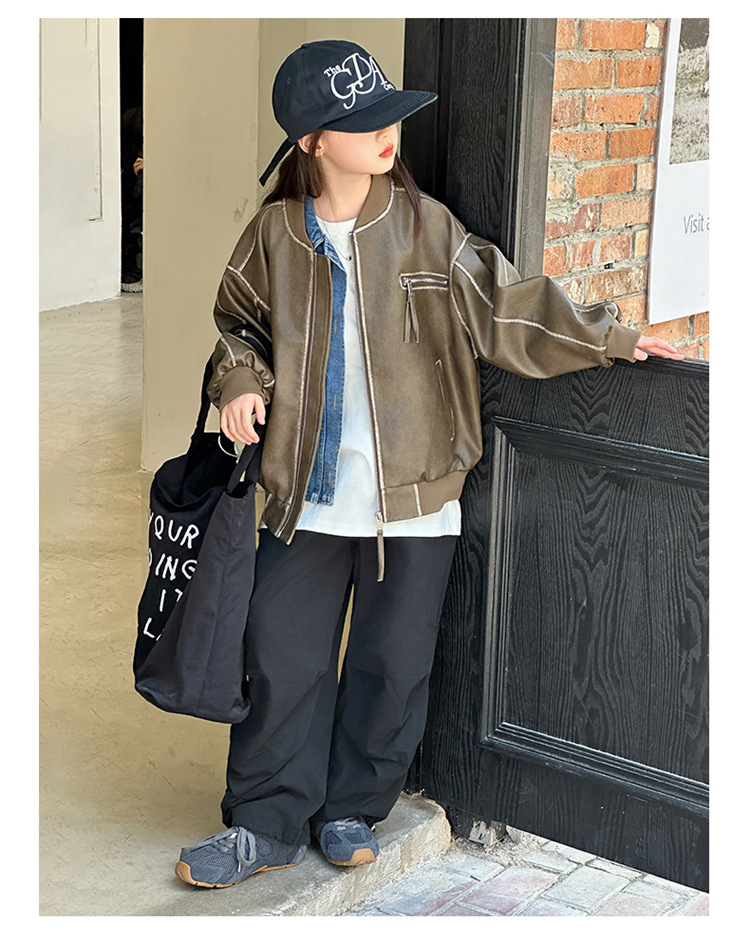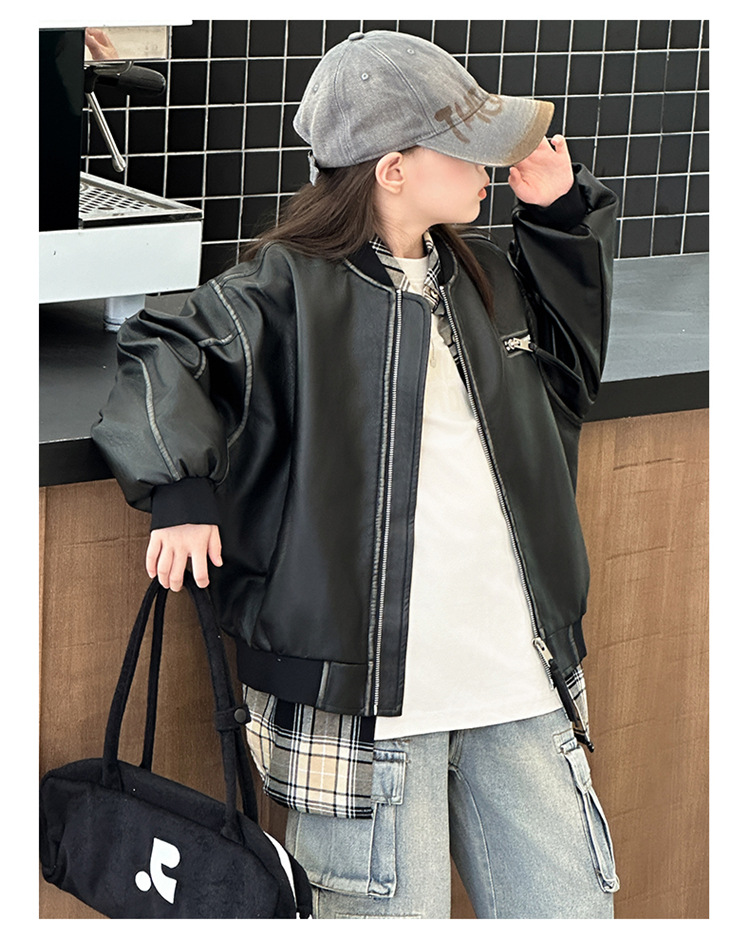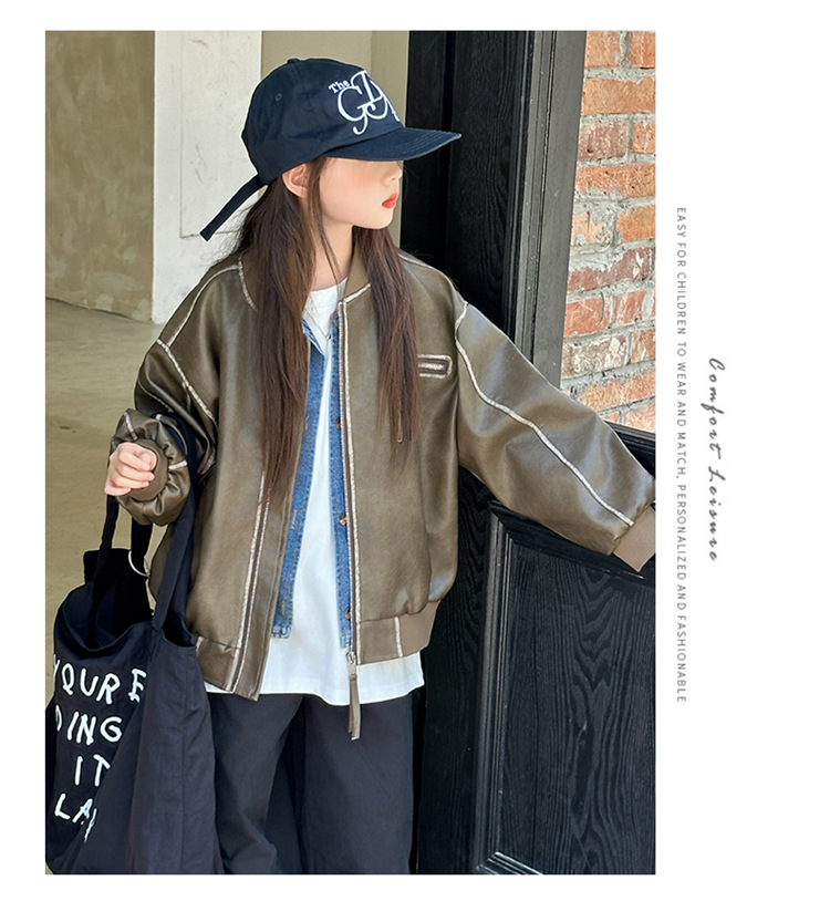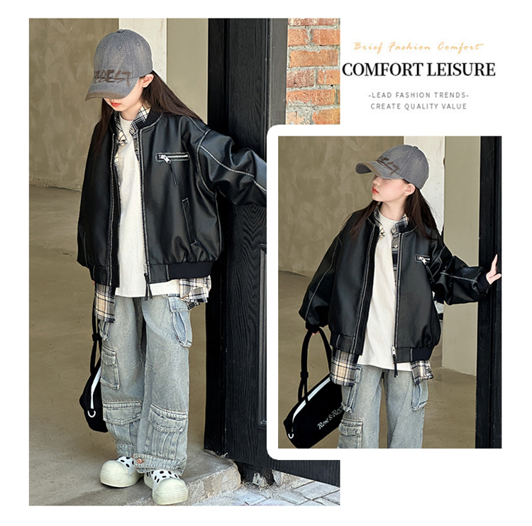 소녀 가죽 자켓 봄과 가을 2024 새로운 어린이 유행 서양식 야구 세트 코트 걸스 빅 키즈 재킷 탑 빈티지