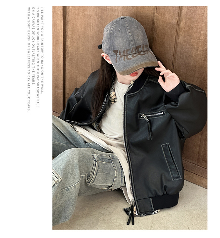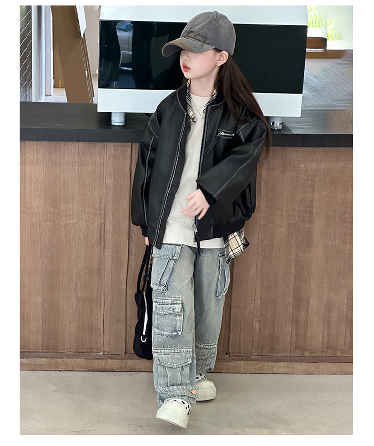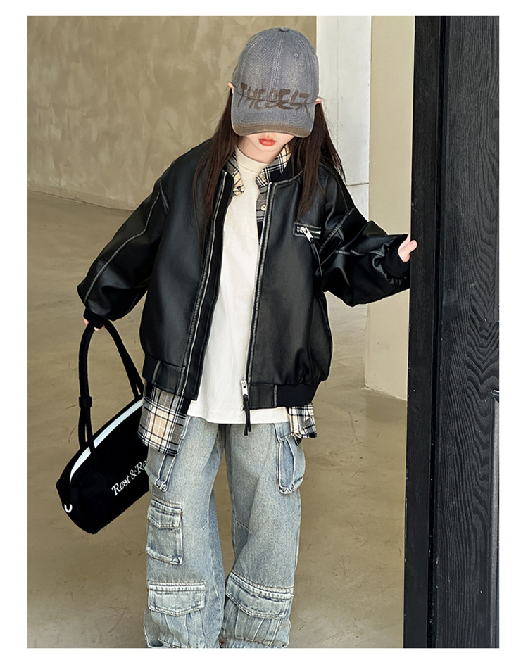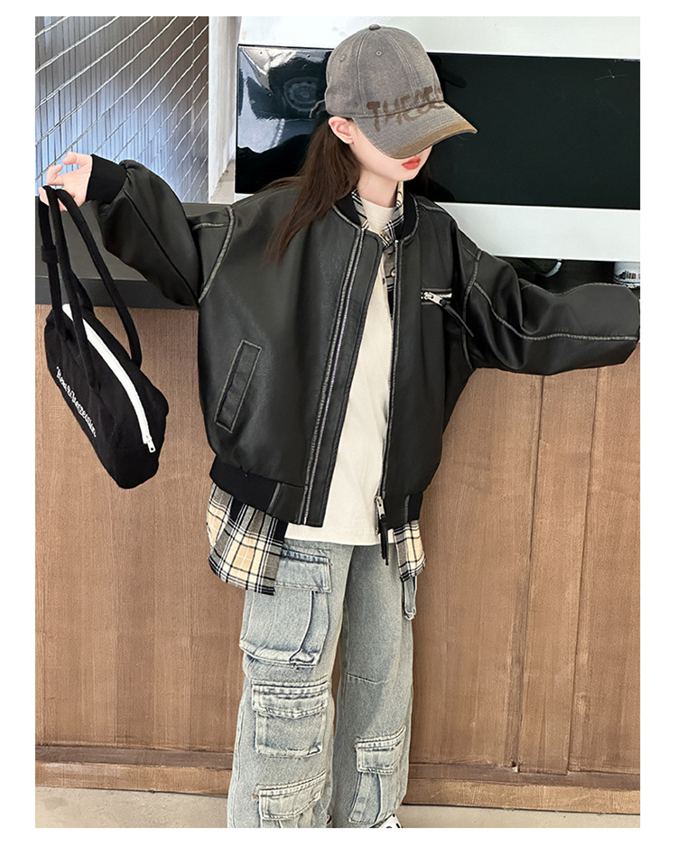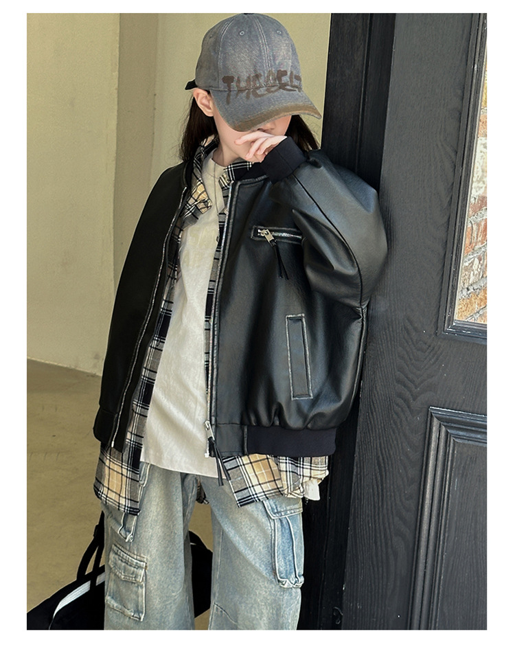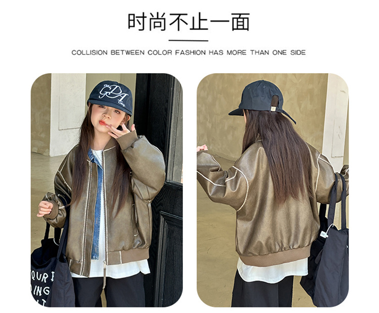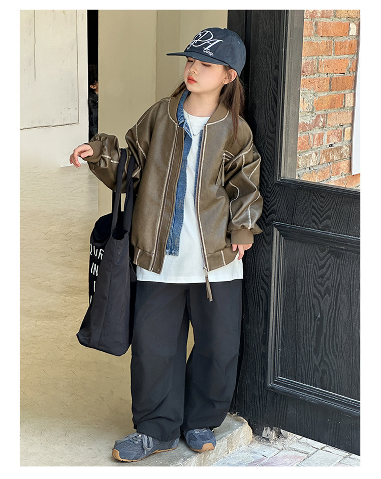 소녀 가죽 자켓 봄과 가을 2024 새로운 어린이 유행 서양식 야구 세트 코트 걸스 빅 키즈 재킷 탑 빈티지