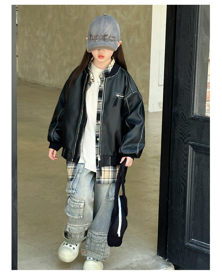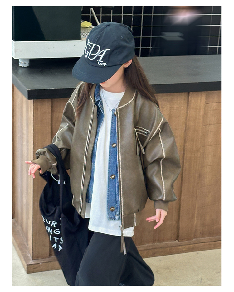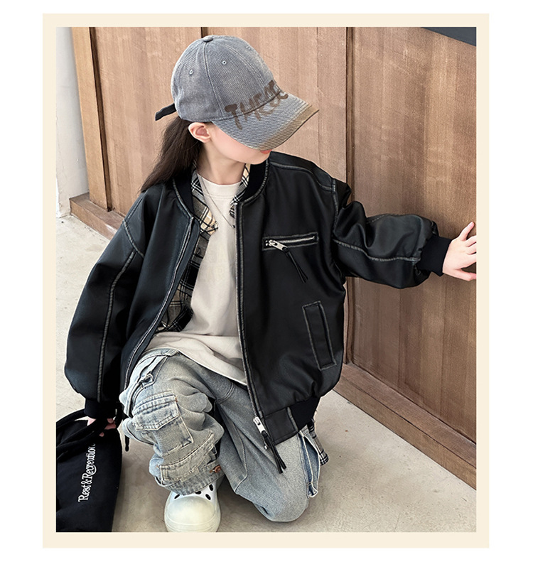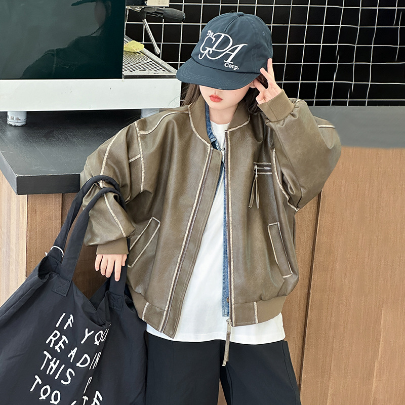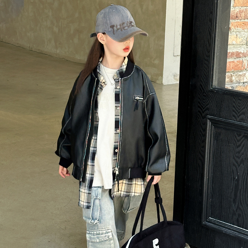 소녀 가죽 자켓 봄과 가을 2024 새로운 어린이 유행 서양식 야구 세트 코트 걸스 빅 키즈 재킷 탑 빈티지스토어 가기