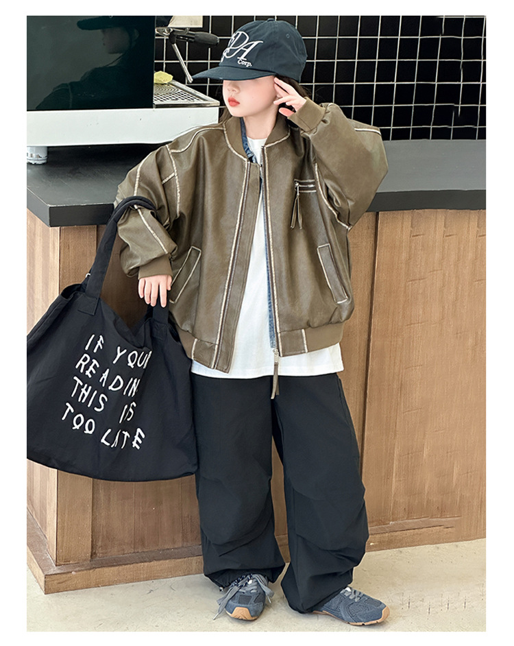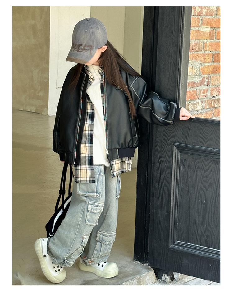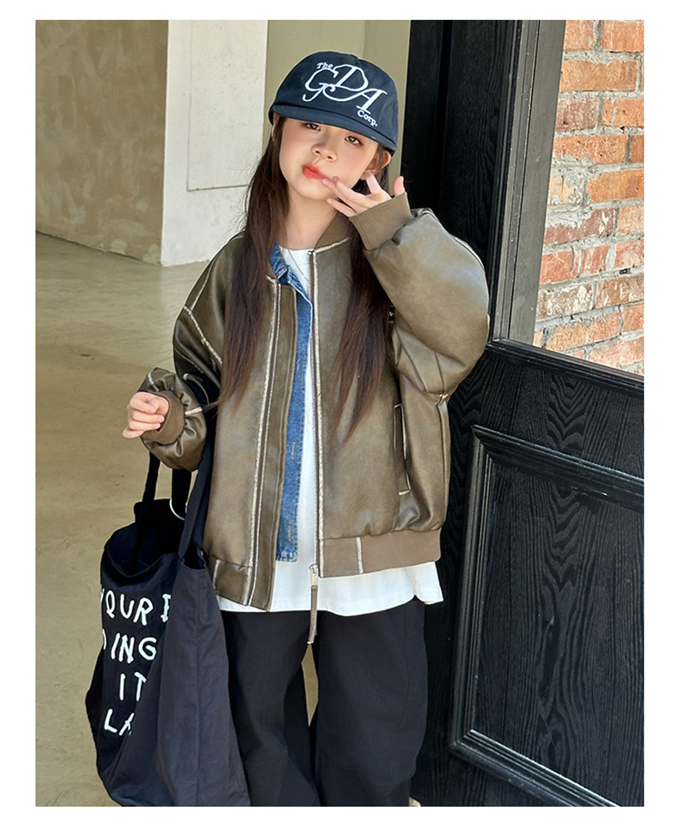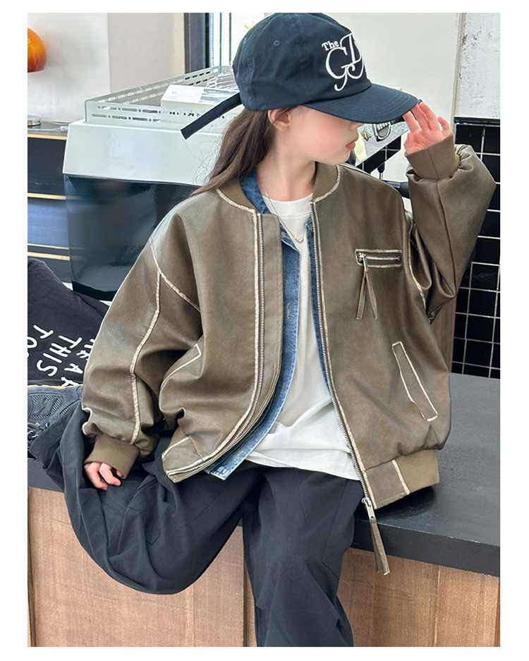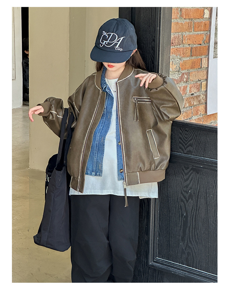 소녀 가죽 자켓 봄과 가을 2024 새로운 어린이 유행 서양식 야구 세트 코트 걸스 빅 키즈 재킷 탑 빈티지스토어 가기