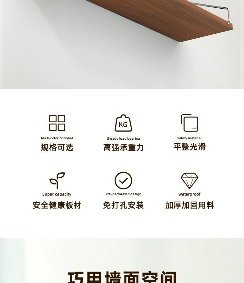 벽 선반 펀치없는 벽 매달린 단철 거실 TV 벽 장식 침실 벽 책장 한 단어 파티션