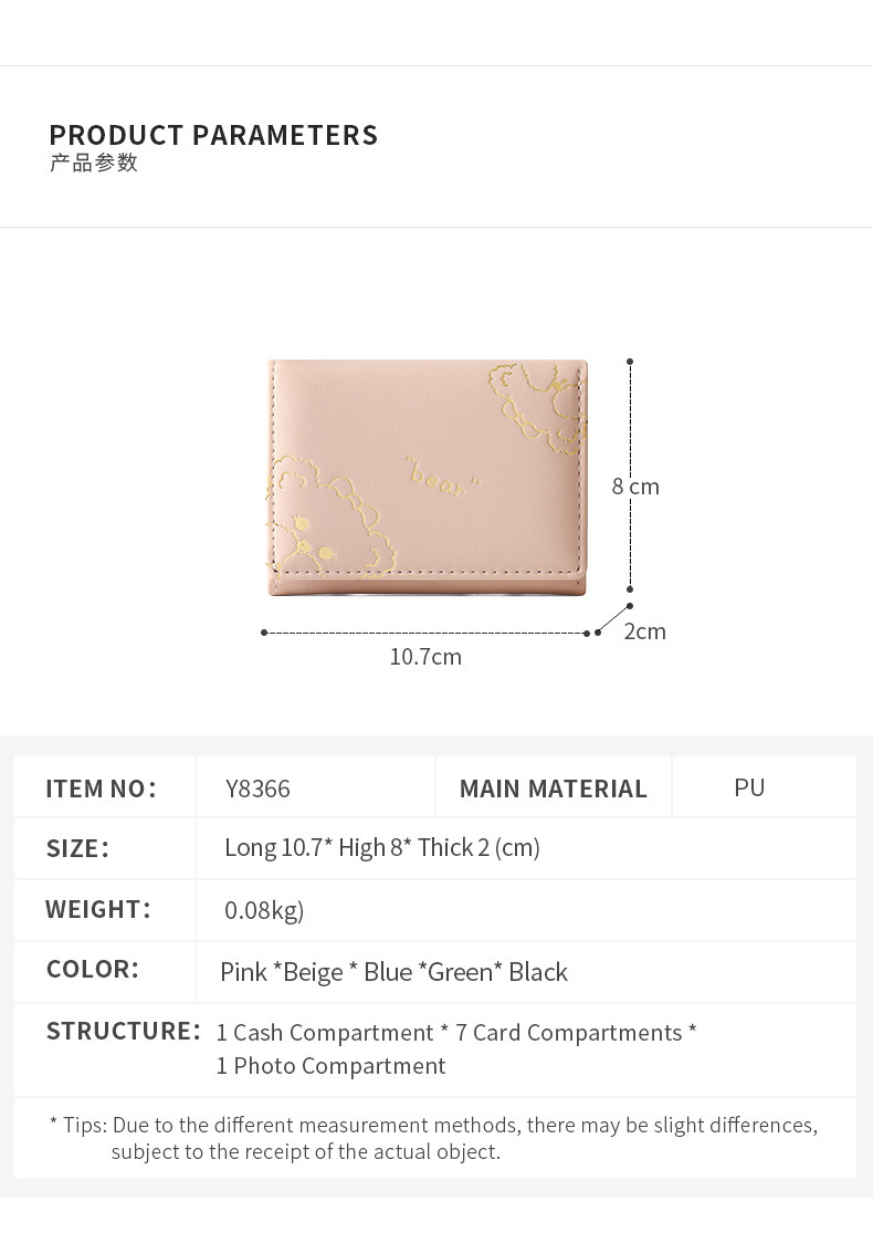 새로운 패션 짧은 접히는 작은 지갑 여성의 작은 신선한 한국 스타일 학생 귀여운 만화 지갑 얇은