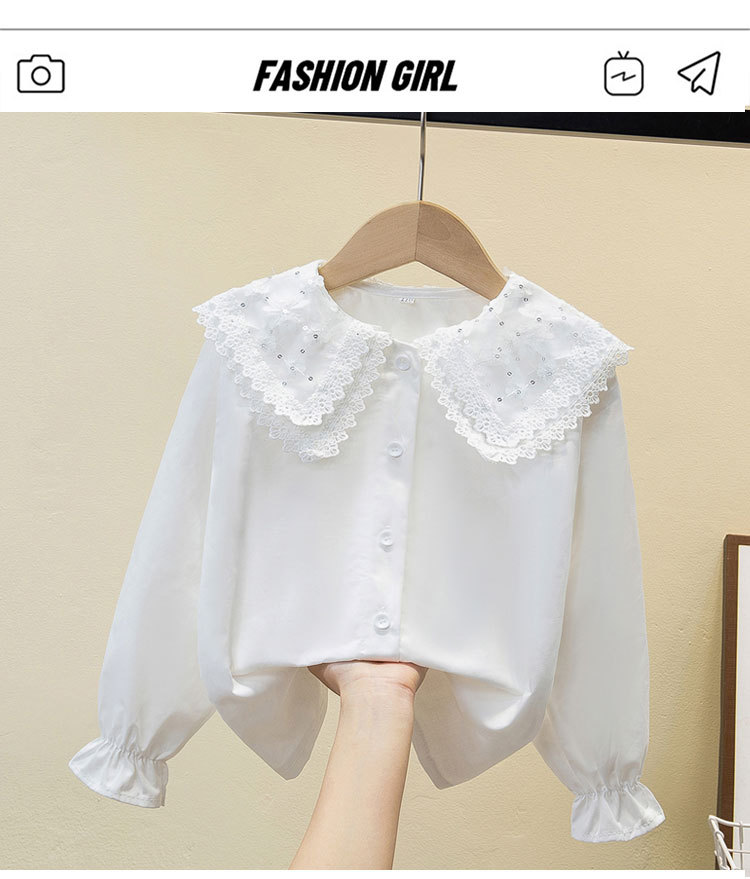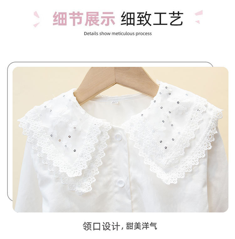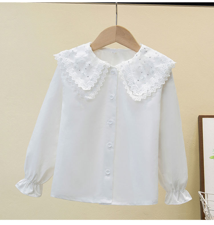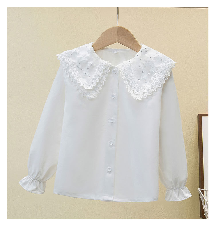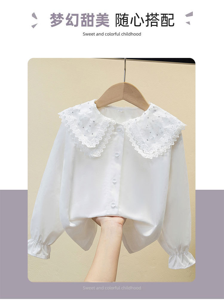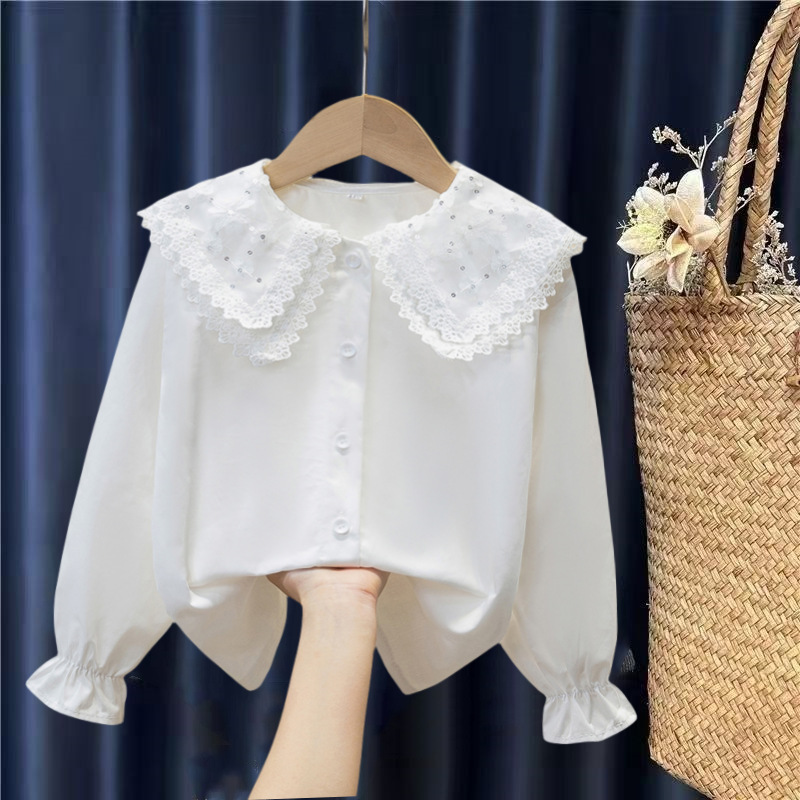 여자 셔츠 2025 봄 새로운 스타일 중대형 어린이 봄, 가을 스타일 순수 코튼 스타일 셔츠 인형 칼라 셔츠 대외 무역