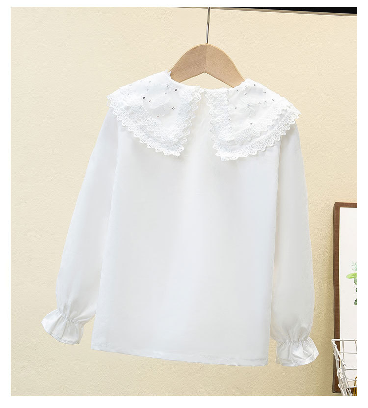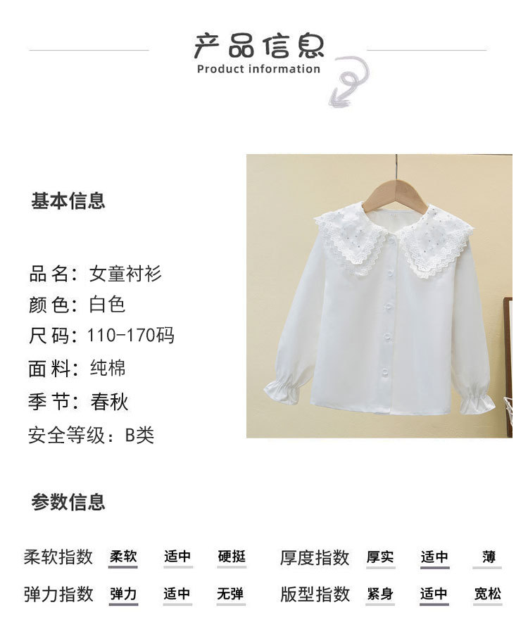 여자 셔츠 2025 봄 새로운 스타일 중대형 어린이 봄, 가을 스타일 순수 코튼 스타일 셔츠 인형 칼라 셔츠 대외 무역스토어 가기