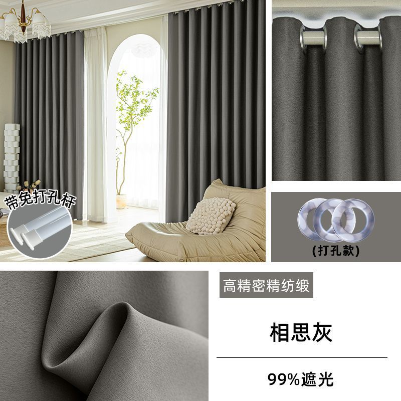 펀치없는 풀 쉐이드 천 커튼은 텔레스코픽 로드를 보내는 간단한 설치 침실 거실 베이 창 파티션 도어 커튼 세트스토어 가기