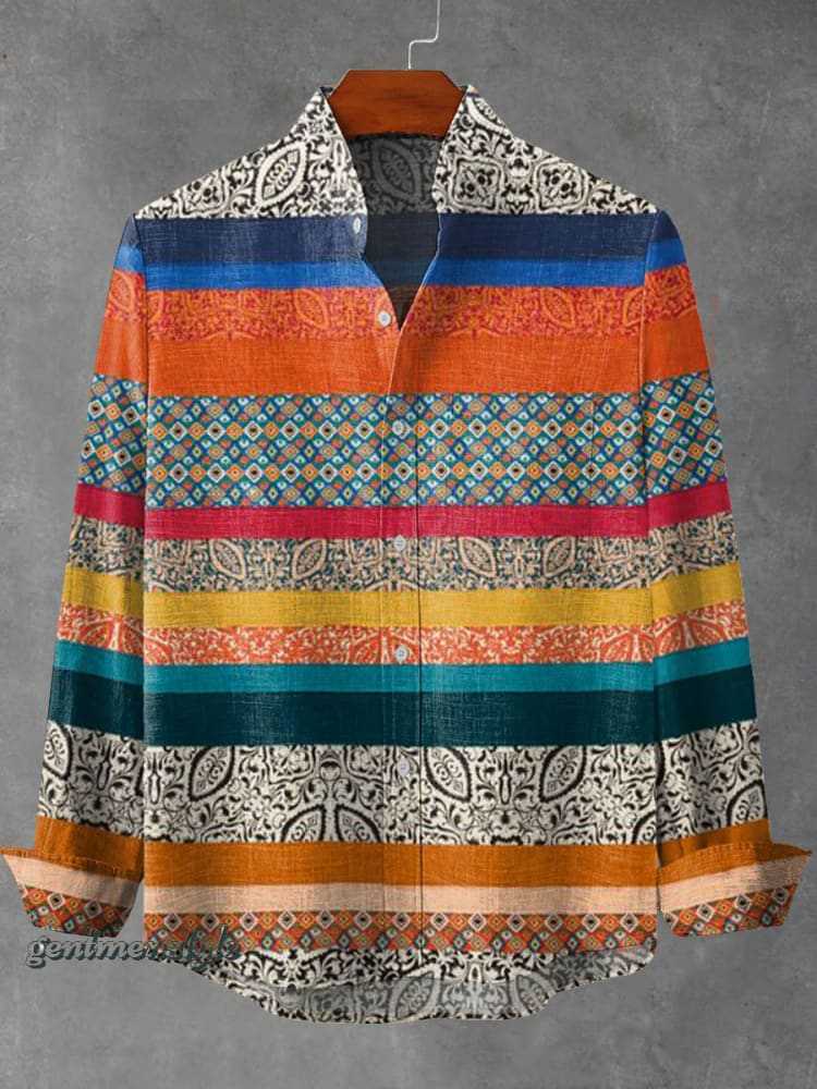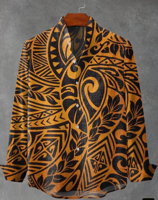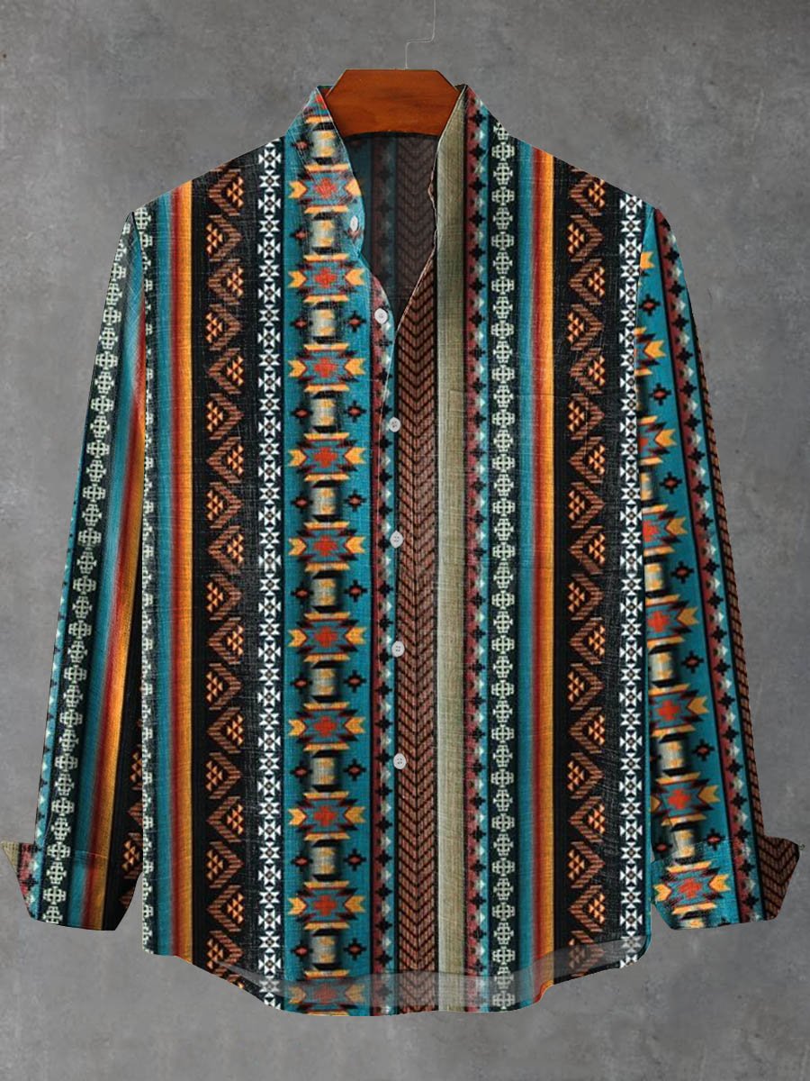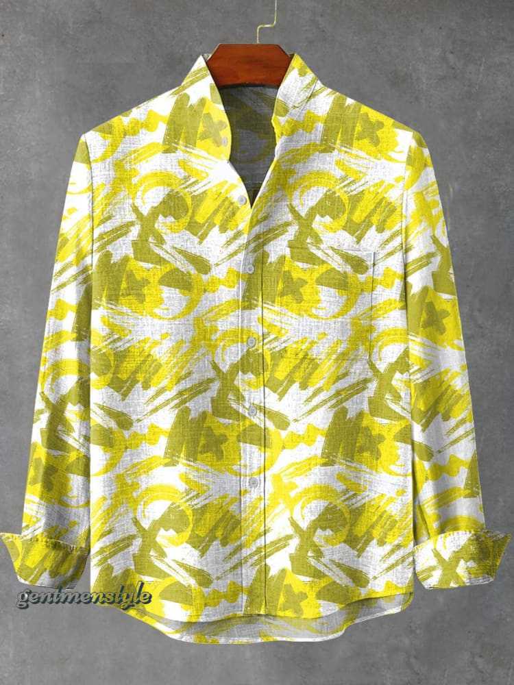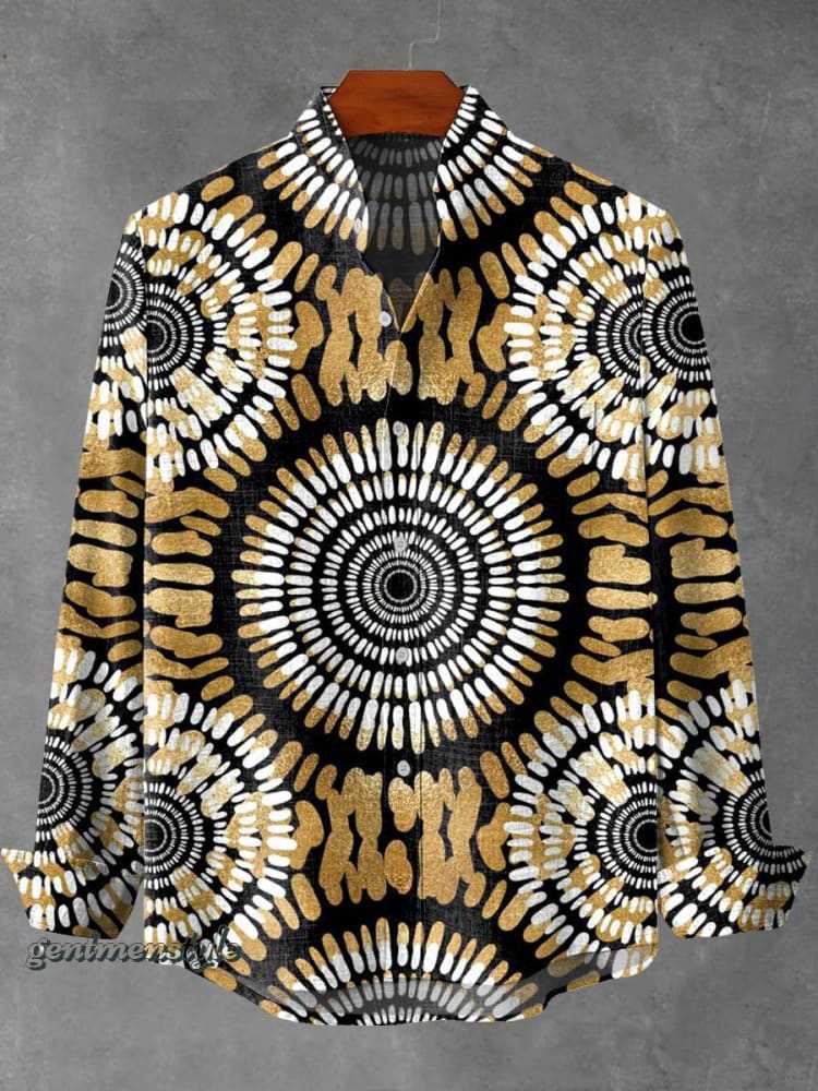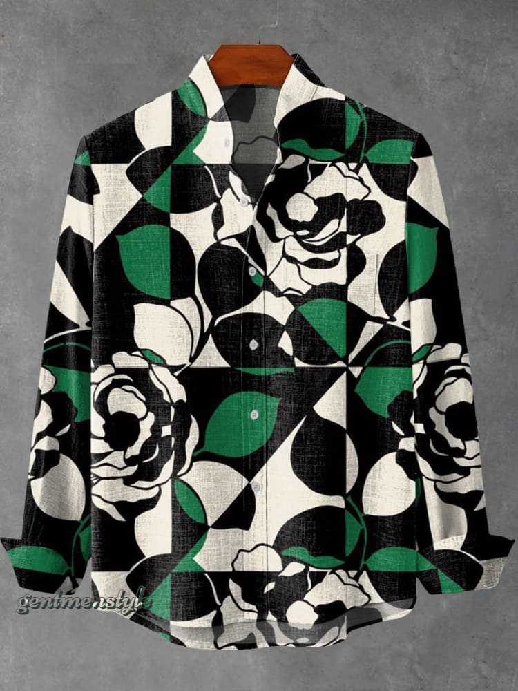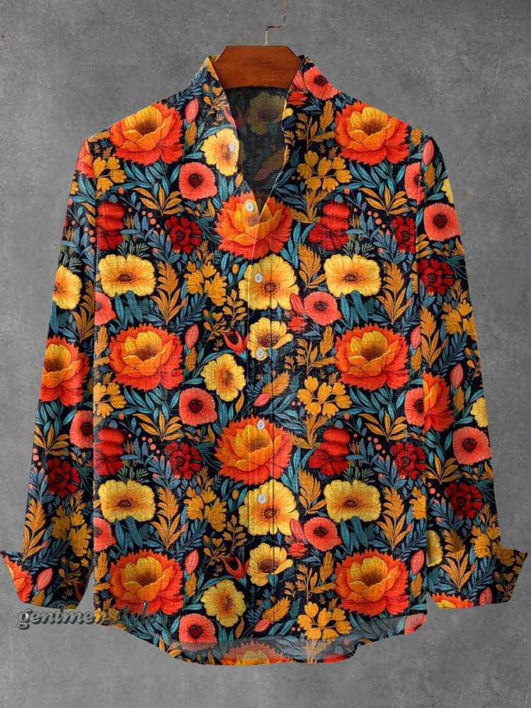 국경 봄과 가을 남성 스탠드 칼라 긴 소매 셔츠 체크 무늬 꽃 버섯 3D 인쇄 동남아시아 스타일 신사 패션