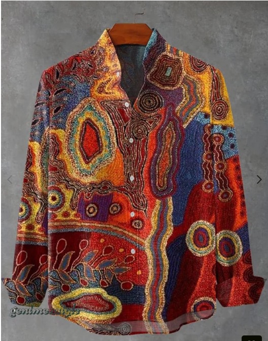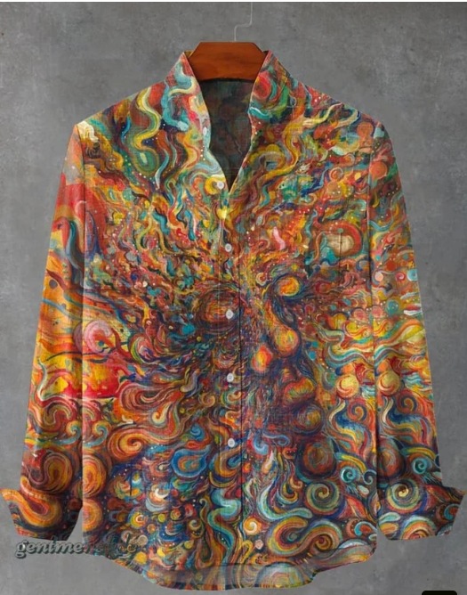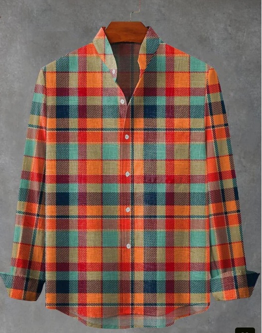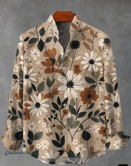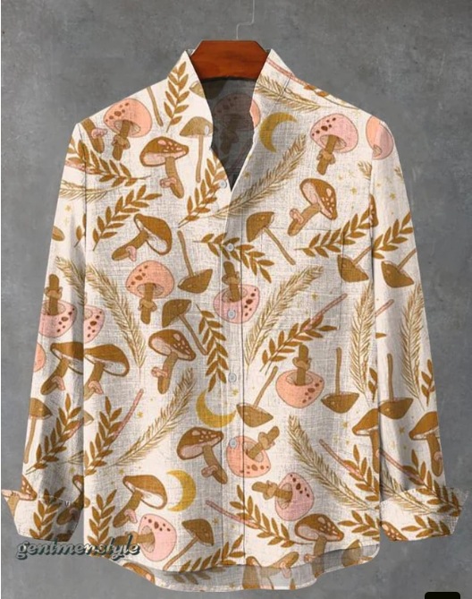 국경 봄과 가을 남성 스탠드 칼라 긴 소매 셔츠 체크 무늬 꽃 버섯 3D 인쇄 동남아시아 스타일 신사 패션스토어 가기