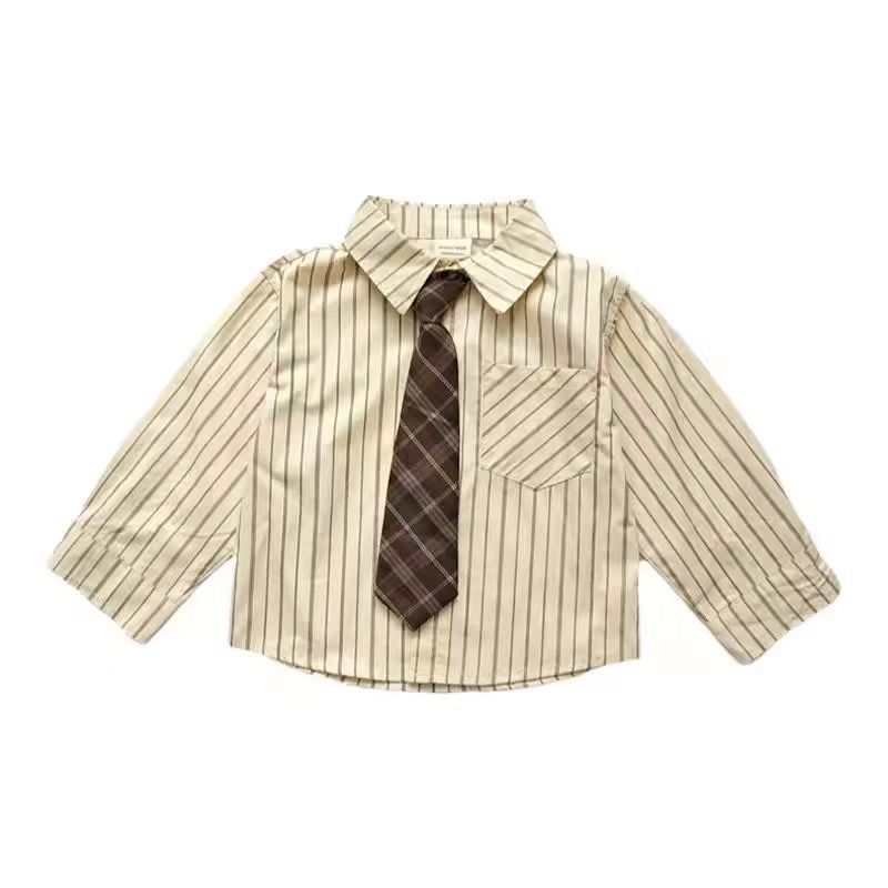 어린이 긴 소매 셔츠 아카데미 스타일 2024 봄 한국 스타일 패션 줄무늬 서양 스타일 캐주얼 넥타이 셔츠