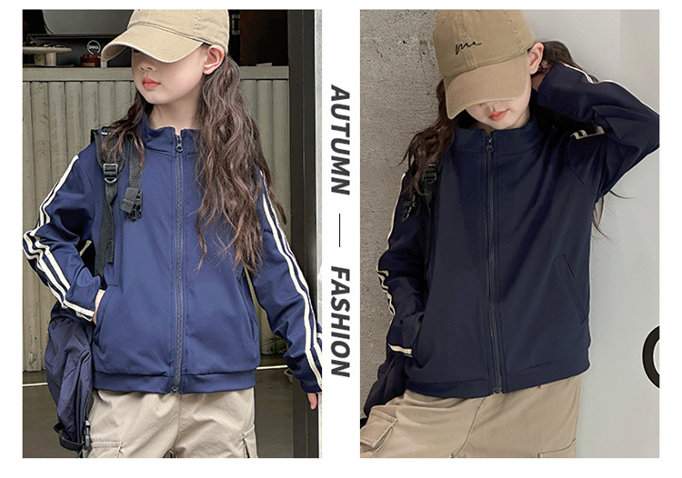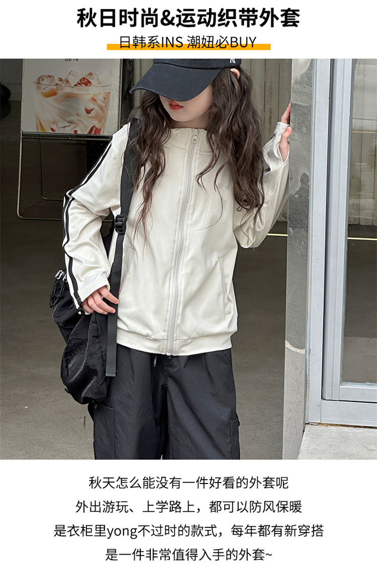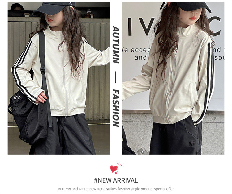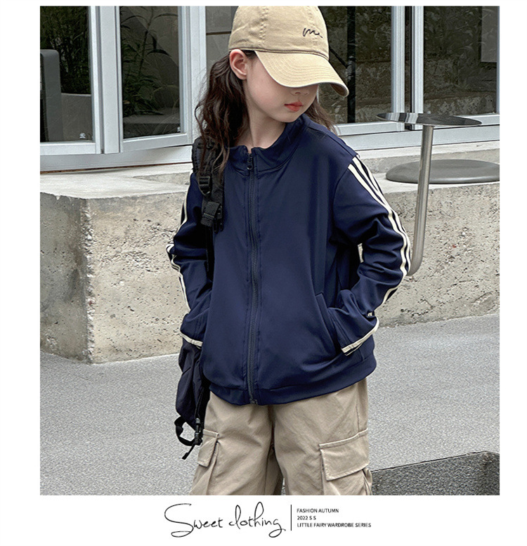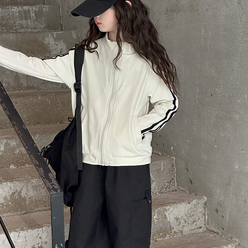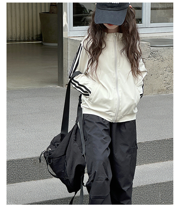 여자 아메리칸 스타일 스트립 스탠드 칼라 스웨트 셔츠 가디건 가을 새로운 스타일 유행 어린 소녀 유행 짧은 스포츠 스타일 재킷