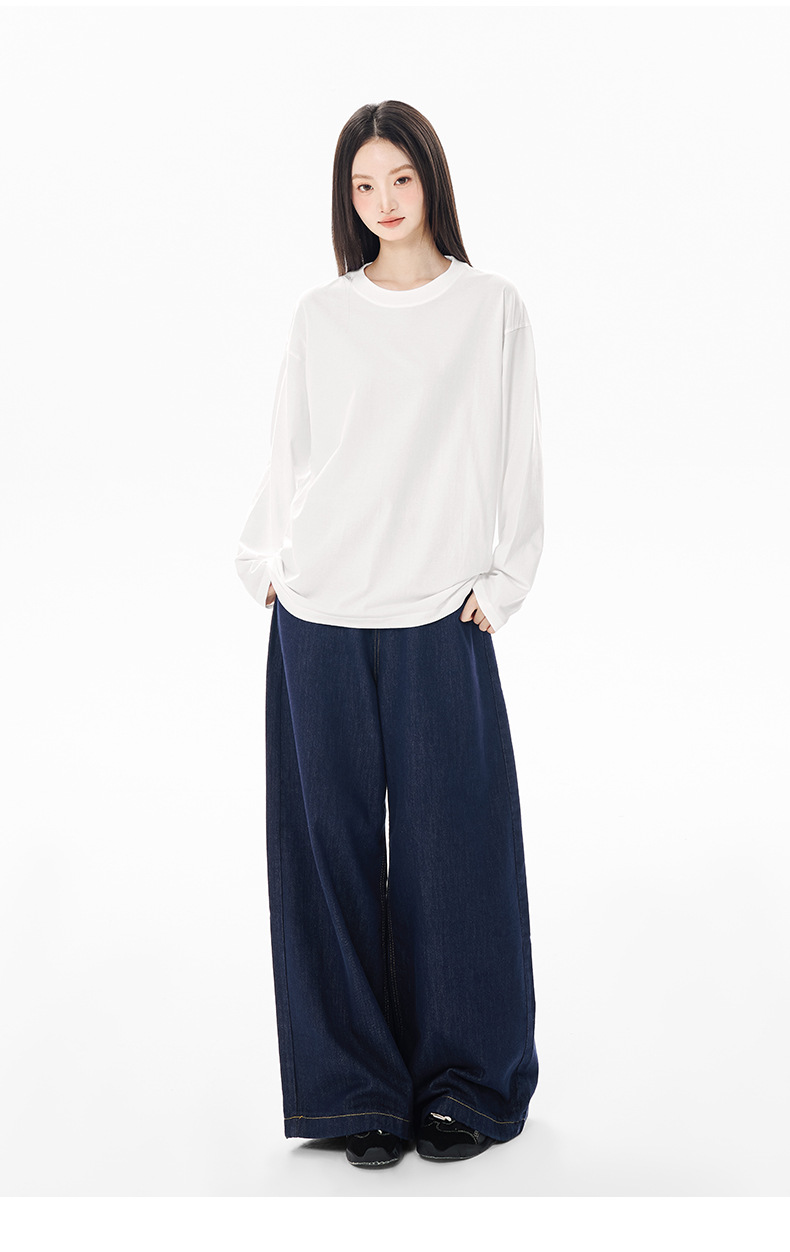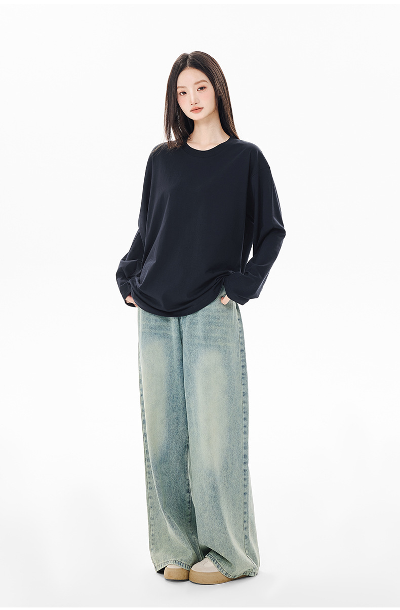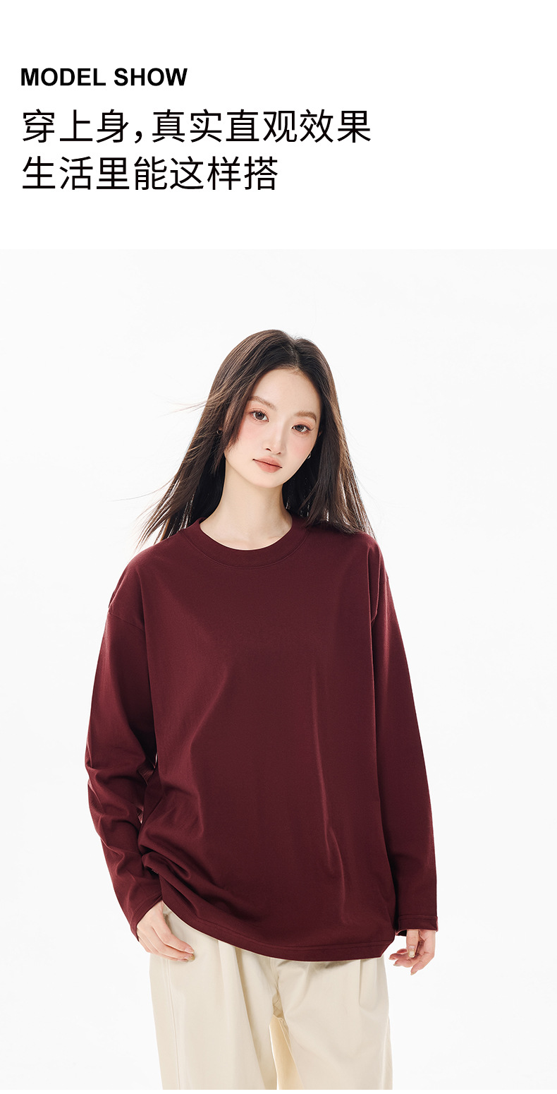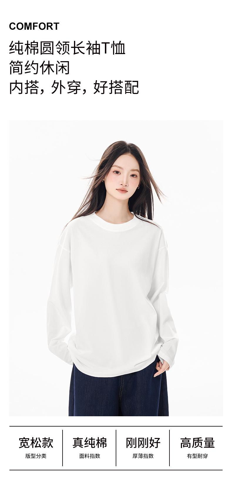새로운 단색면 긴 소매 바닥 셔츠 여성용 헤비급 230g 느슨한 여성 캐주얼 내부와 외부 착용 티셔츠 재킷스토어 가기