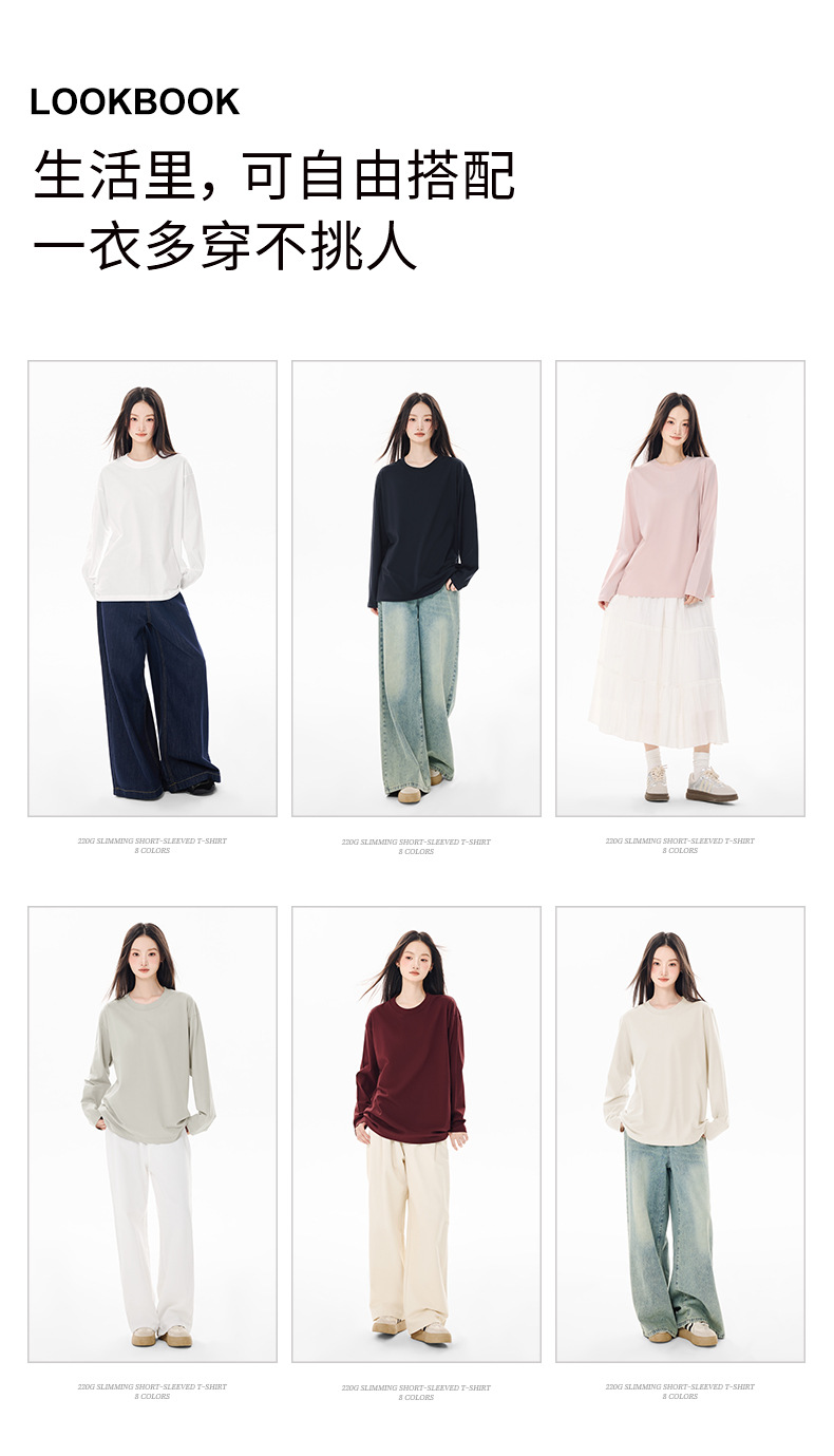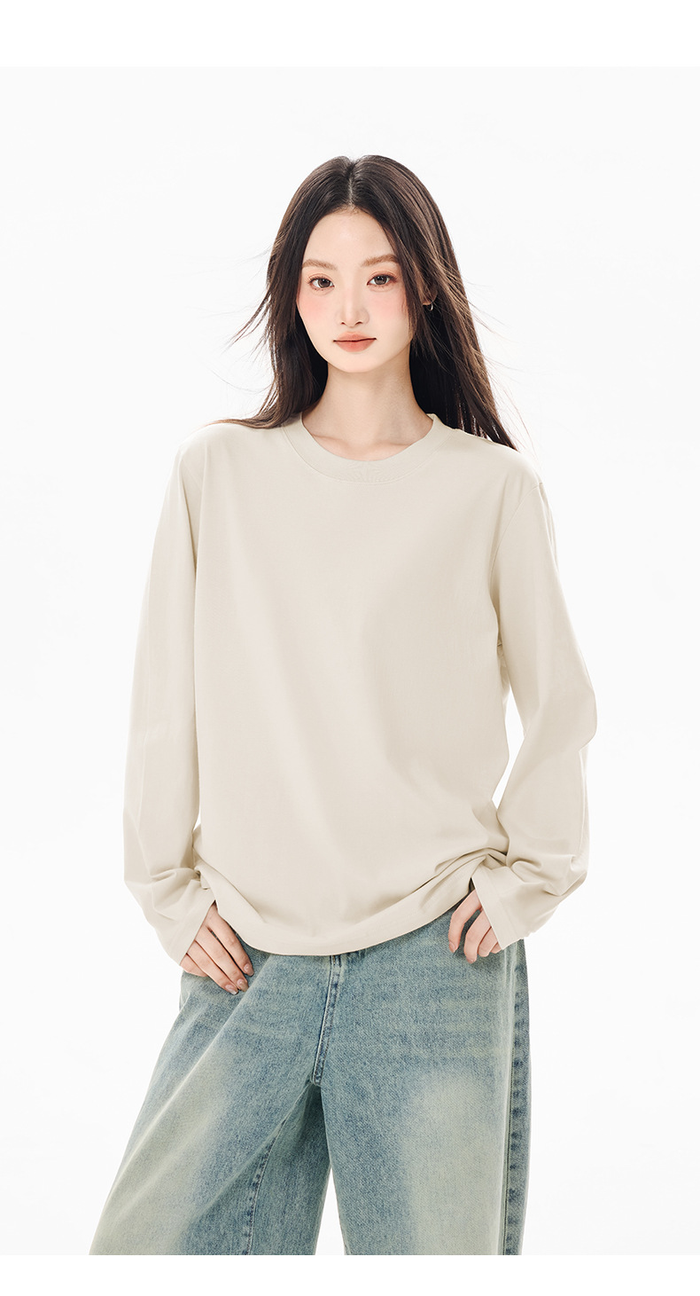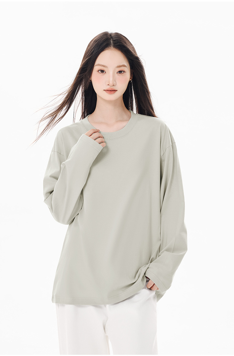새로운 단색면 긴 소매 바닥 셔츠 여성용 헤비급 230g 느슨한 여성 캐주얼 내부와 외부 착용 티셔츠 재킷