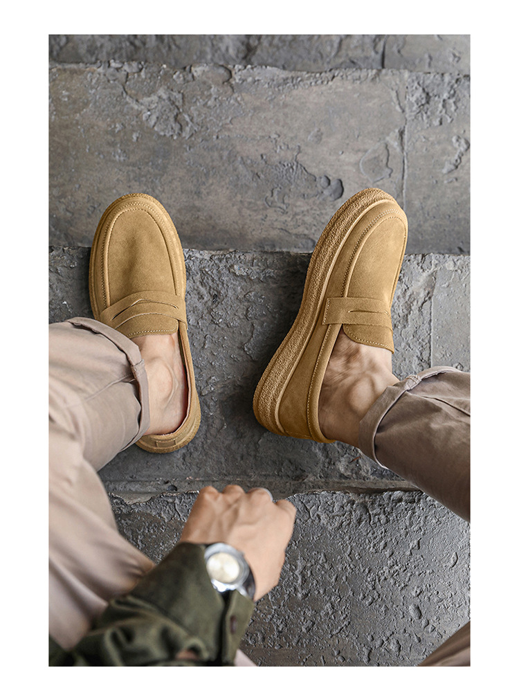 Doudou 신발 남자 2025 새로운 여름 부드러운 단독 정품 가죽 레트로 스웨이드 신발 남자 캐주얼 슬립 온 로퍼 유행 신발스토어 가기