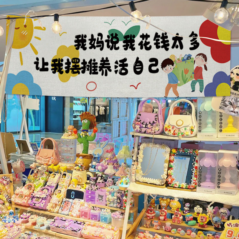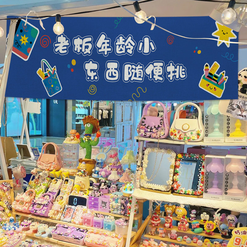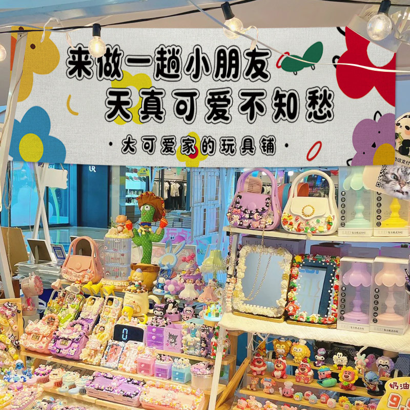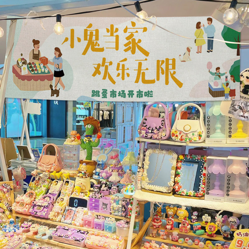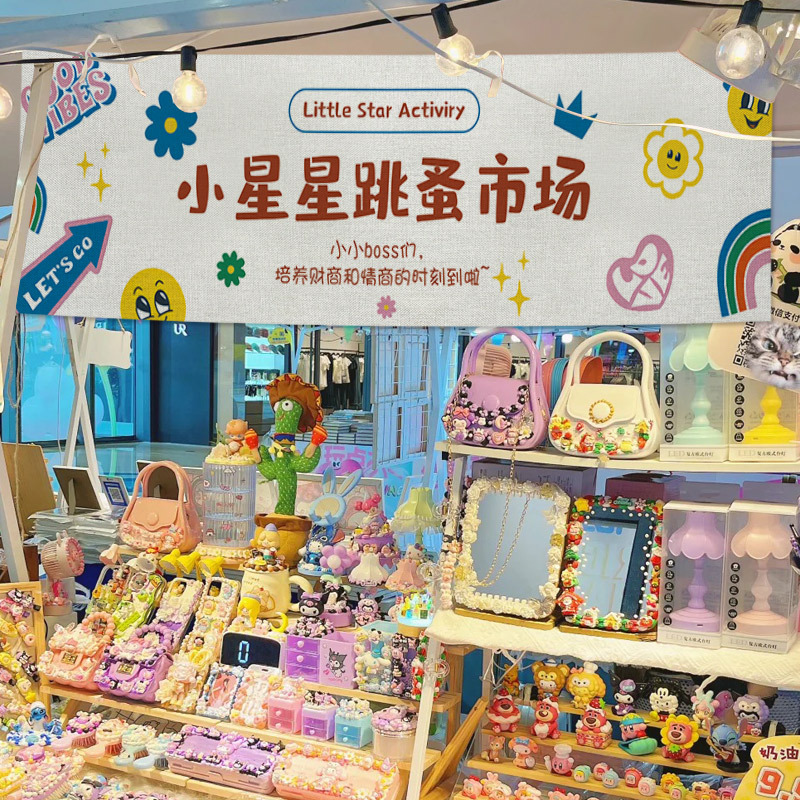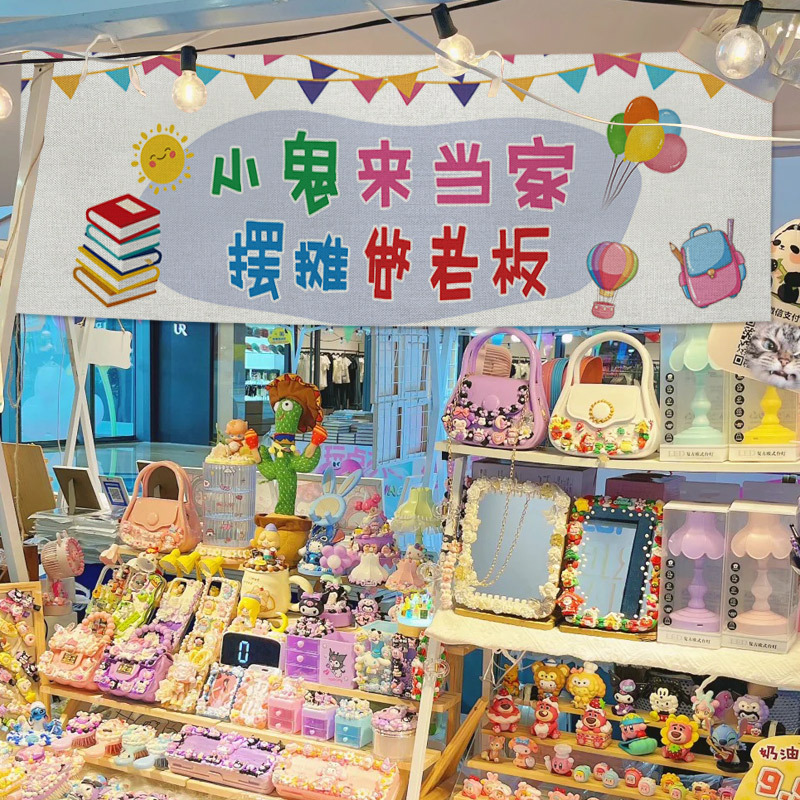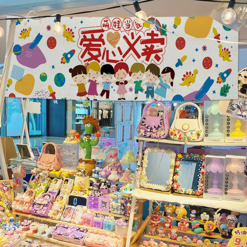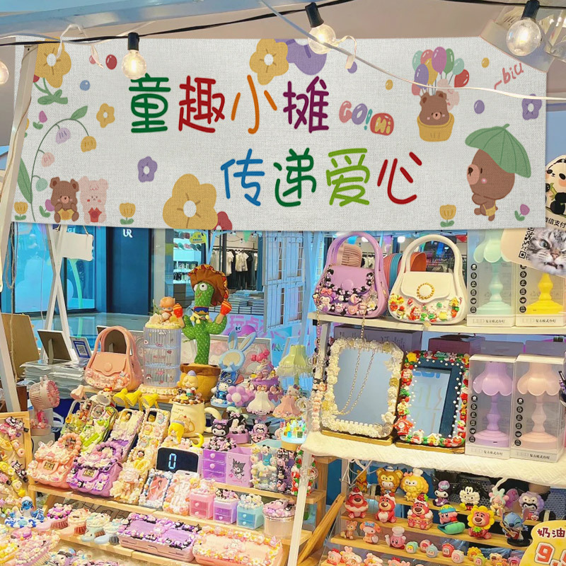 트렁크 스톨 교수형 거리 시장 배너 레이아웃, 야시장 어린이 바자르 트롤리 광고 천스토어 가기