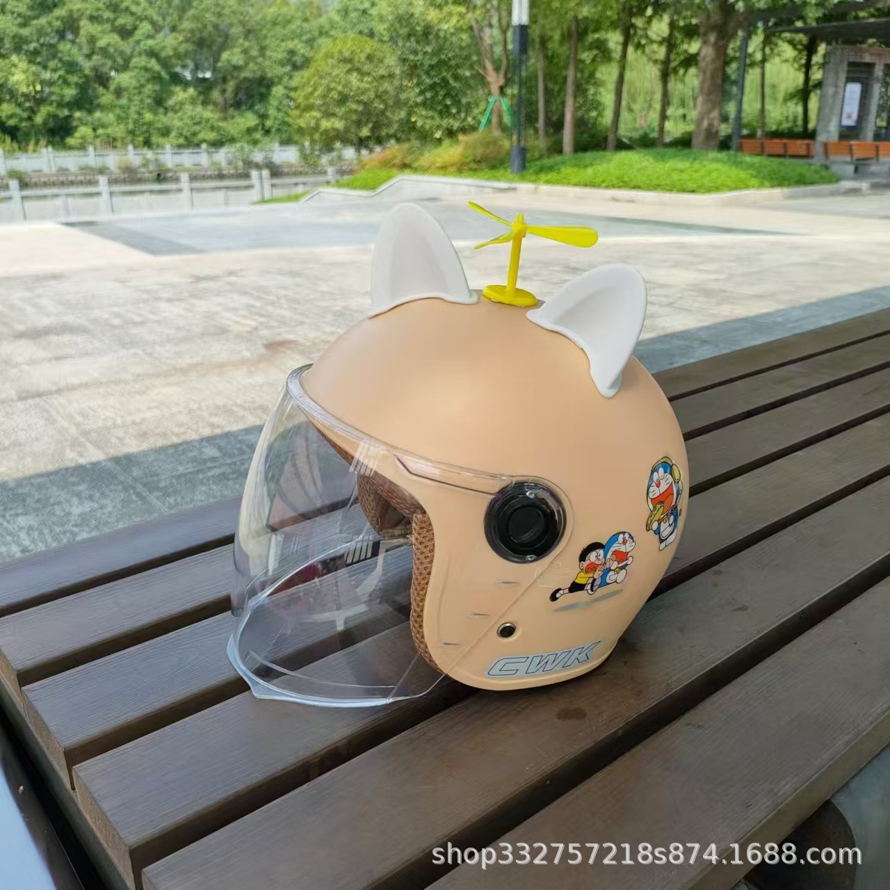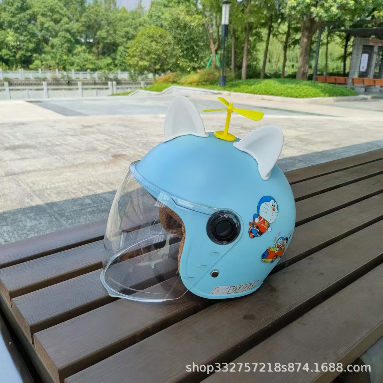 3C 인증 어린이 전기 자동차 헬멧 소년과 소녀 일반 겨울 차가운 따뜻한 만화 귀여운 반 헬멧 안전 헬멧