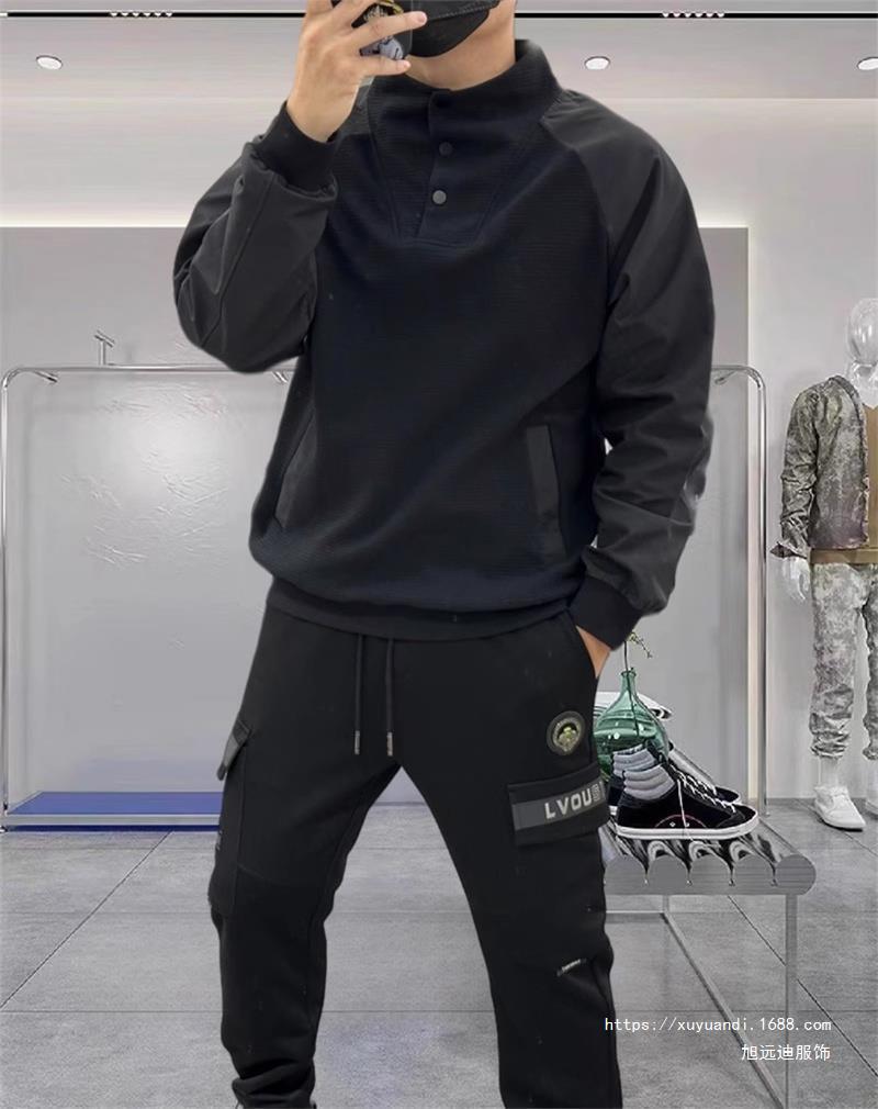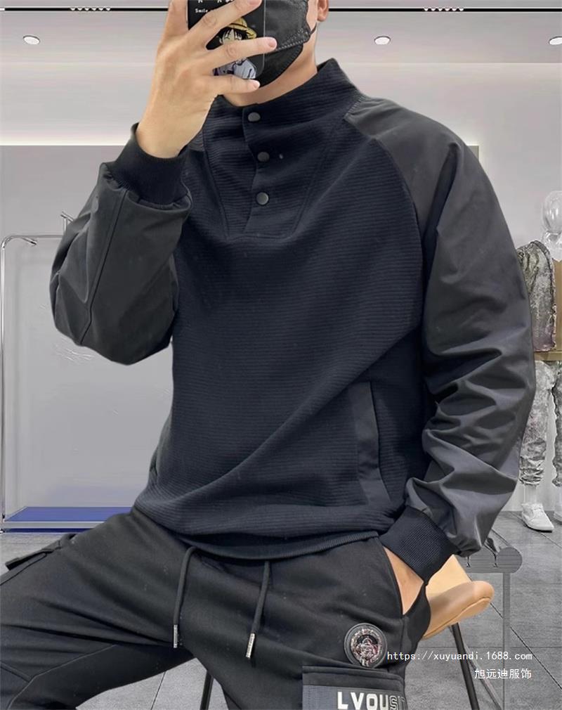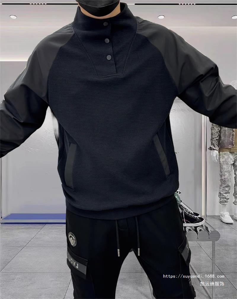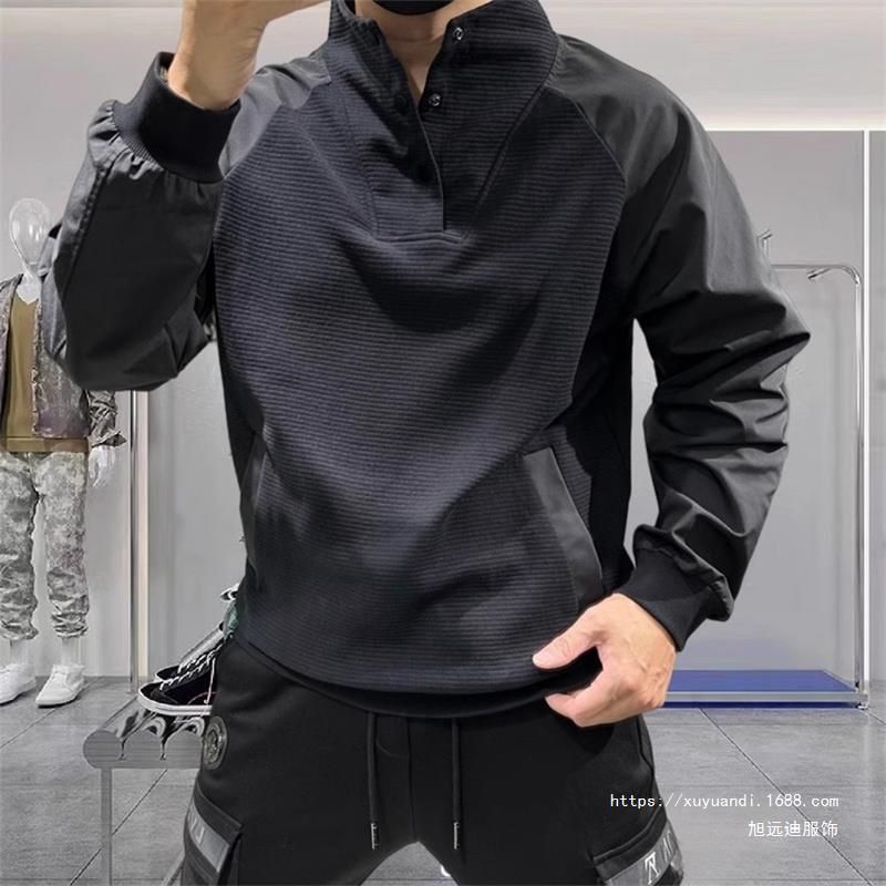 2024 봄 가을 새로운 스티칭 스탠드 칼라 스웨터 남성 캐주얼 패션 브랜드 스티칭 간단한 느슨한 코트 탑스토어 가기