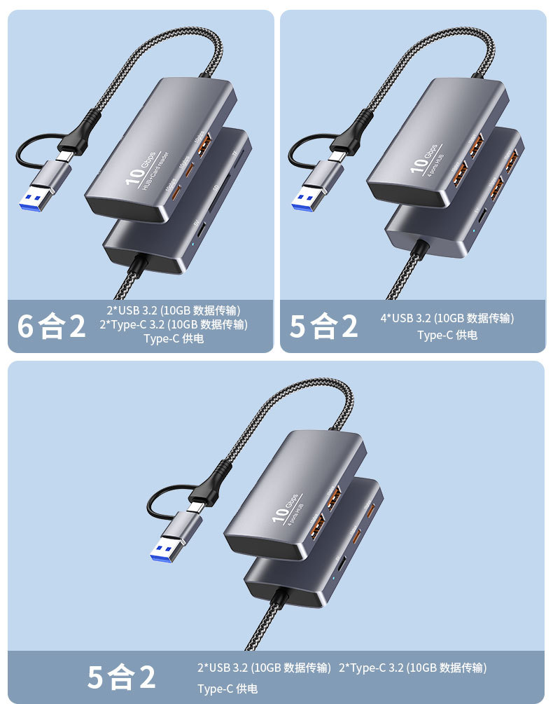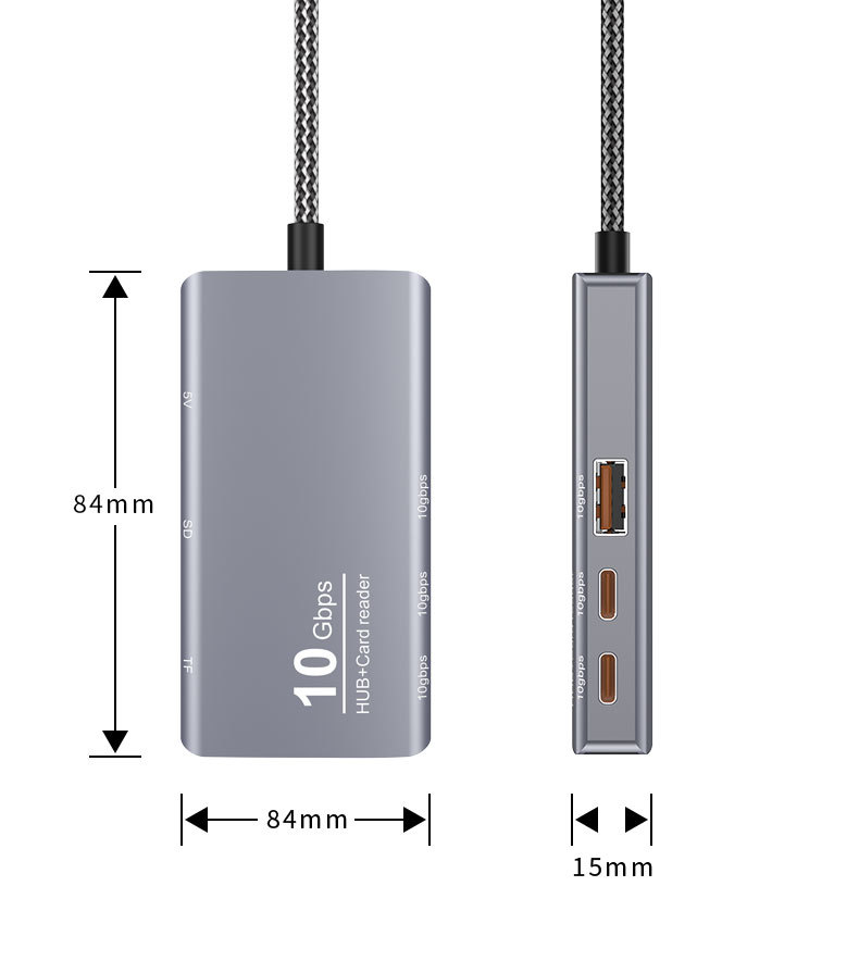 10G 고속 도킹 스테이션 USB3.2Gen2type-cSDTF 다기능 HUB 6 대 1 허브 카드 리더