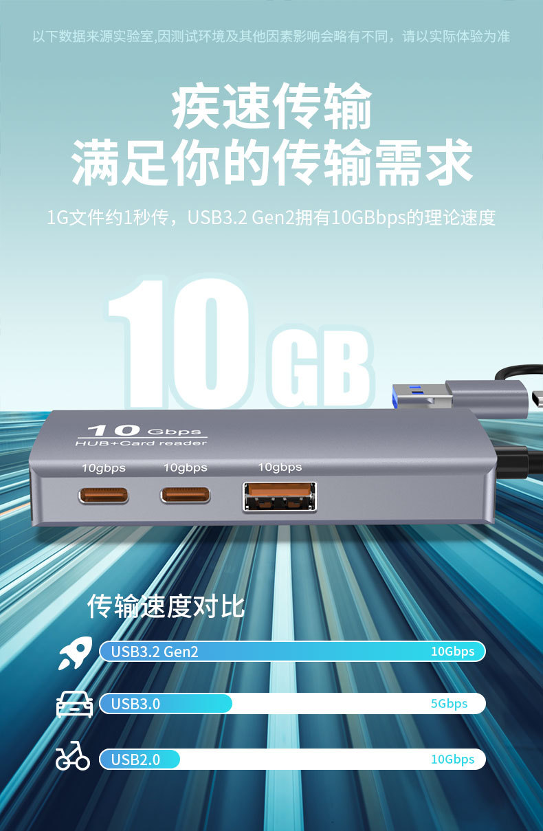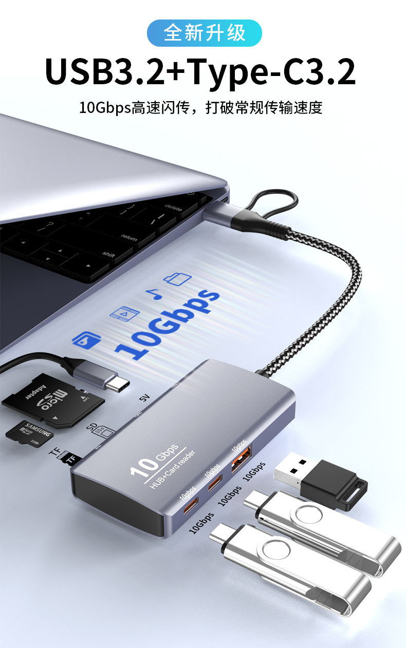 10G 고속 도킹 스테이션 USB3.2Gen2type-cSDTF 다기능 HUB 6 대 1 허브 카드 리더스토어 가기