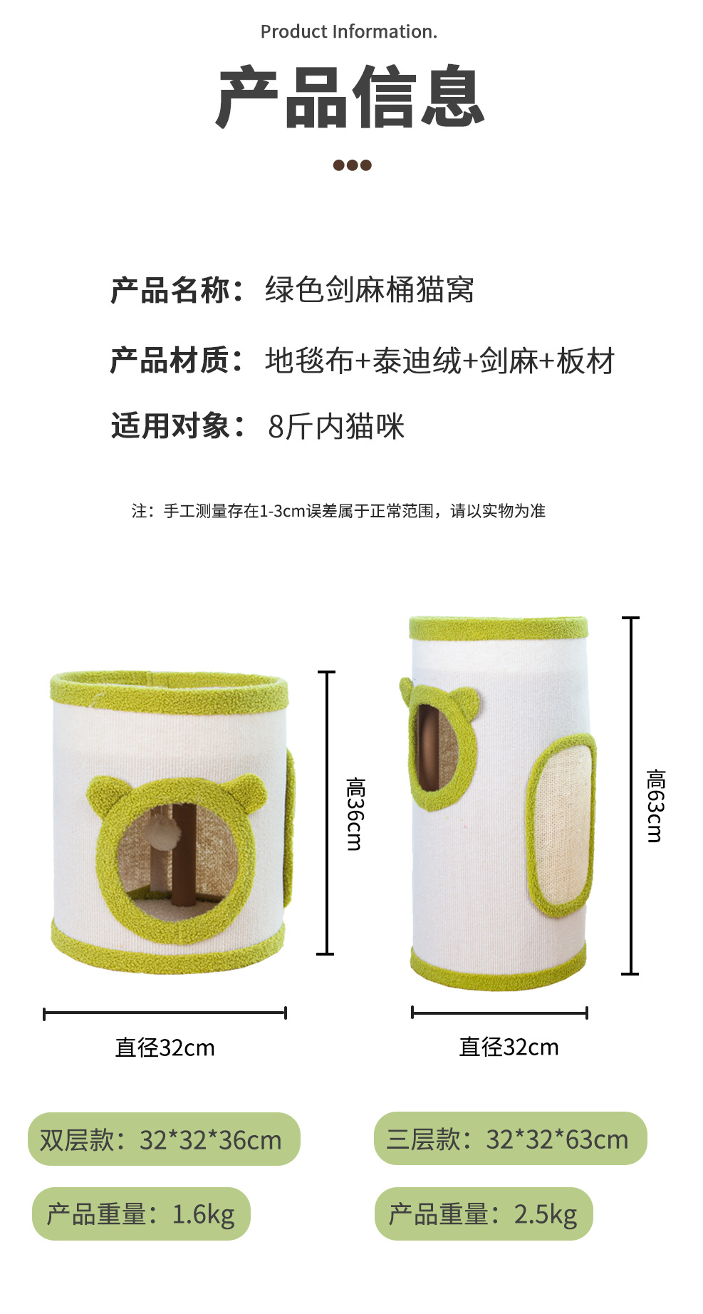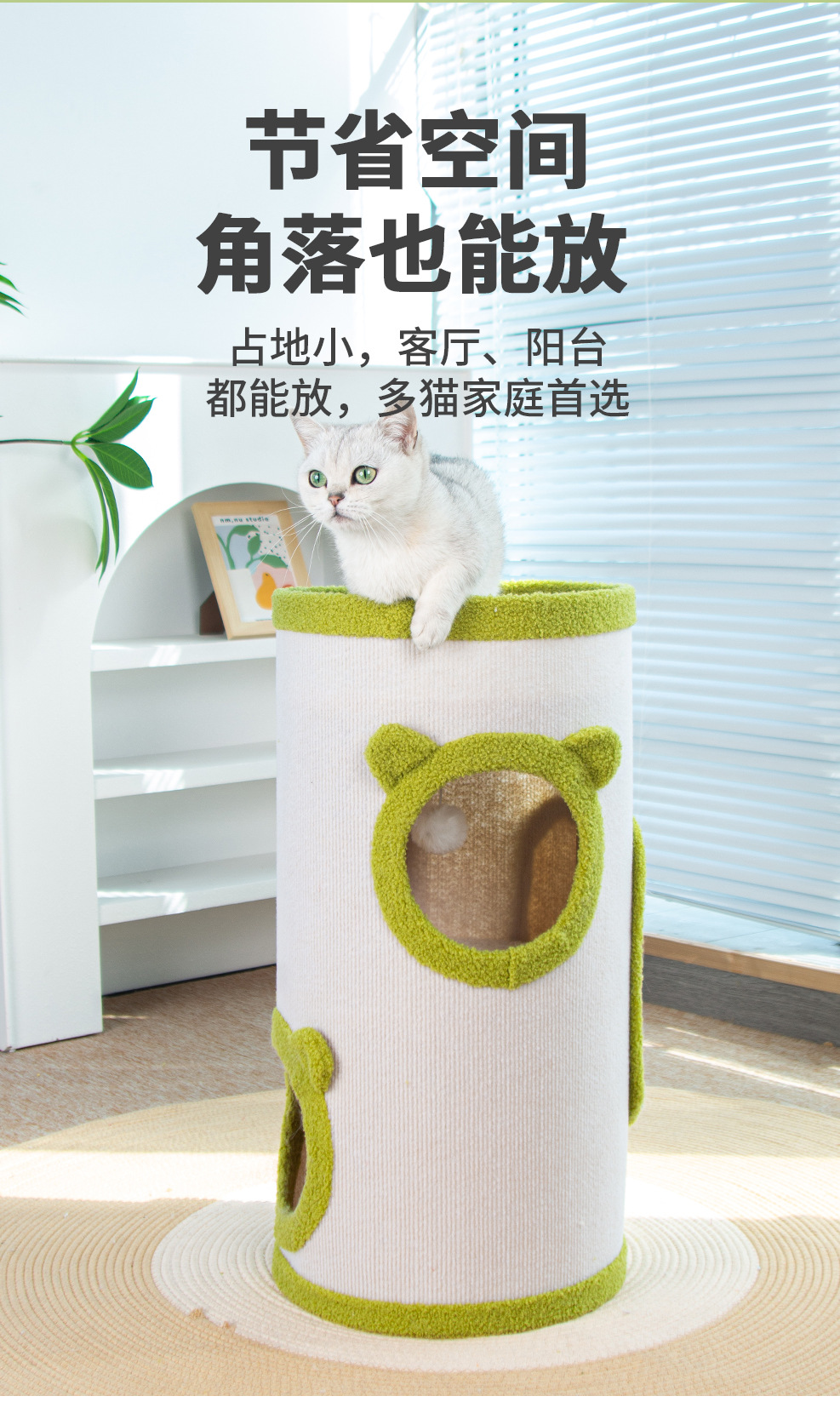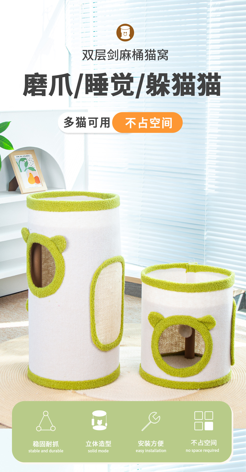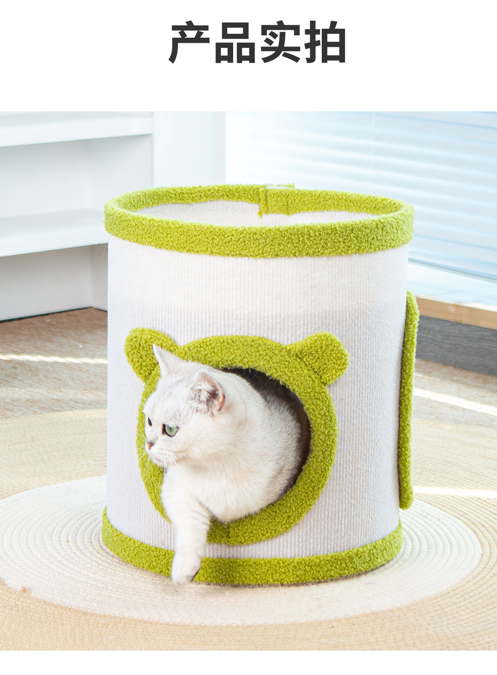 • 녹색 사이잘 버킷 고양이 둥지