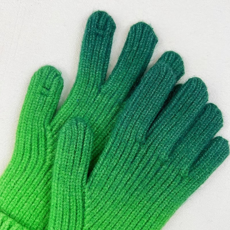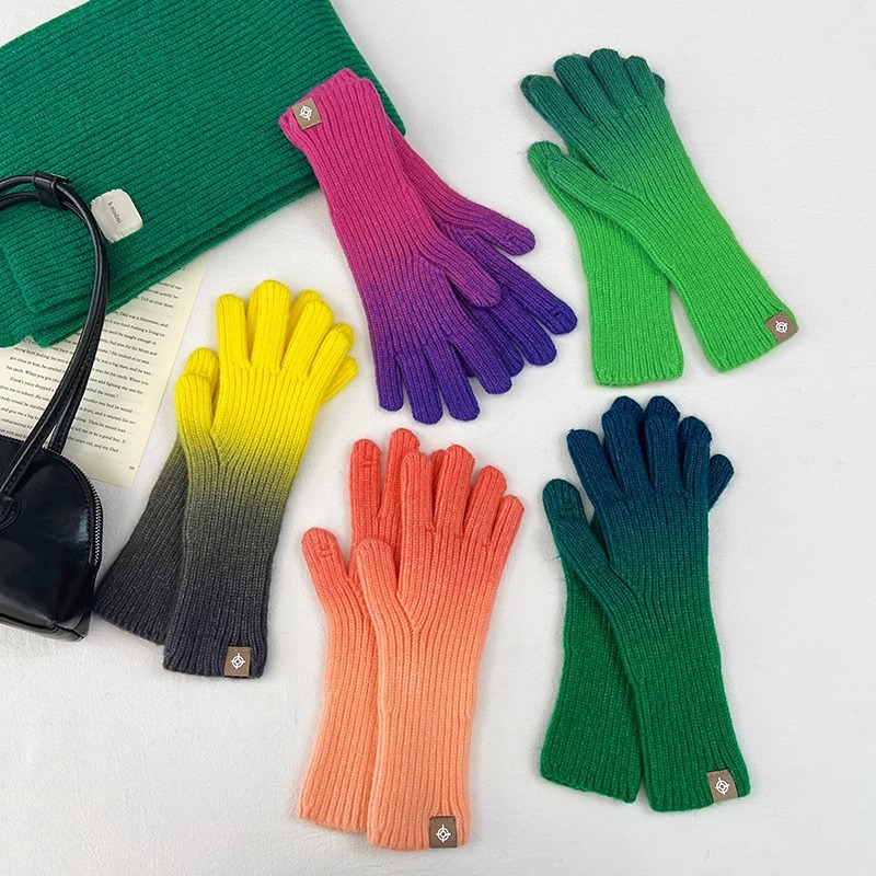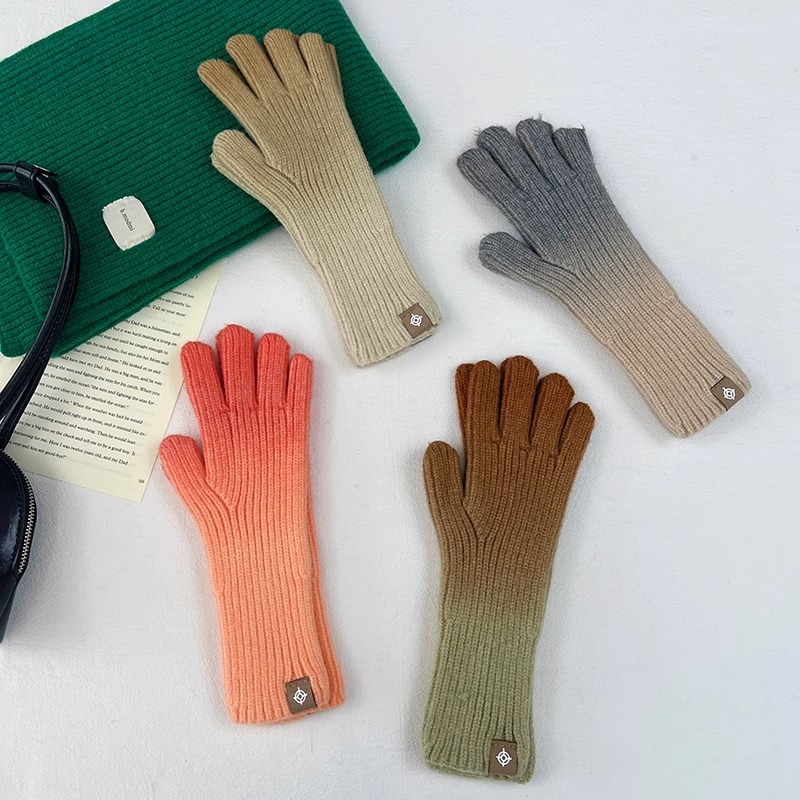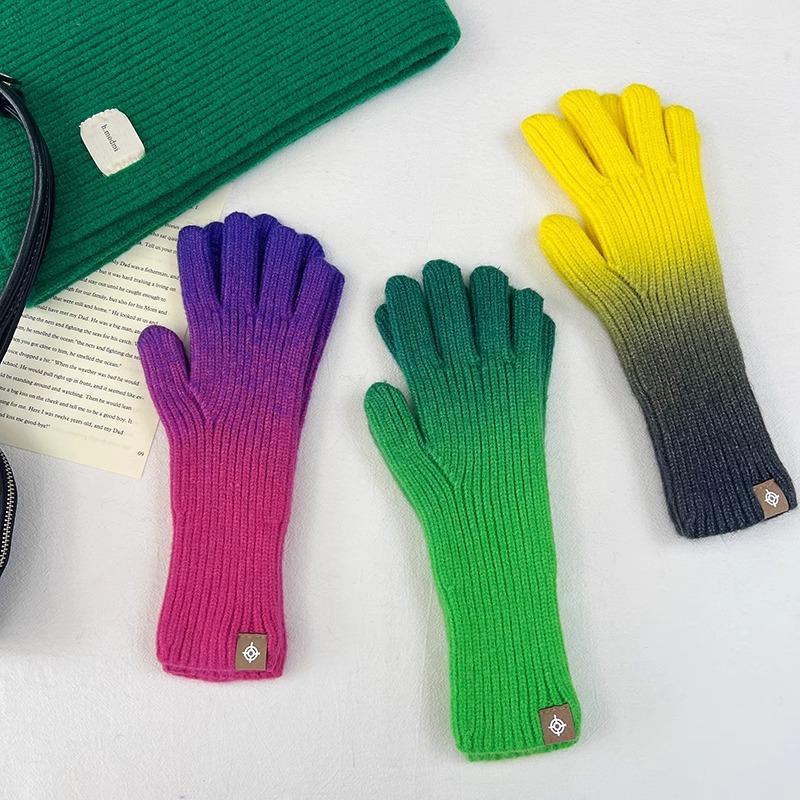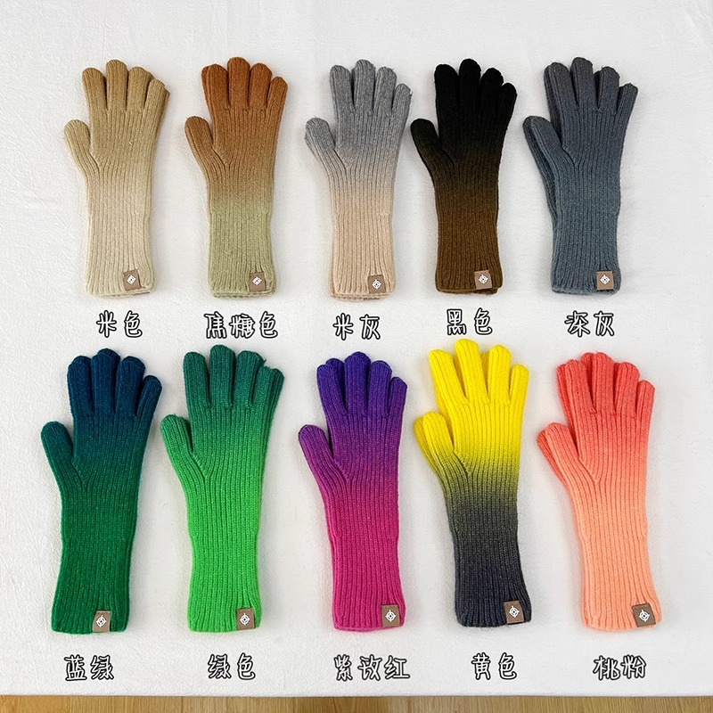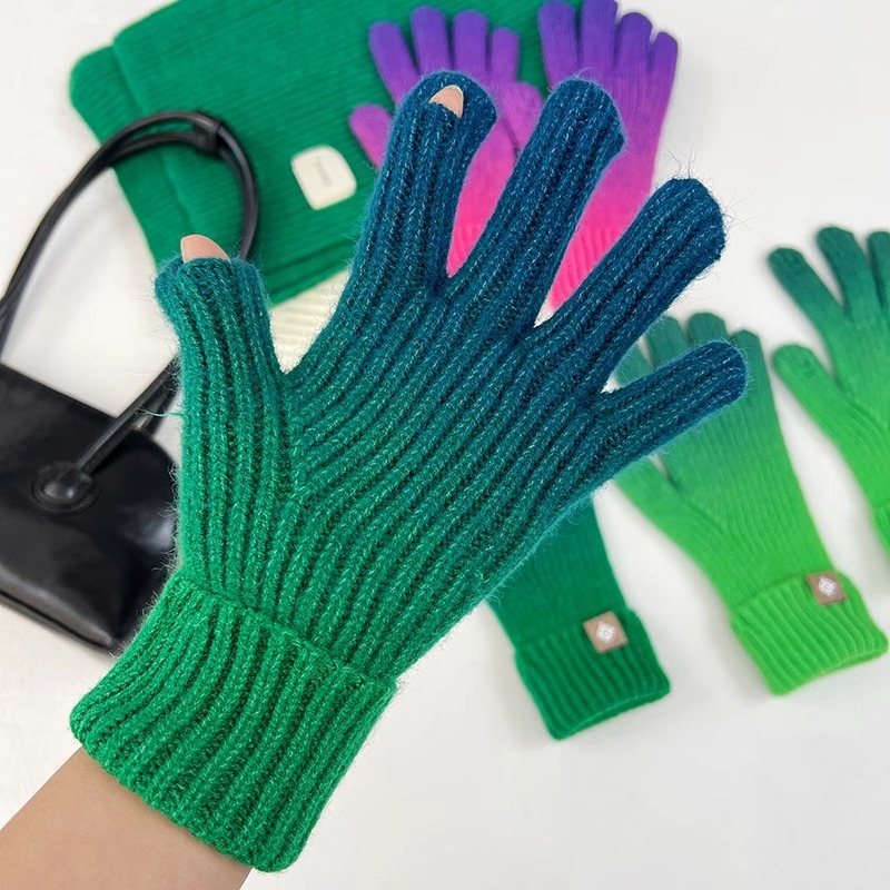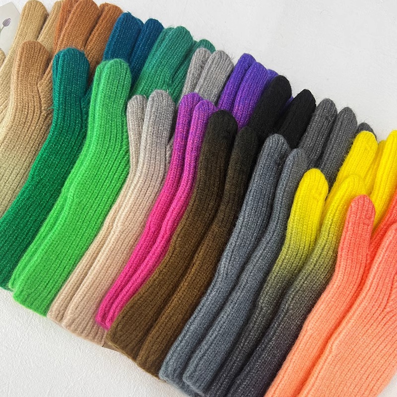 유럽과 미국의 그라데이션 컬러 울 장갑 여성 ~ 가을 및 겨울에 두꺼운 니트 오픈 손가락 터치 스크린 따뜻한 차가운 대외 무역