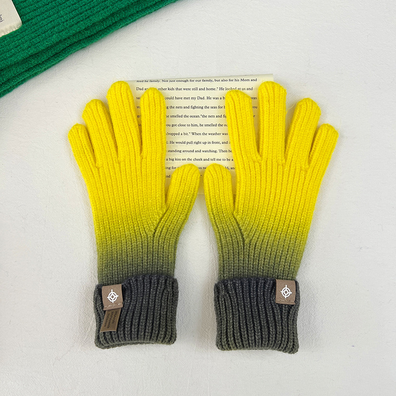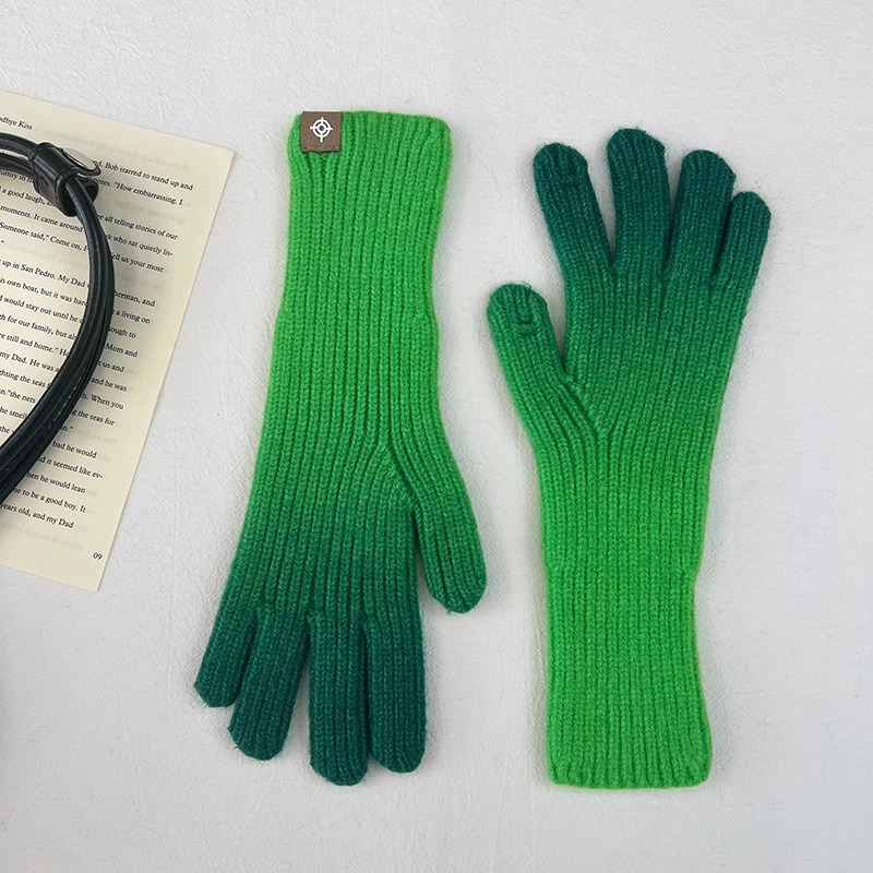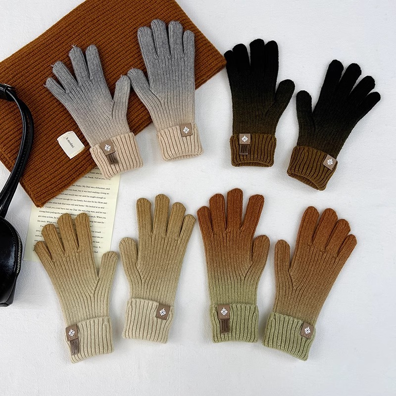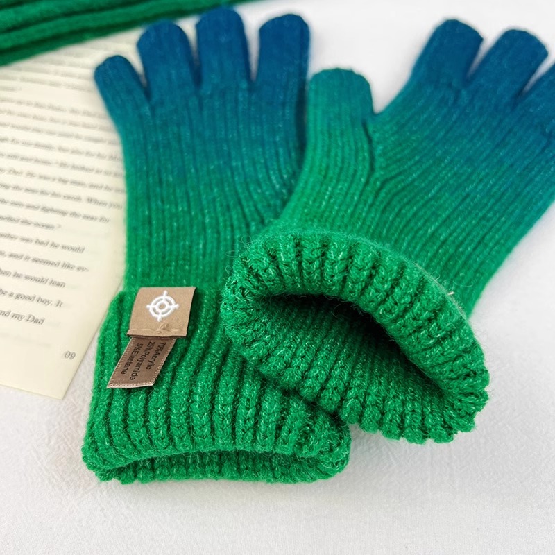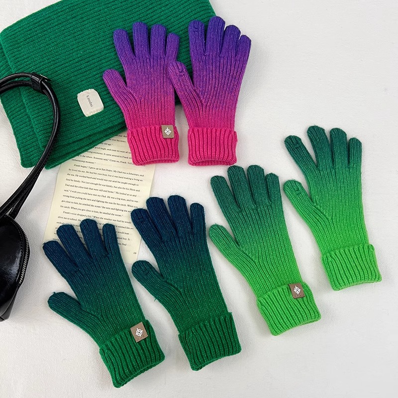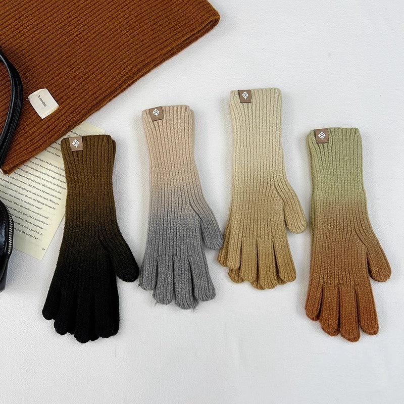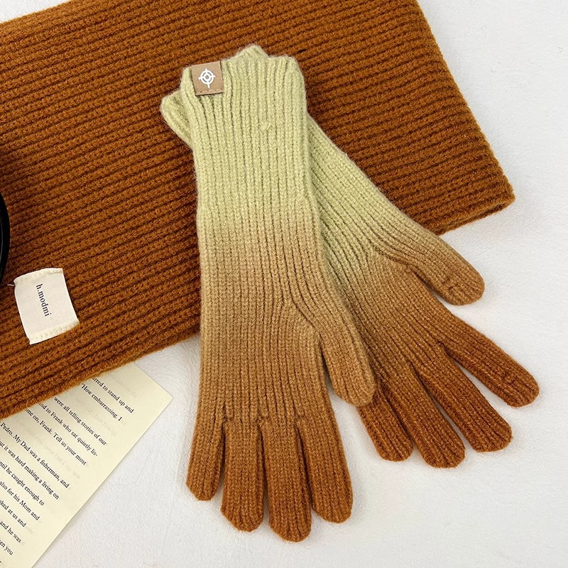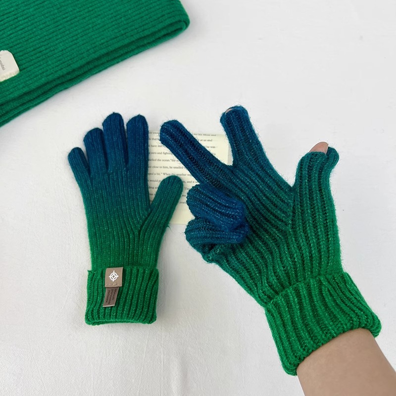 유럽과 미국의 그라데이션 컬러 울 장갑 여성 ~ 가을 및 겨울에 두꺼운 니트 오픈 손가락 터치 스크린 따뜻한 차가운 대외 무역