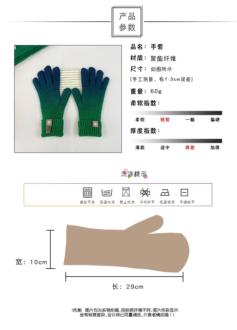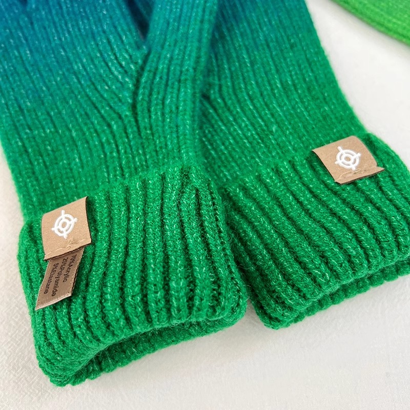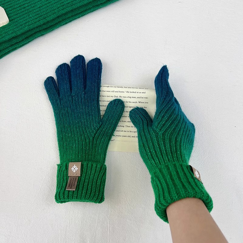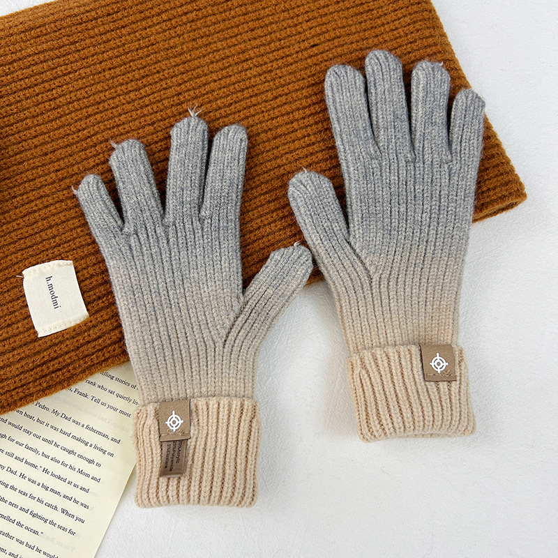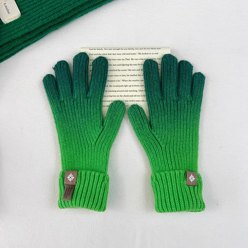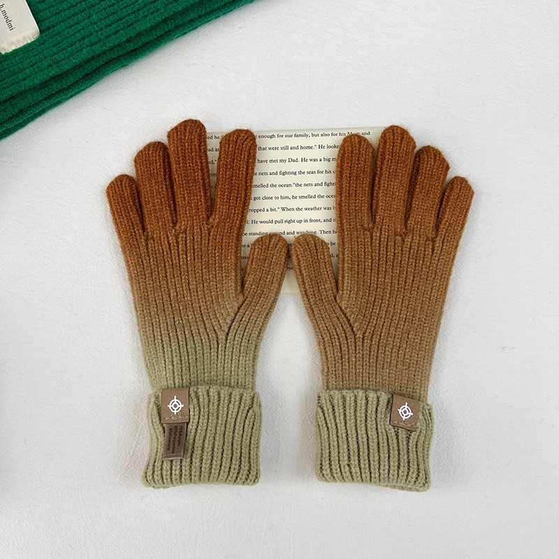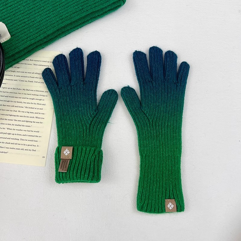 유럽과 미국의 그라데이션 컬러 울 장갑 여성 ~ 가을 및 겨울에 두꺼운 니트 오픈 손가락 터치 스크린 따뜻한 차가운 대외 무역
