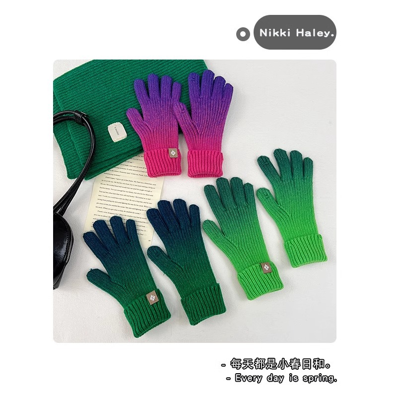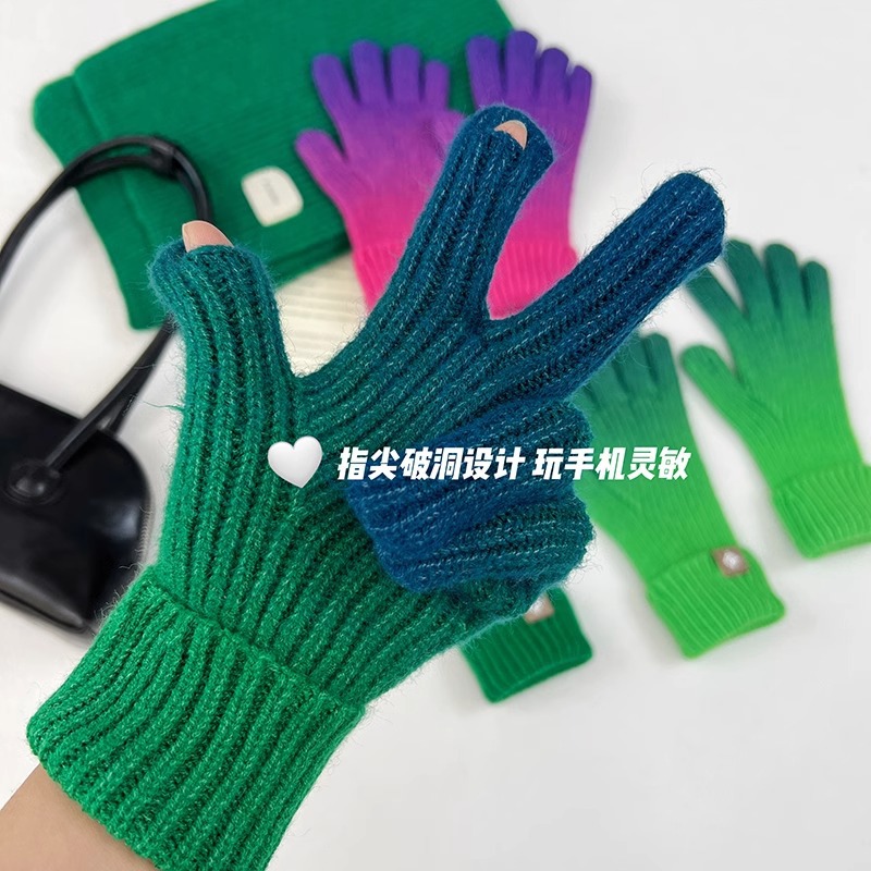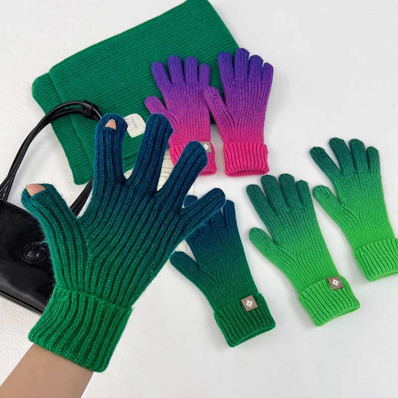 유럽과 미국의 그라데이션 컬러 울 장갑 여성 ~ 가을 및 겨울에 두꺼운 니트 오픈 손가락 터치 스크린 따뜻한 차가운 대외 무역스토어 가기