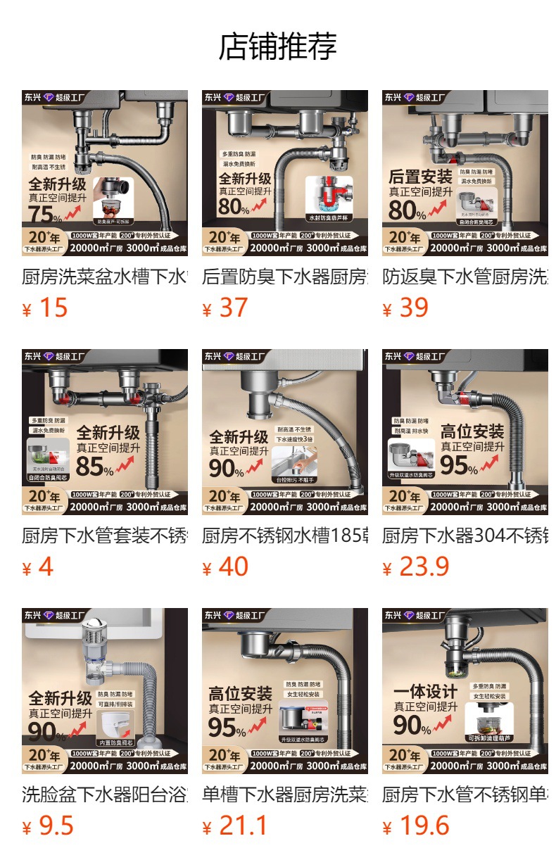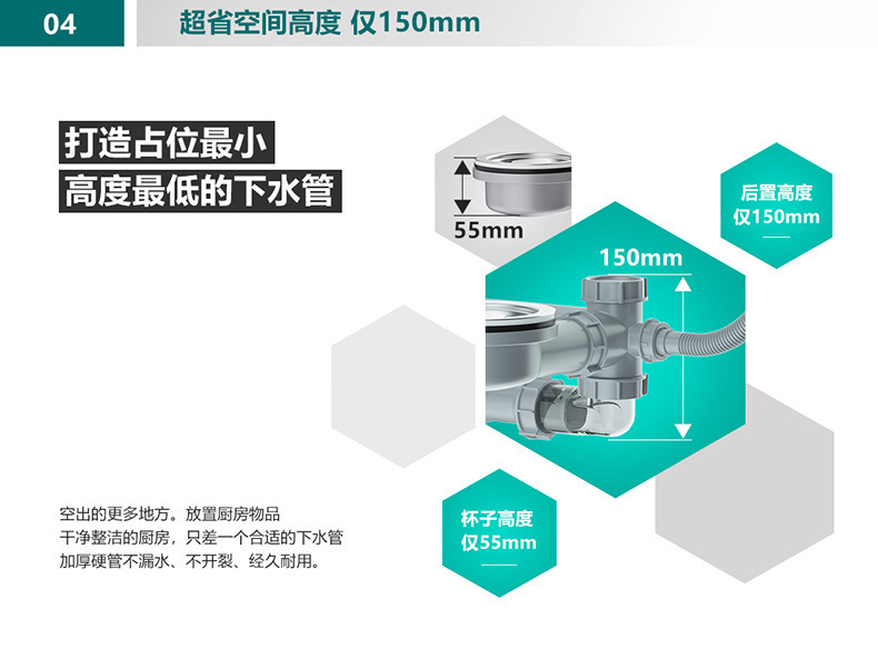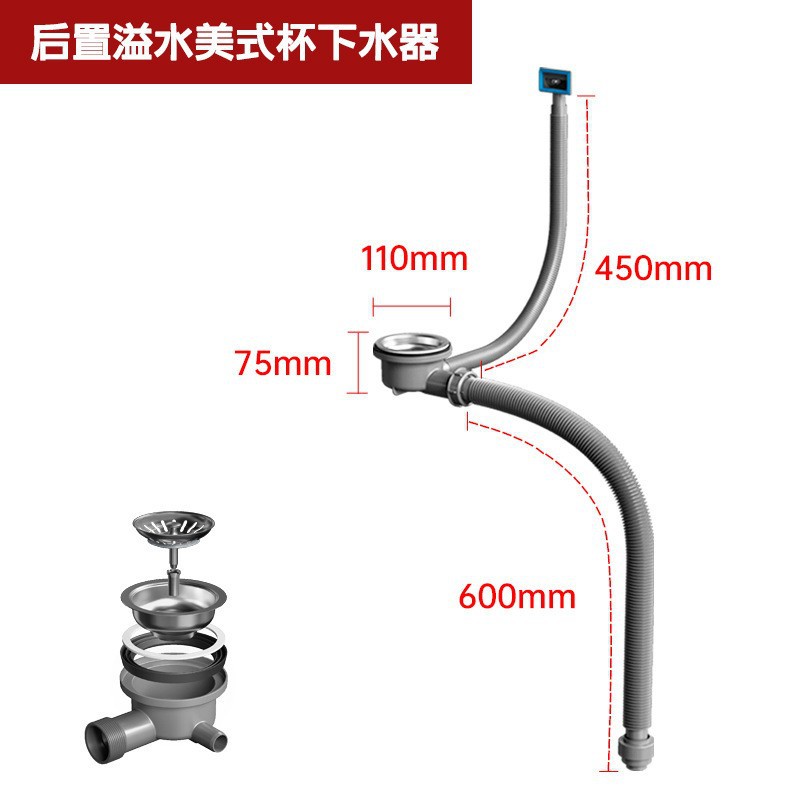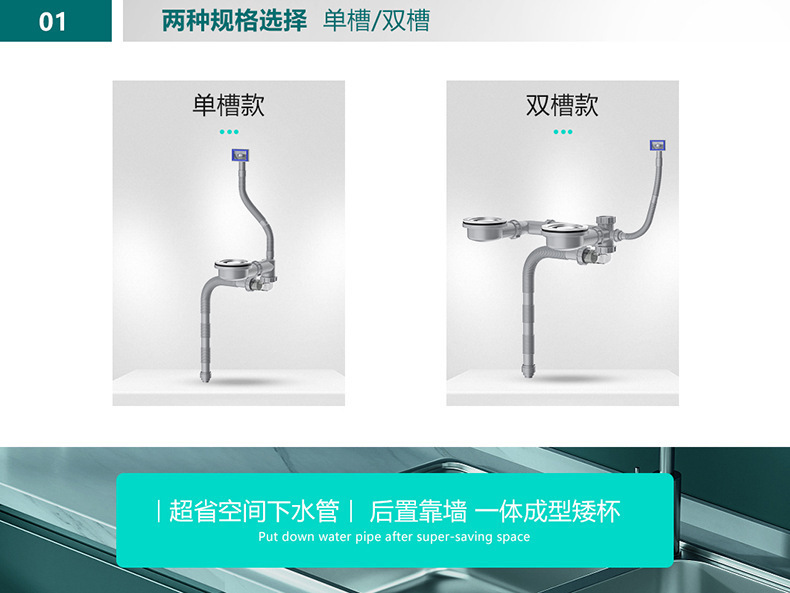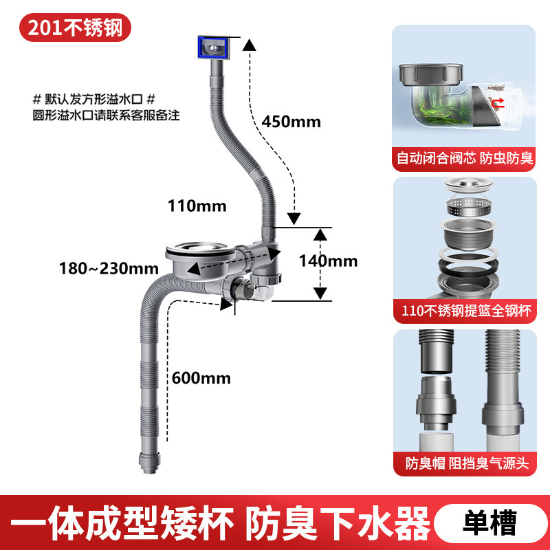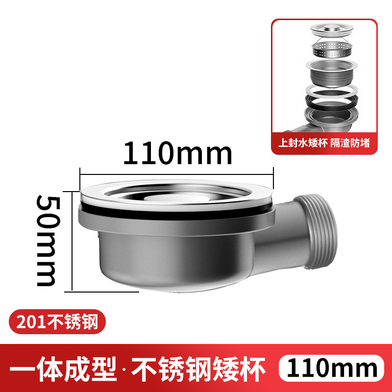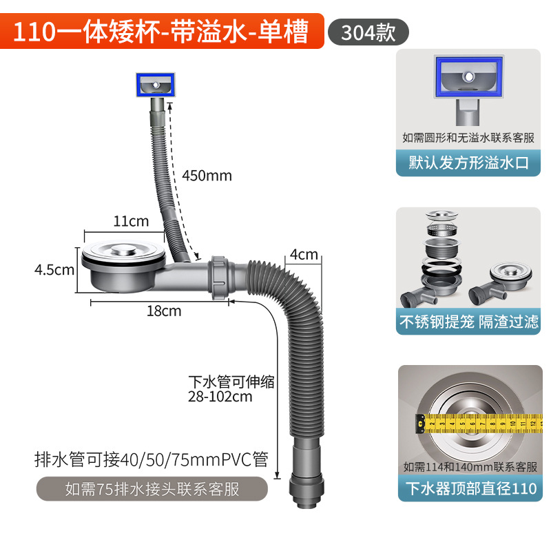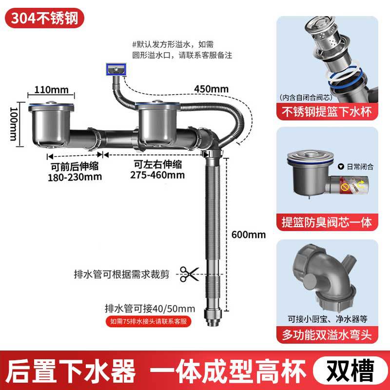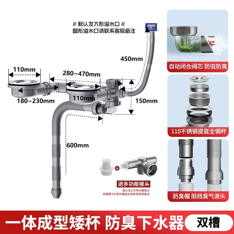 • 【공간 절약 99%】 40구 후면 듀얼 싱크대형 악취 방지 + 일체형 110 로우컵 (304 스테인리스) + 다기능 정수기 연결구